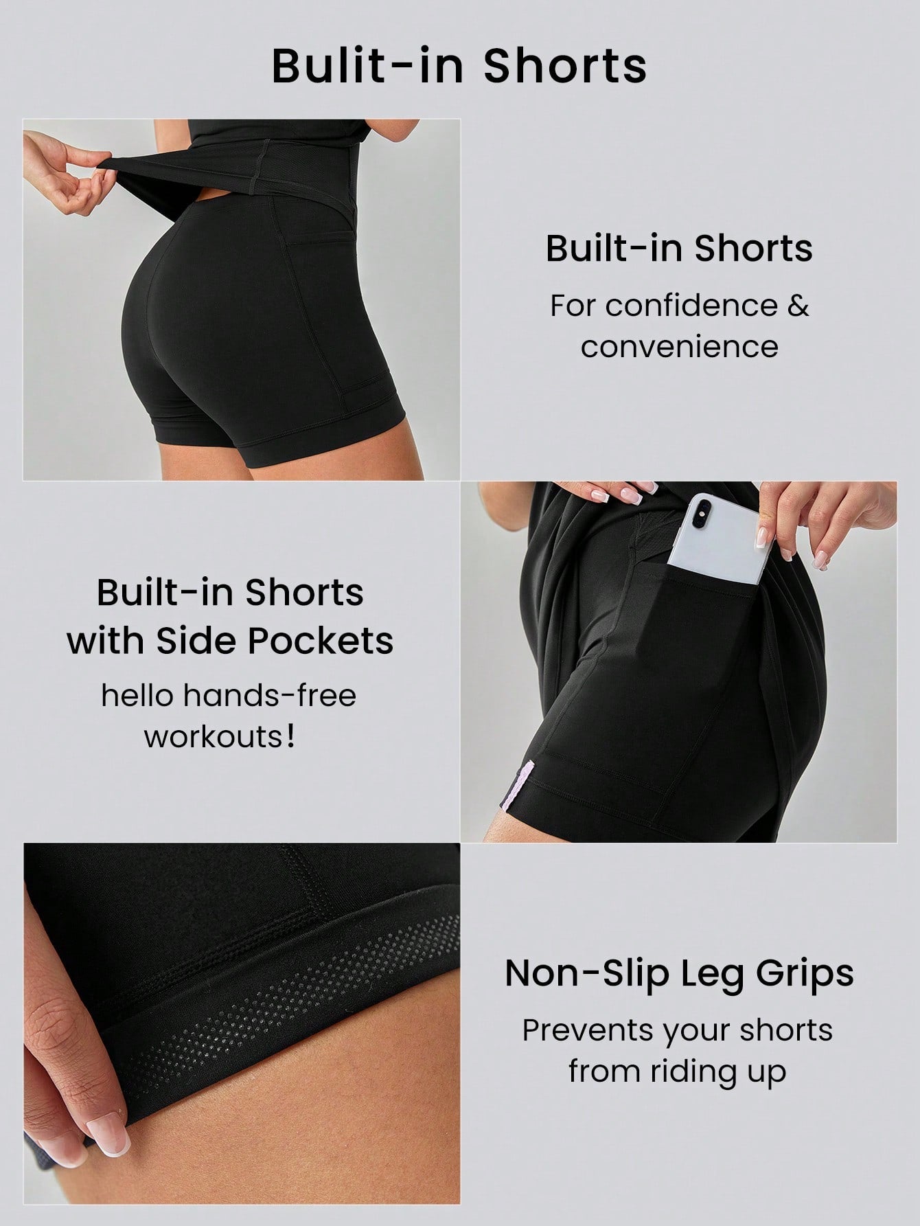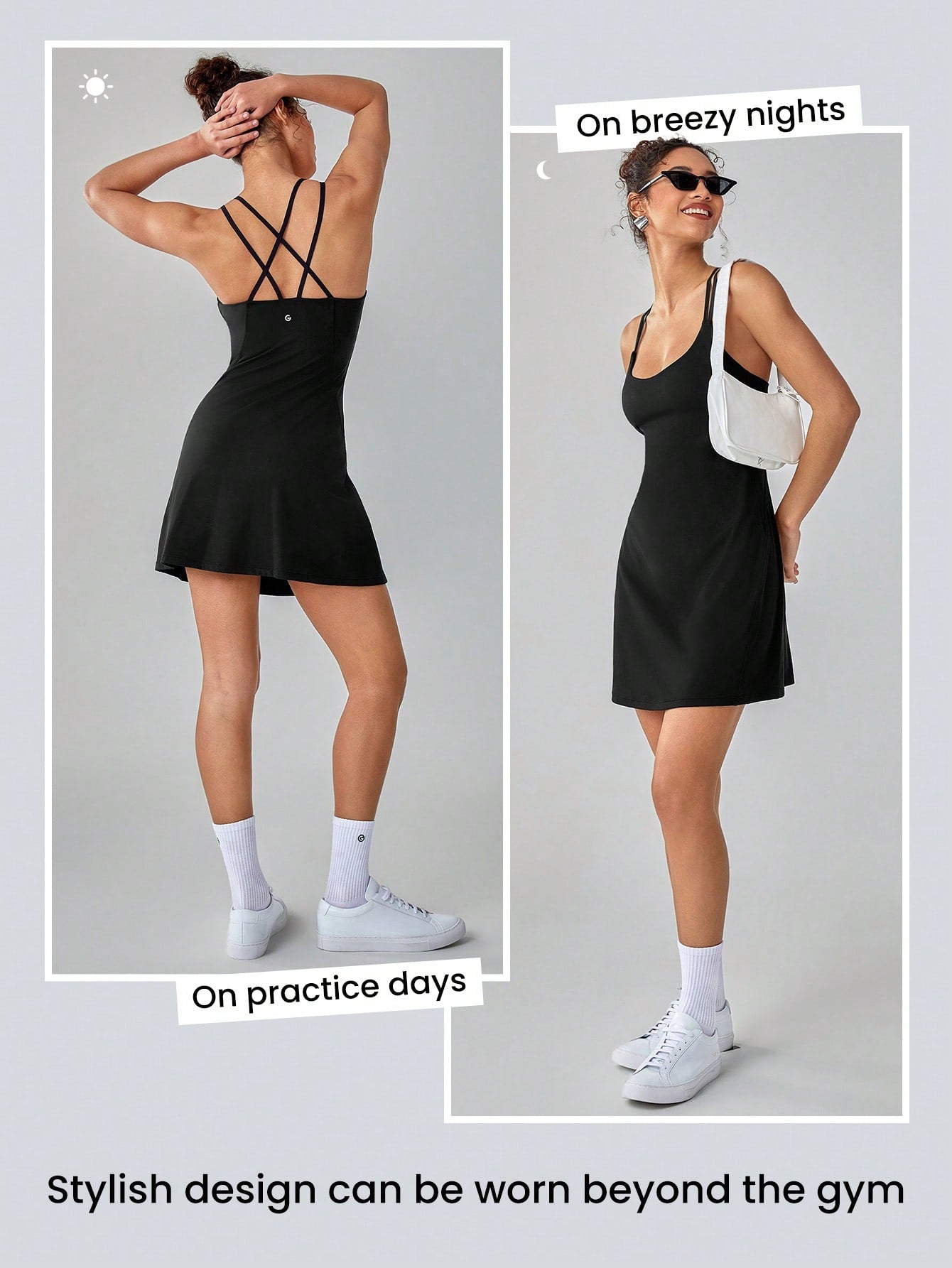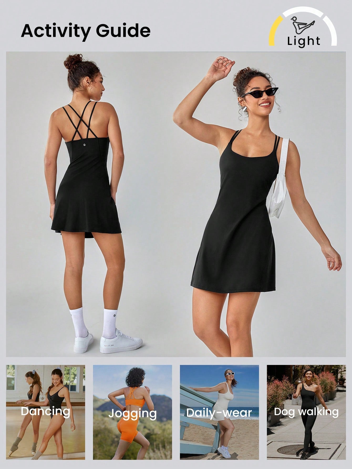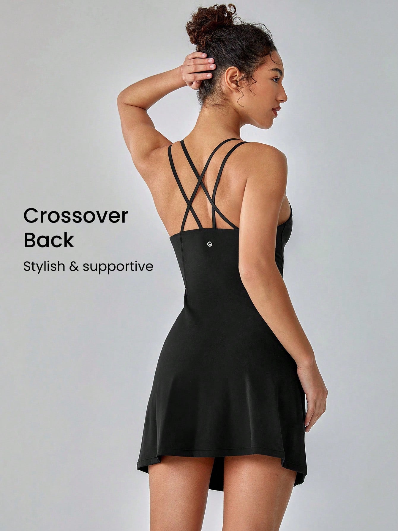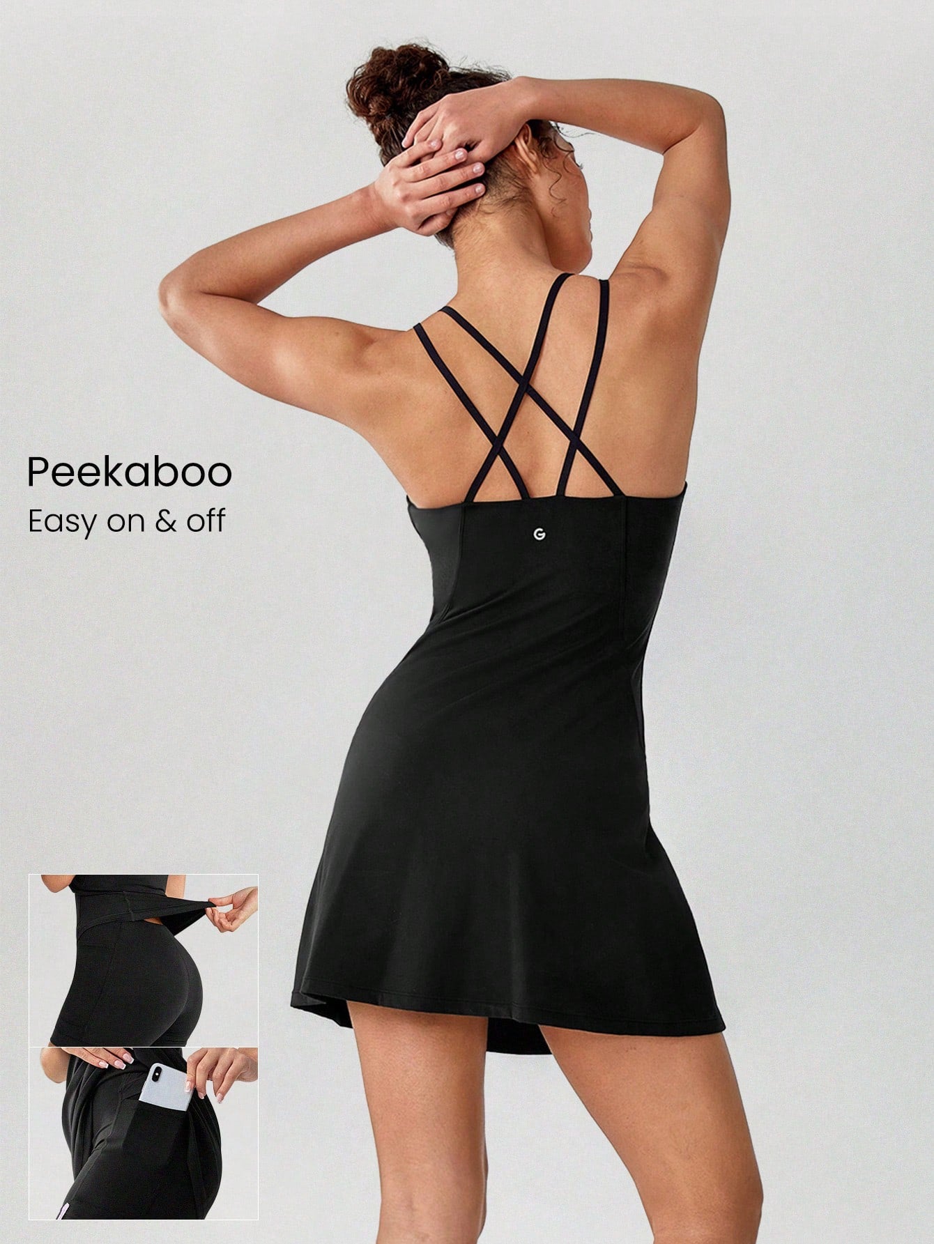 GLOWMODE FeatherFitâ„¢-Air Peekaboo Square Neck Pocket Anti-Slip Active Mini Dress With Built-In Shorts Light Support Low Impact Spring Dress Summer Dress Quick Dry Moisture Wicking