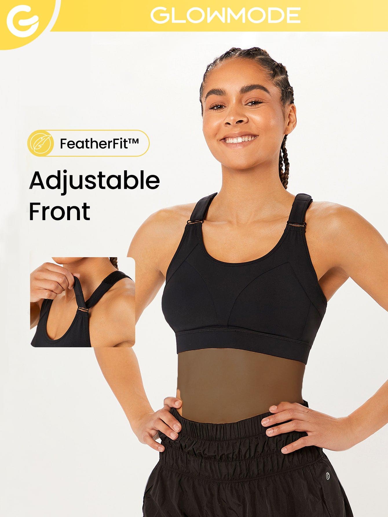 GLOWMODE FeatherFitâ„ Self-Fastening Strap Sports Bra