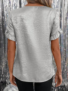 Gownix Women's Golden Foil Ruffled Short Sleeve Valentine's Day Blouse