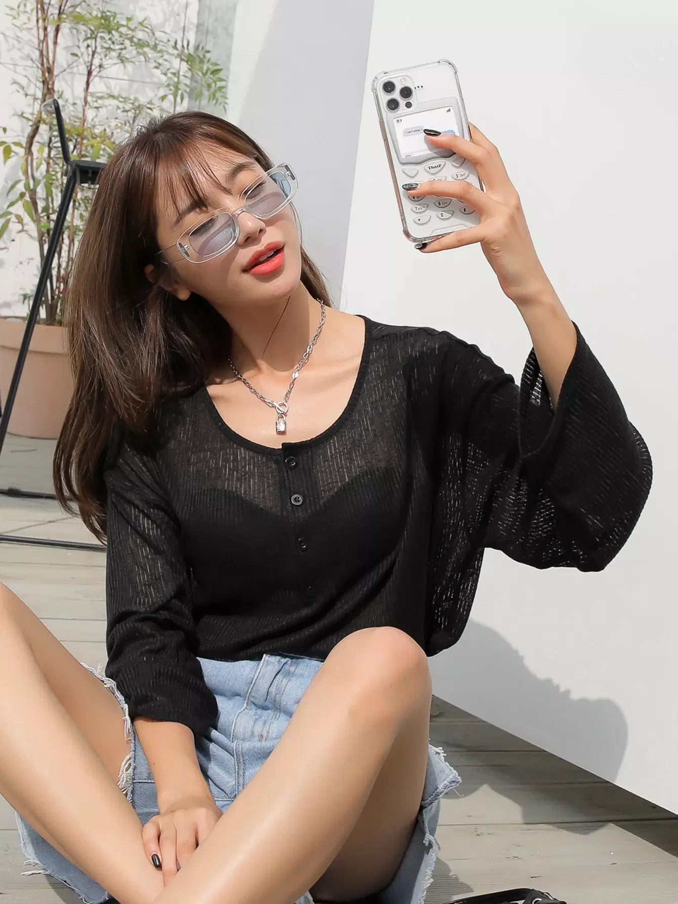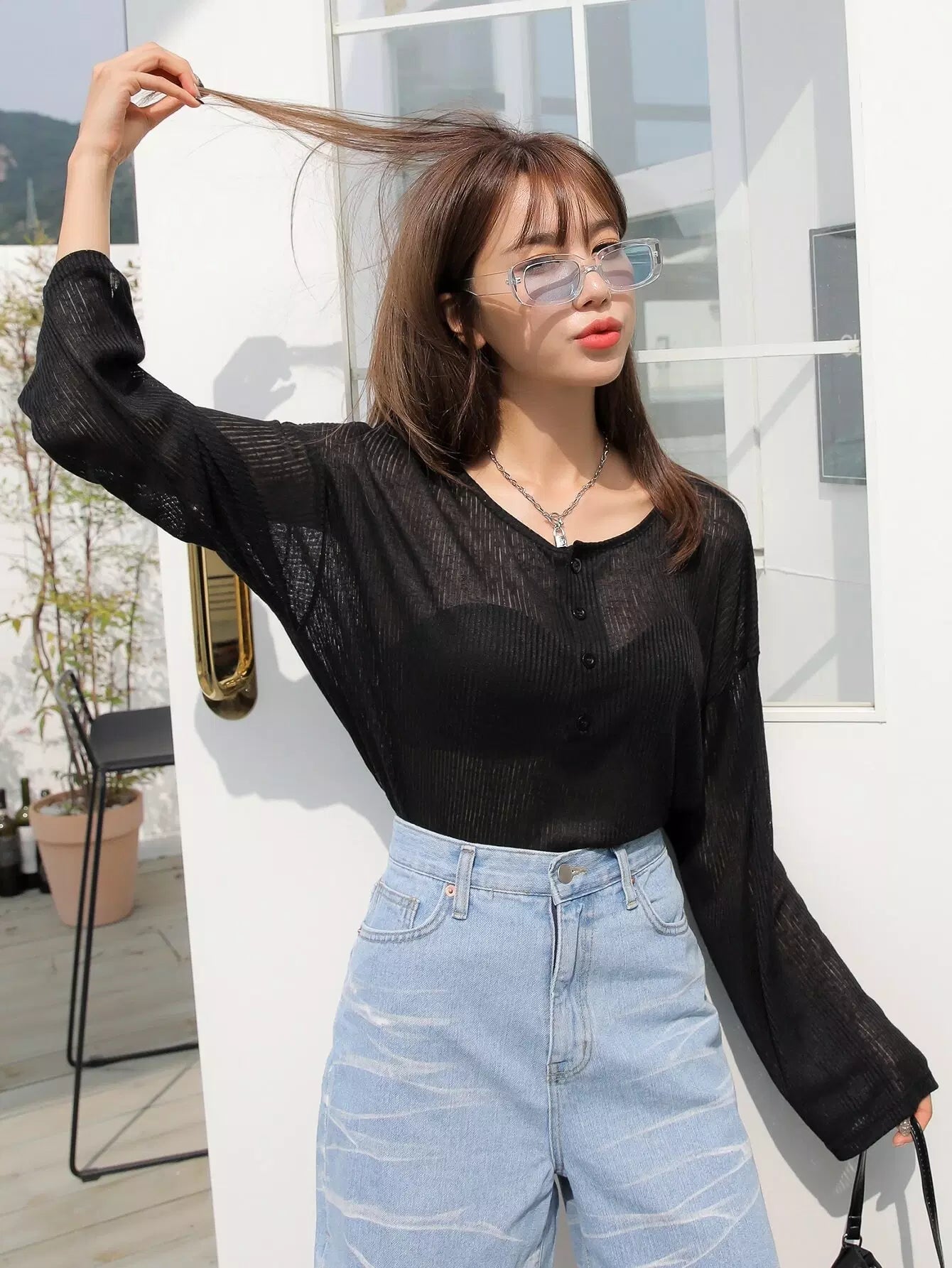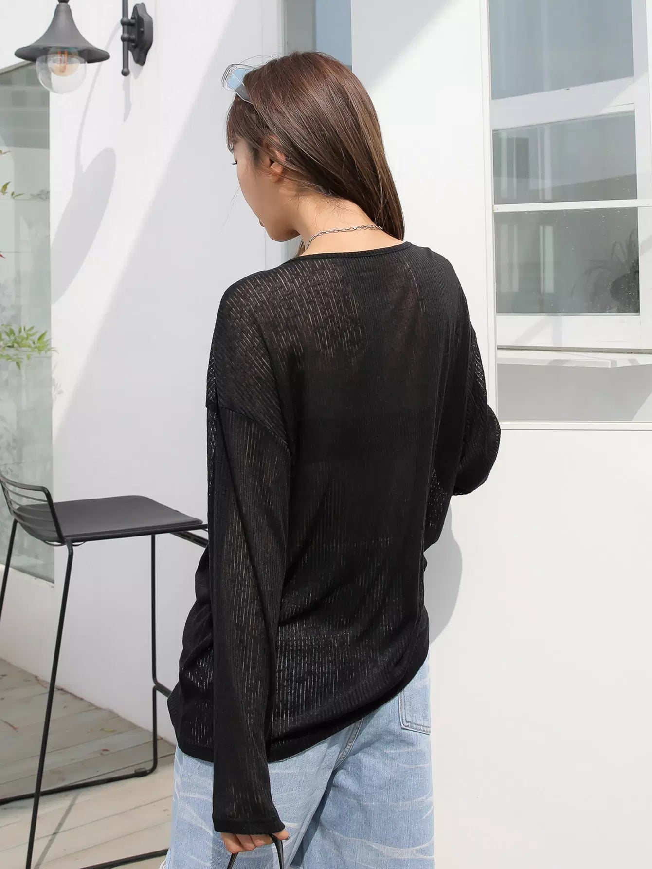 Half Button Drop Shoulder Top