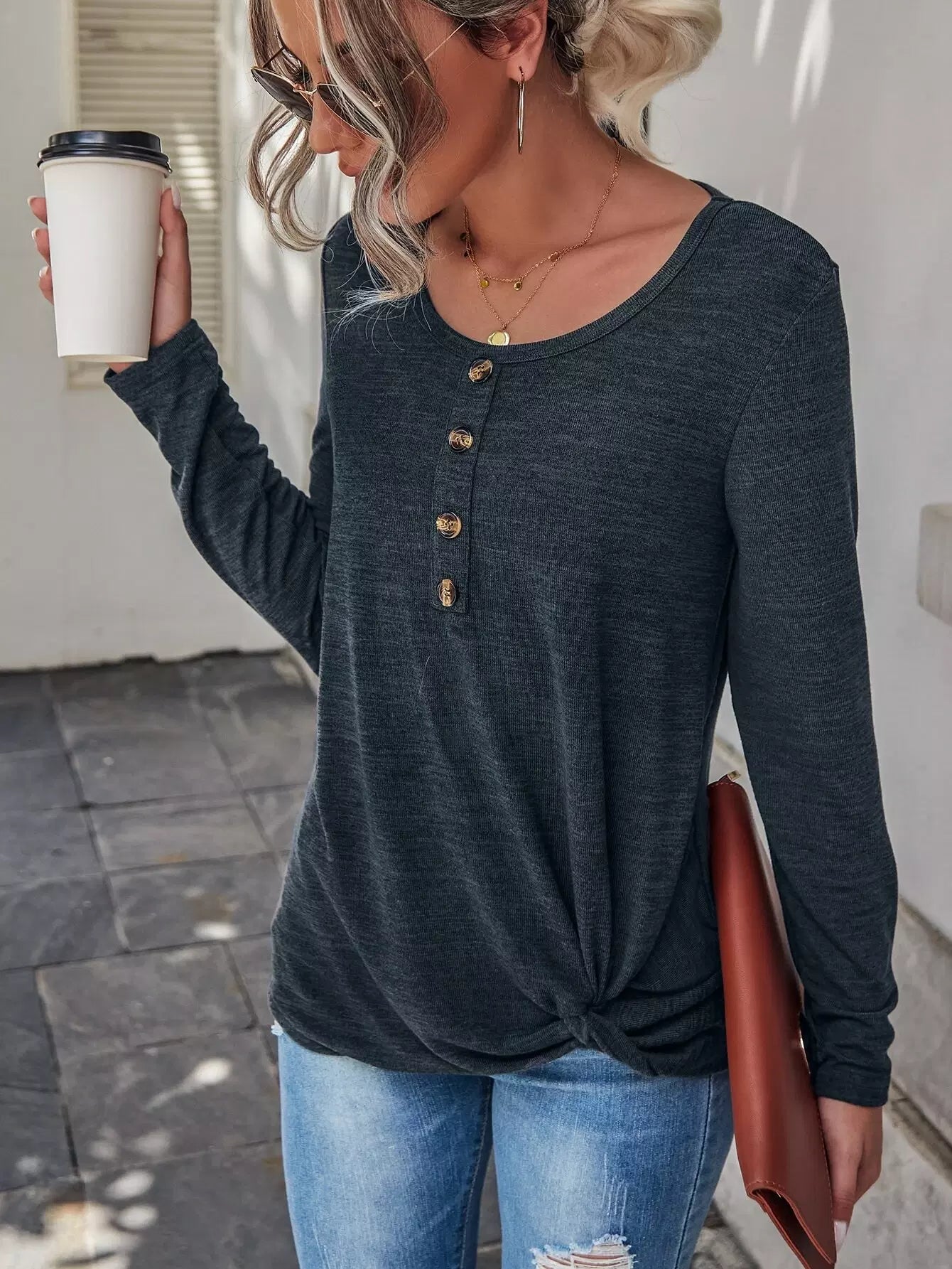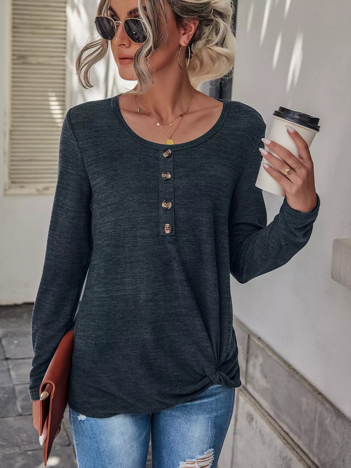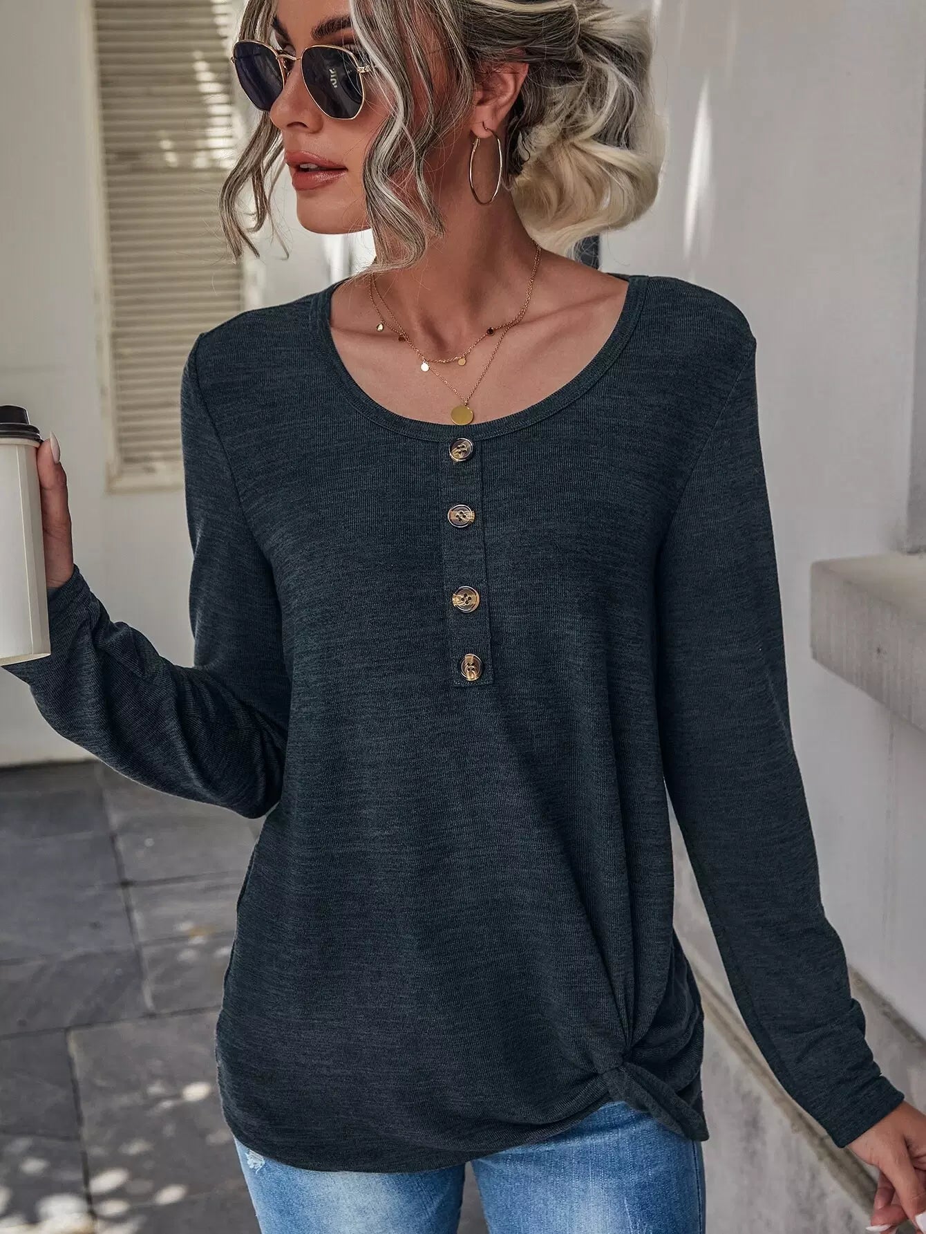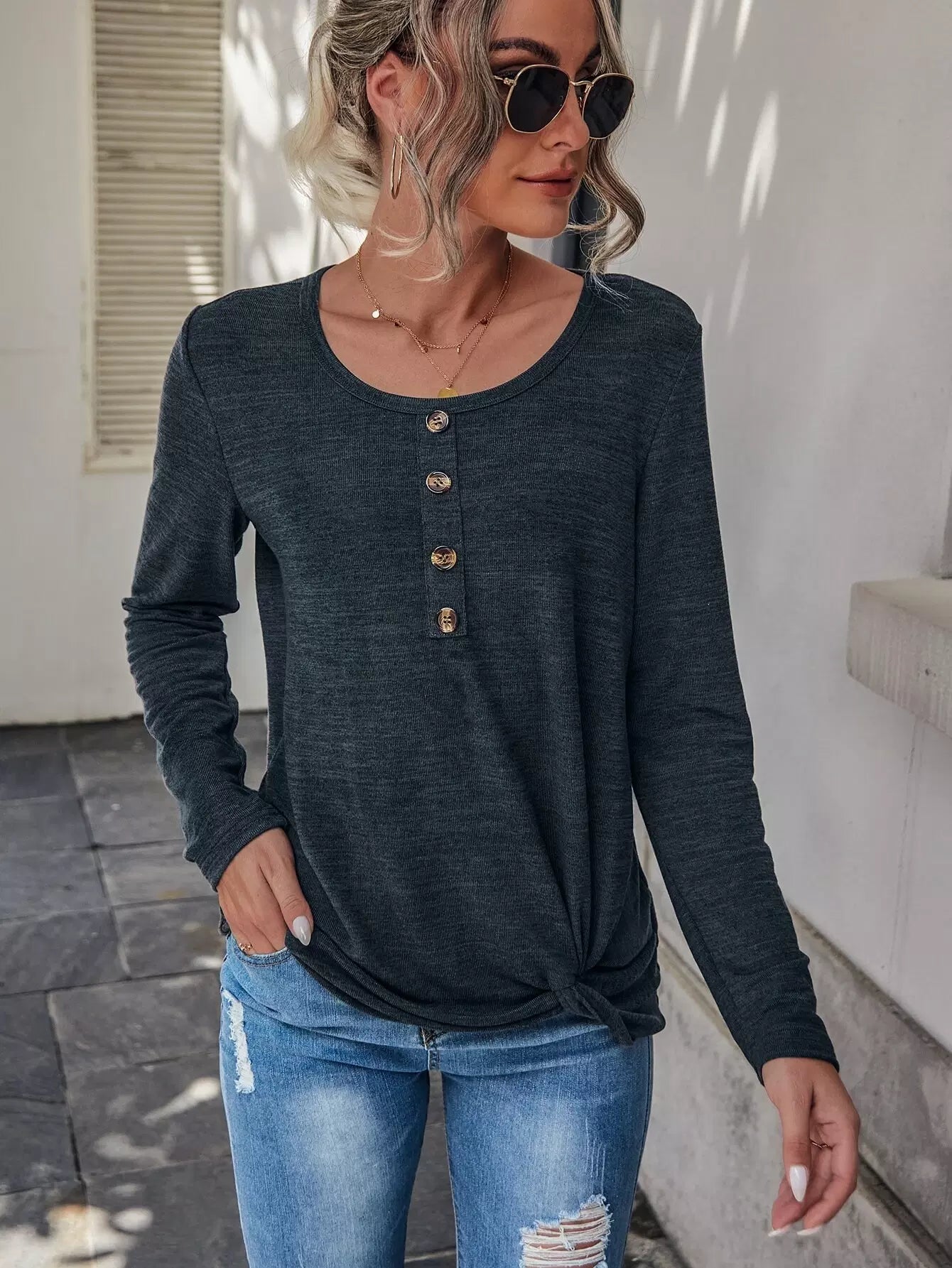 Half Button Solid Tee