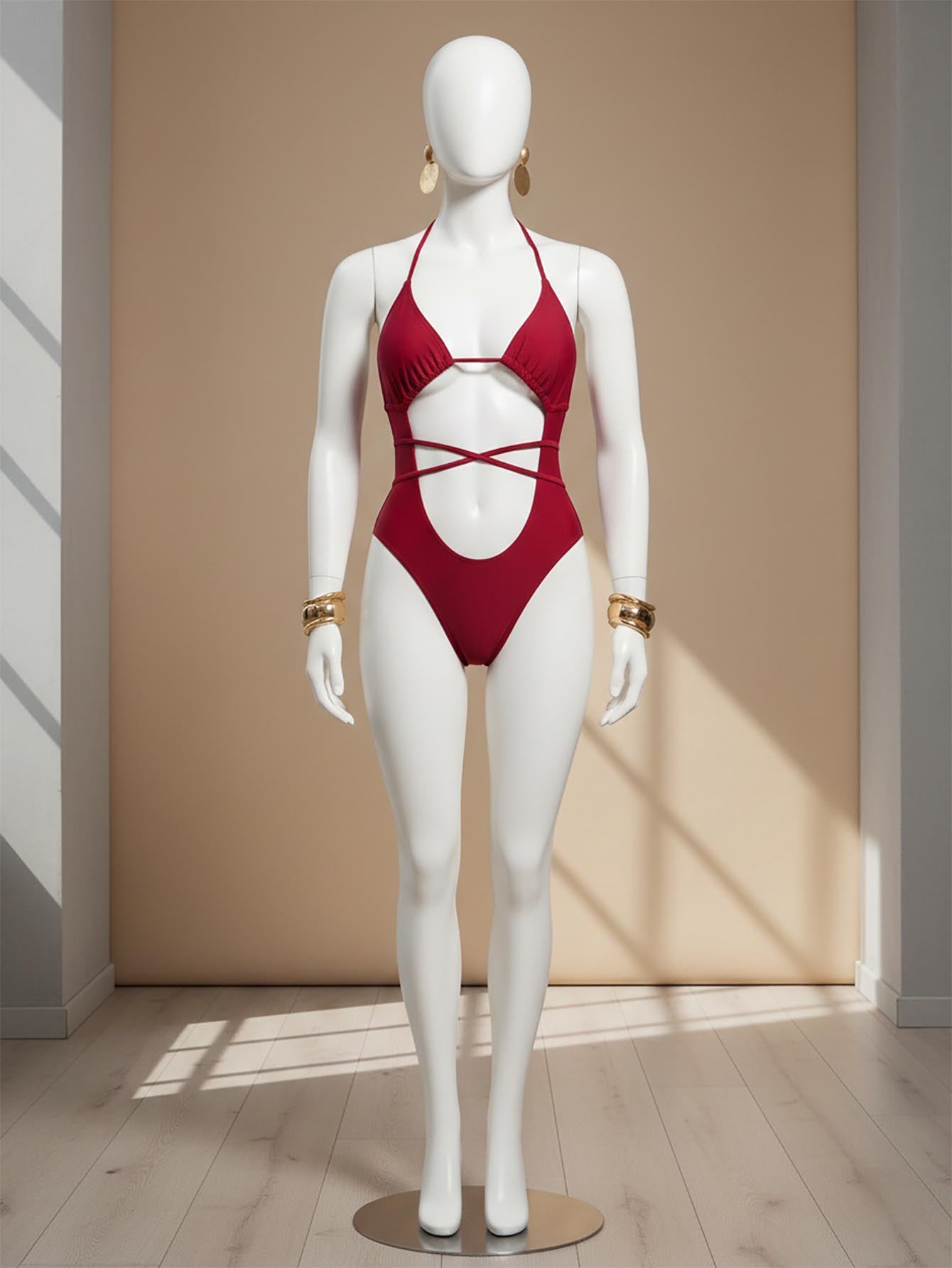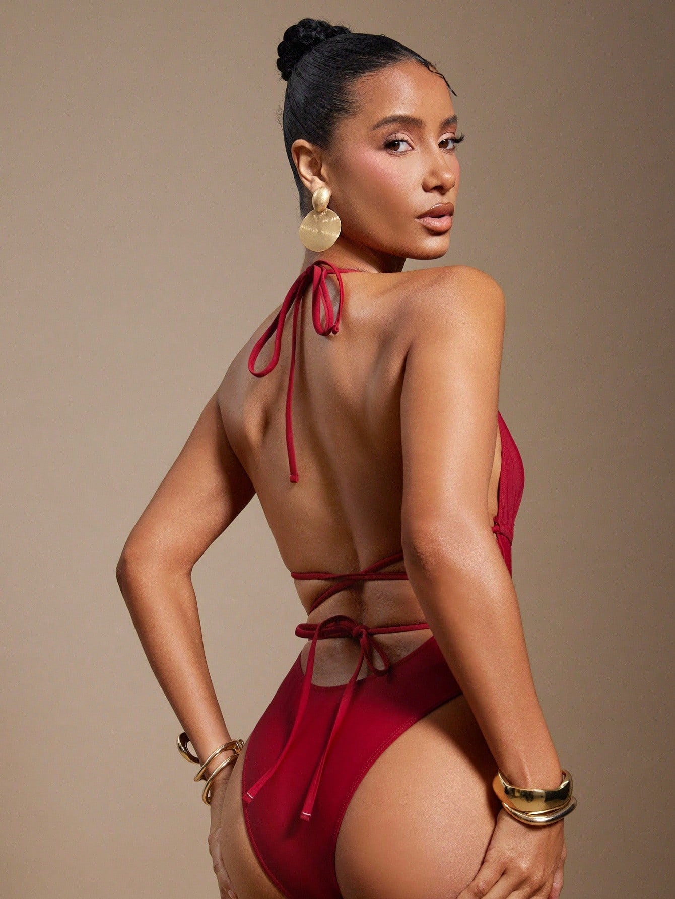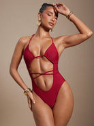 Hauture Women's Sexy Vacay Front Cut Out Simple Red One Piece Tankini For Summer Beach Vacation