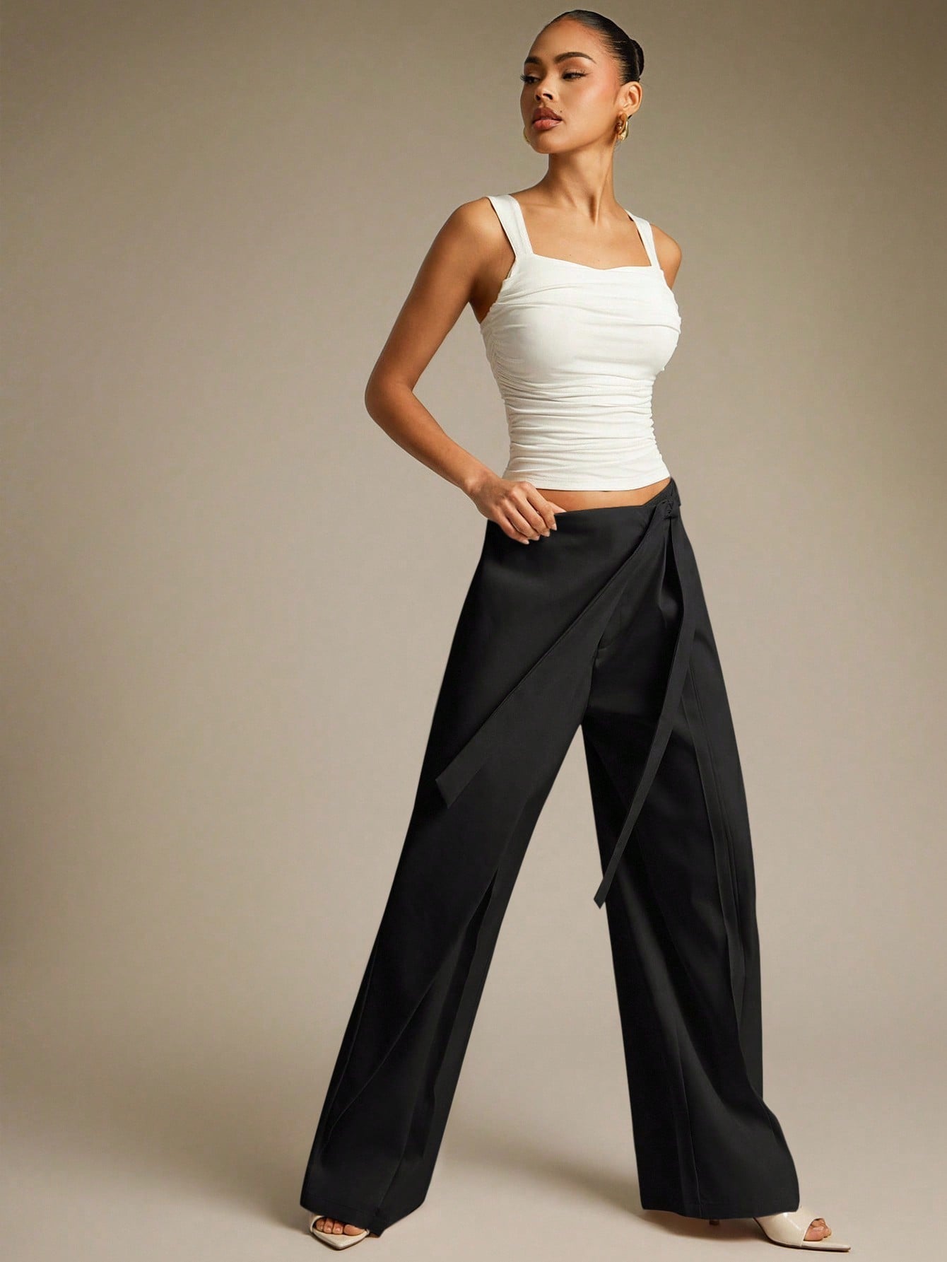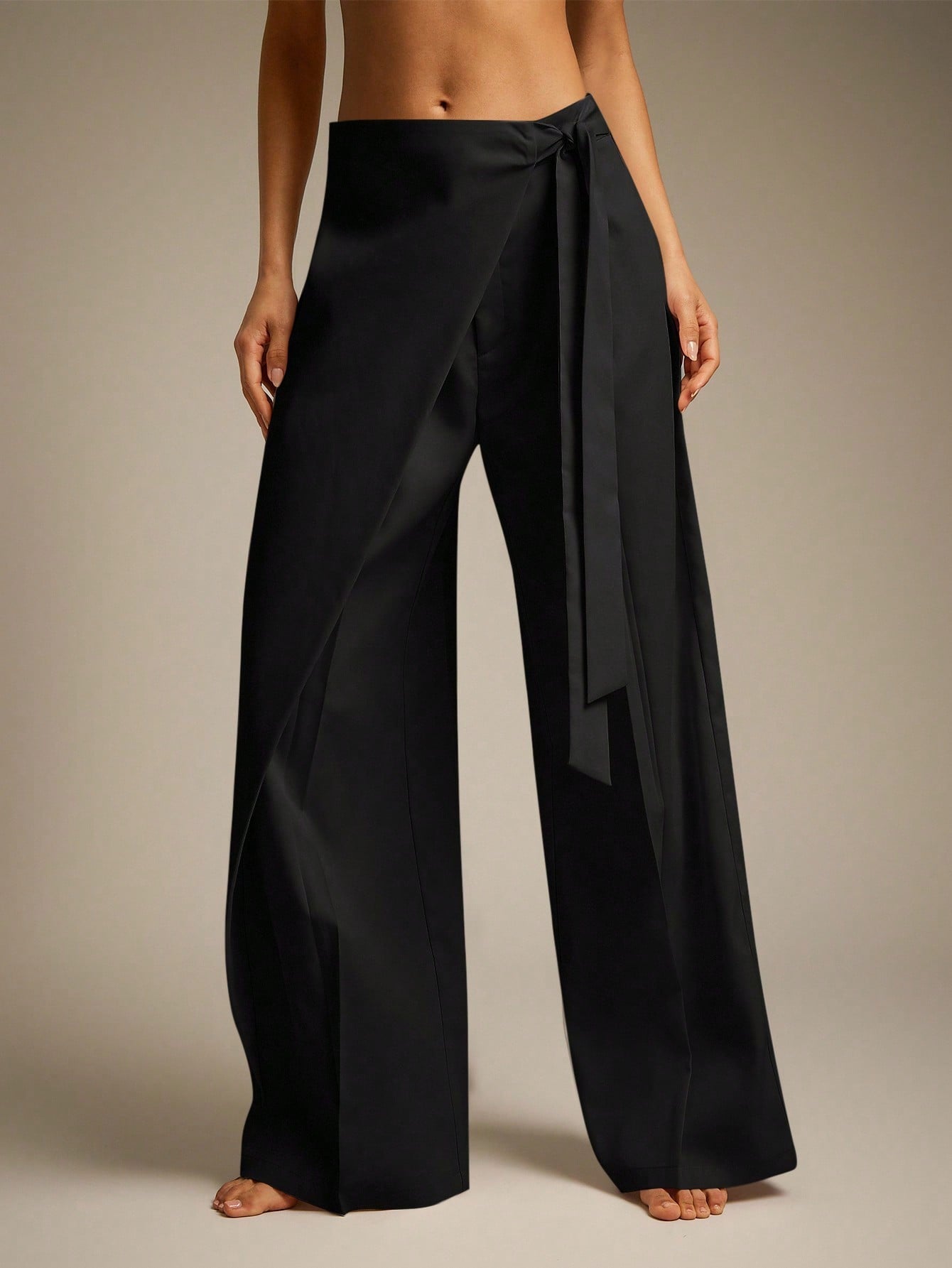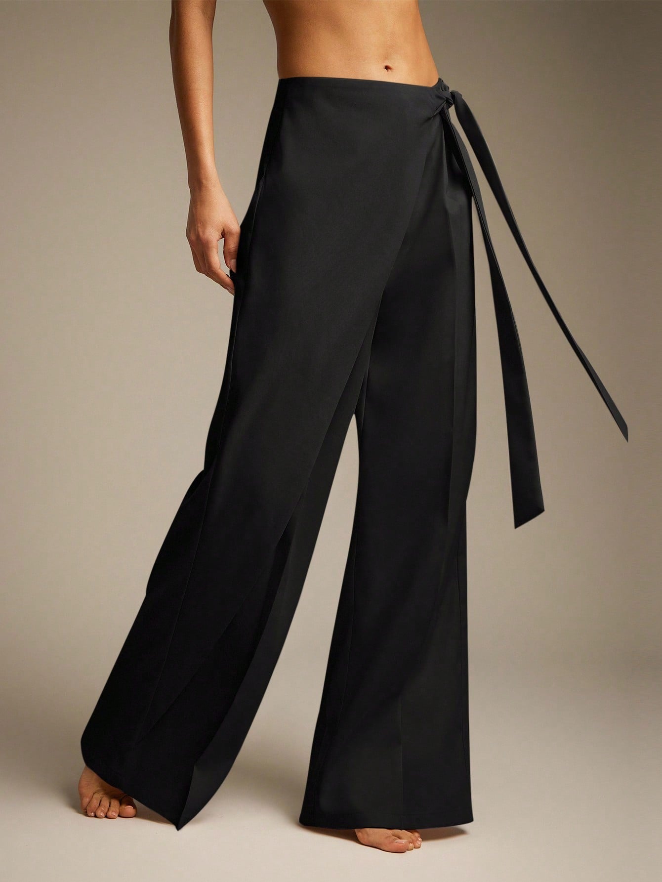 Hauture Women's Solid Color Side Knot Wide Leg Loose Casual Pants