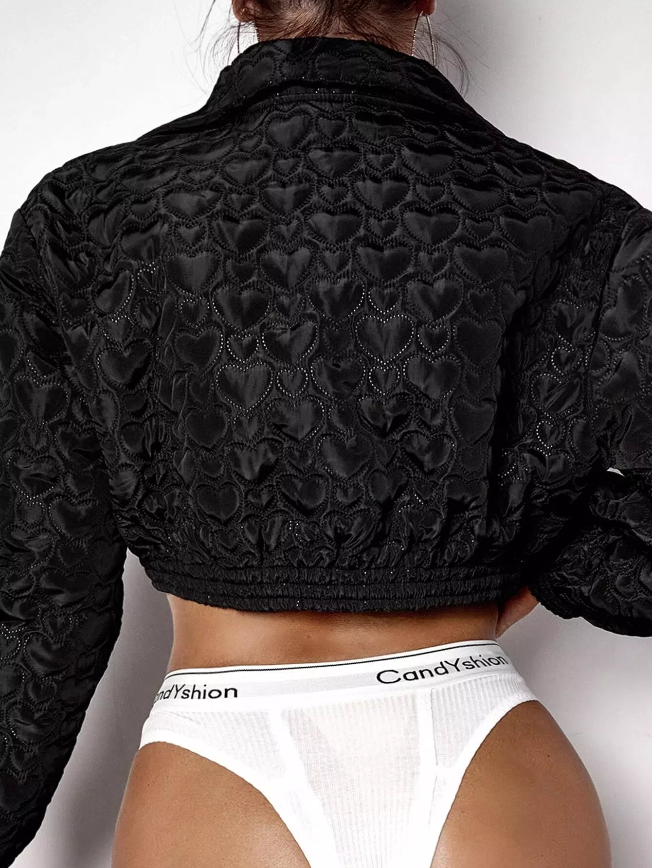 Heart Embossed Zipper Crop Jacket