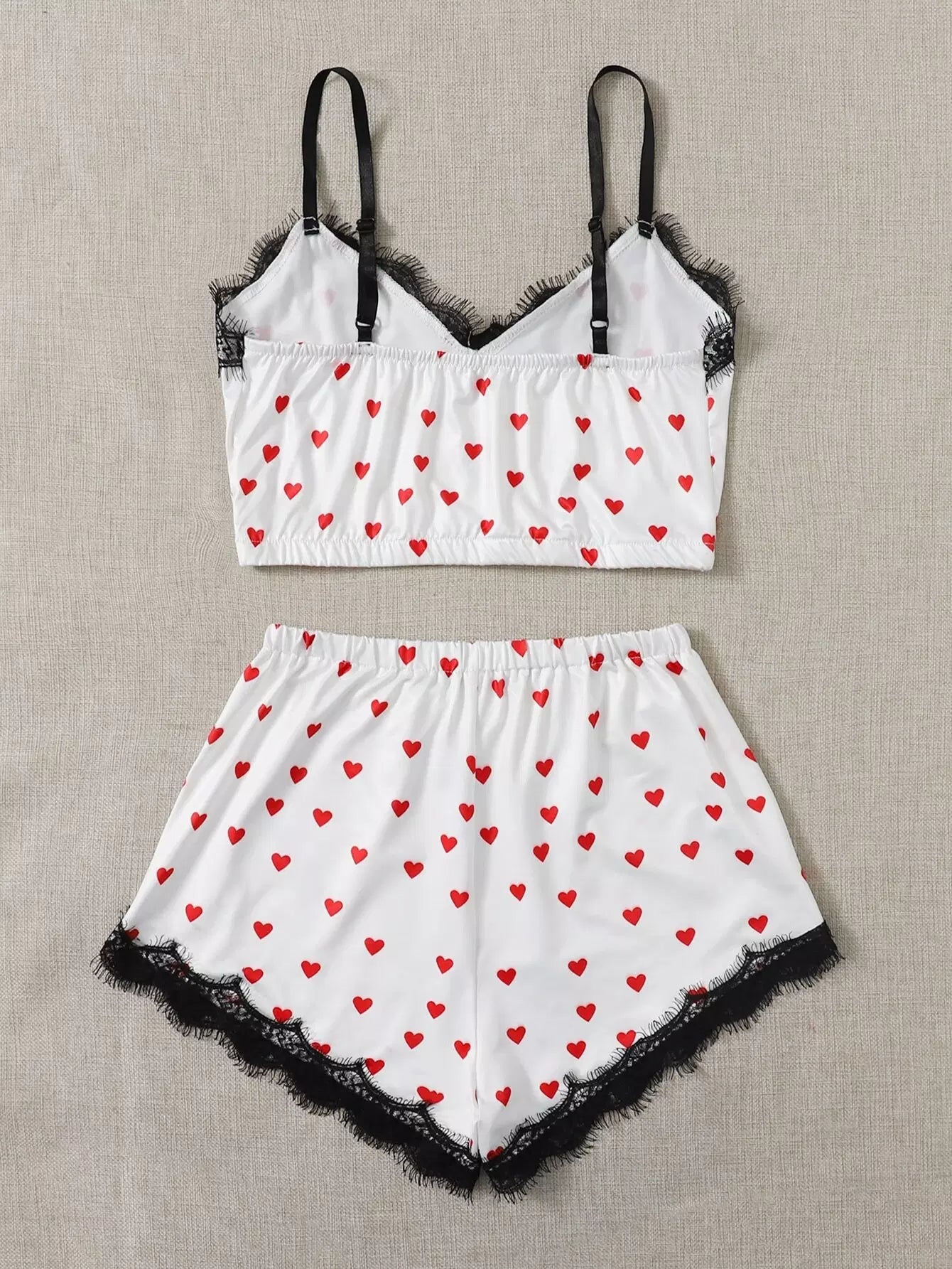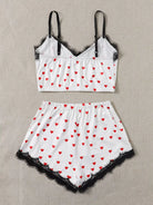 Heart Print Contrast Lace Pajama Set