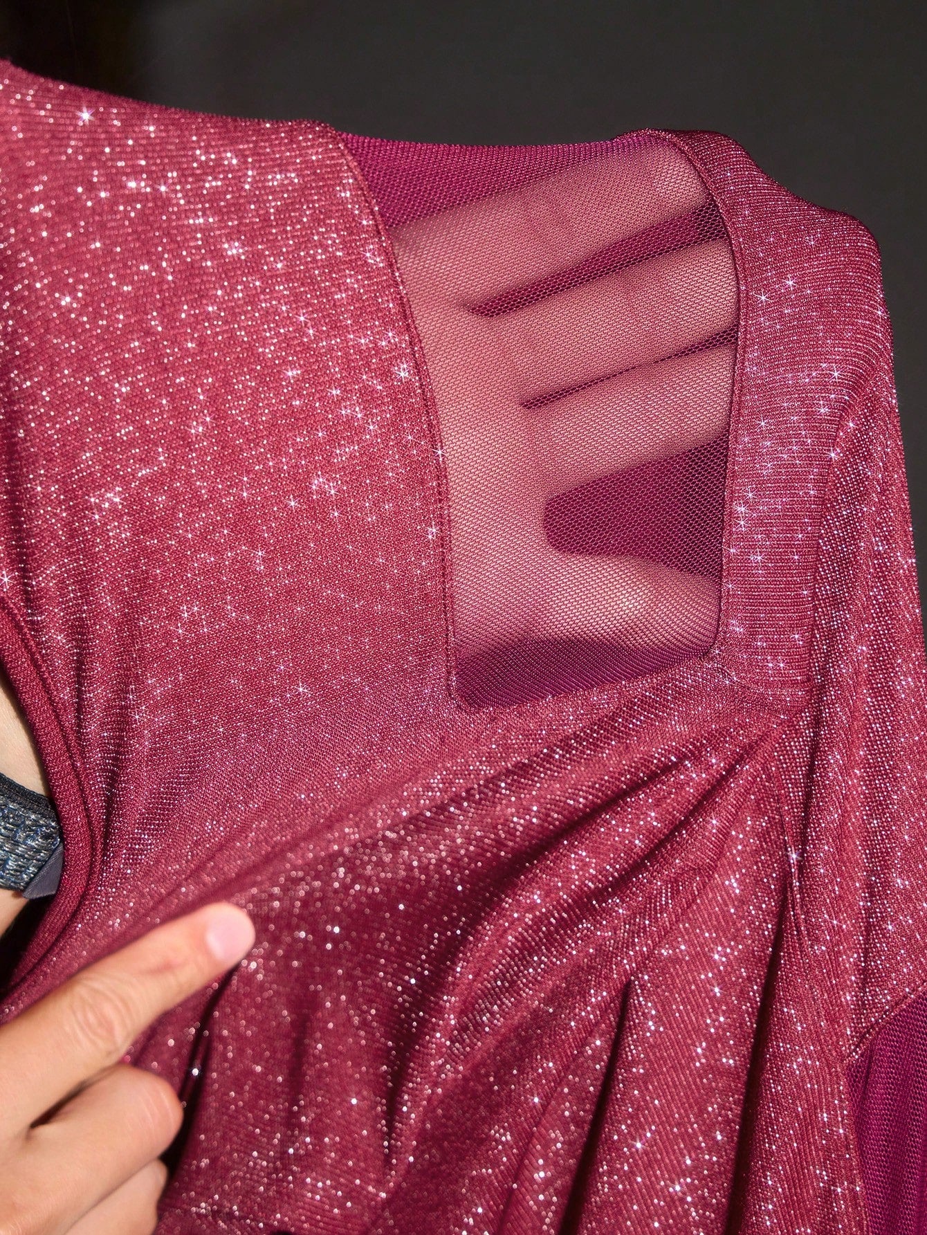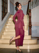 women HEAVINZ LANE Designer Women's Burgundy Shiny Glitter Sheer Mesh Blocked Long Party Elegant Party Dress Outfit For Holiday