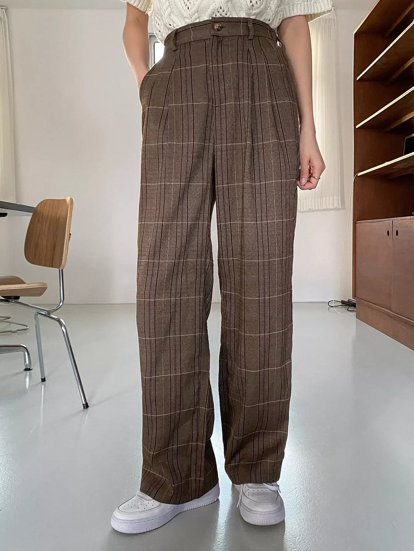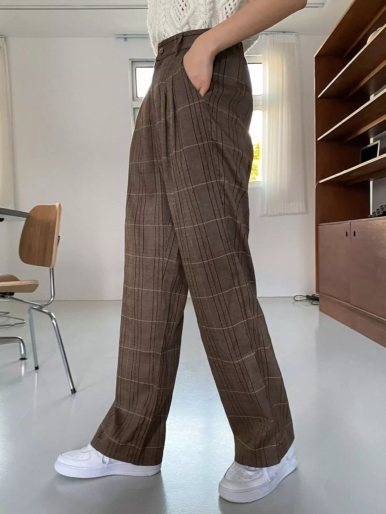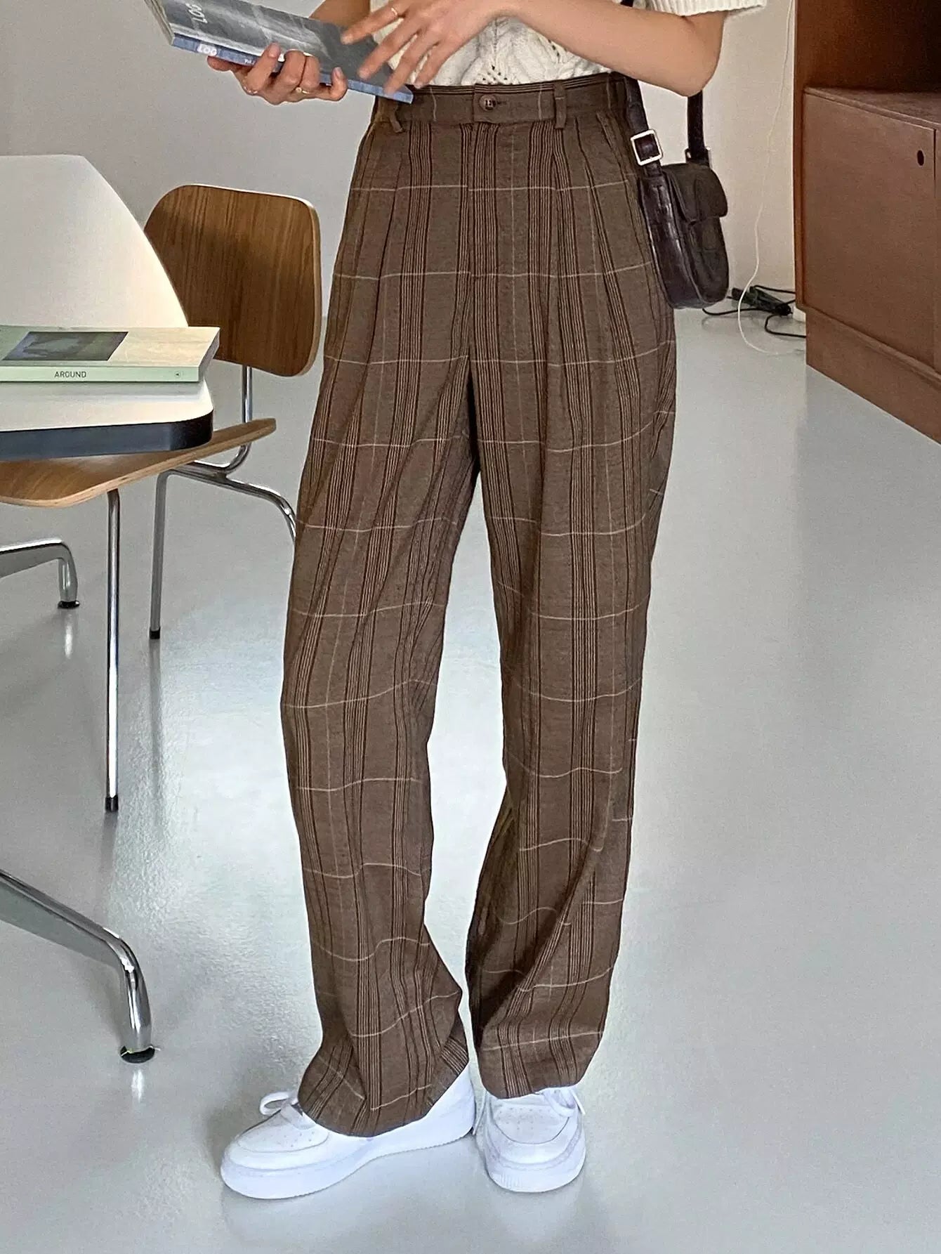 High Waist Plaid Slant Pockets Pants