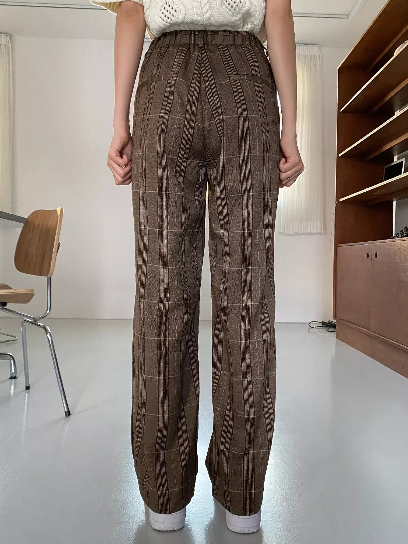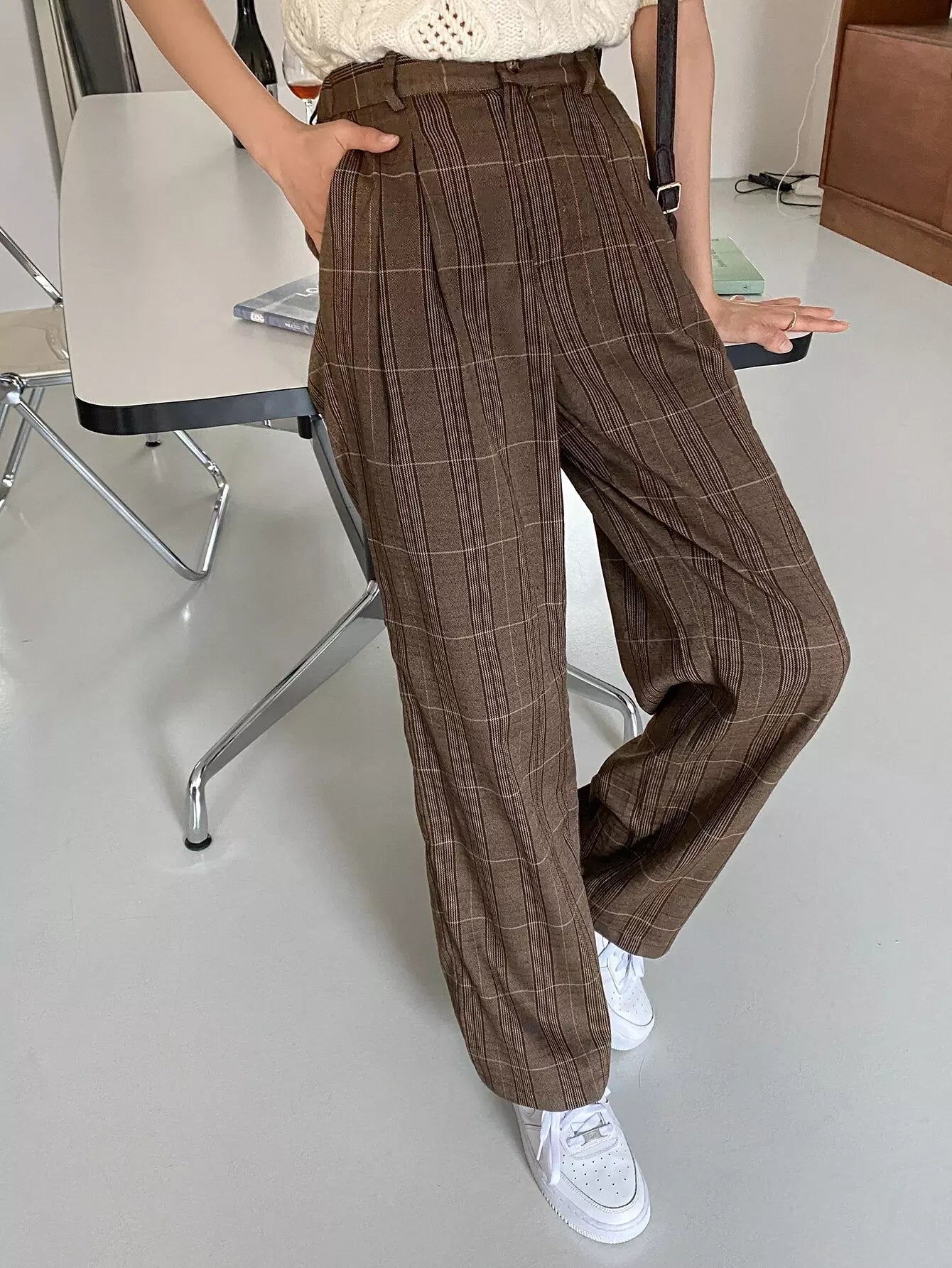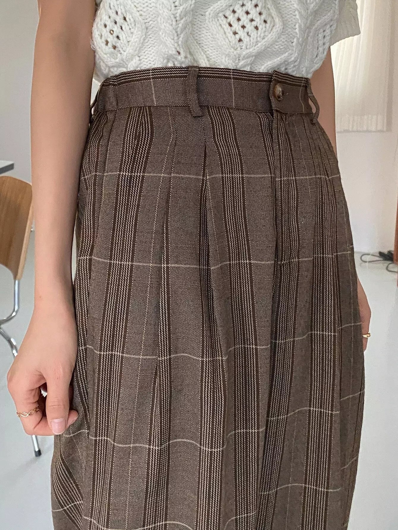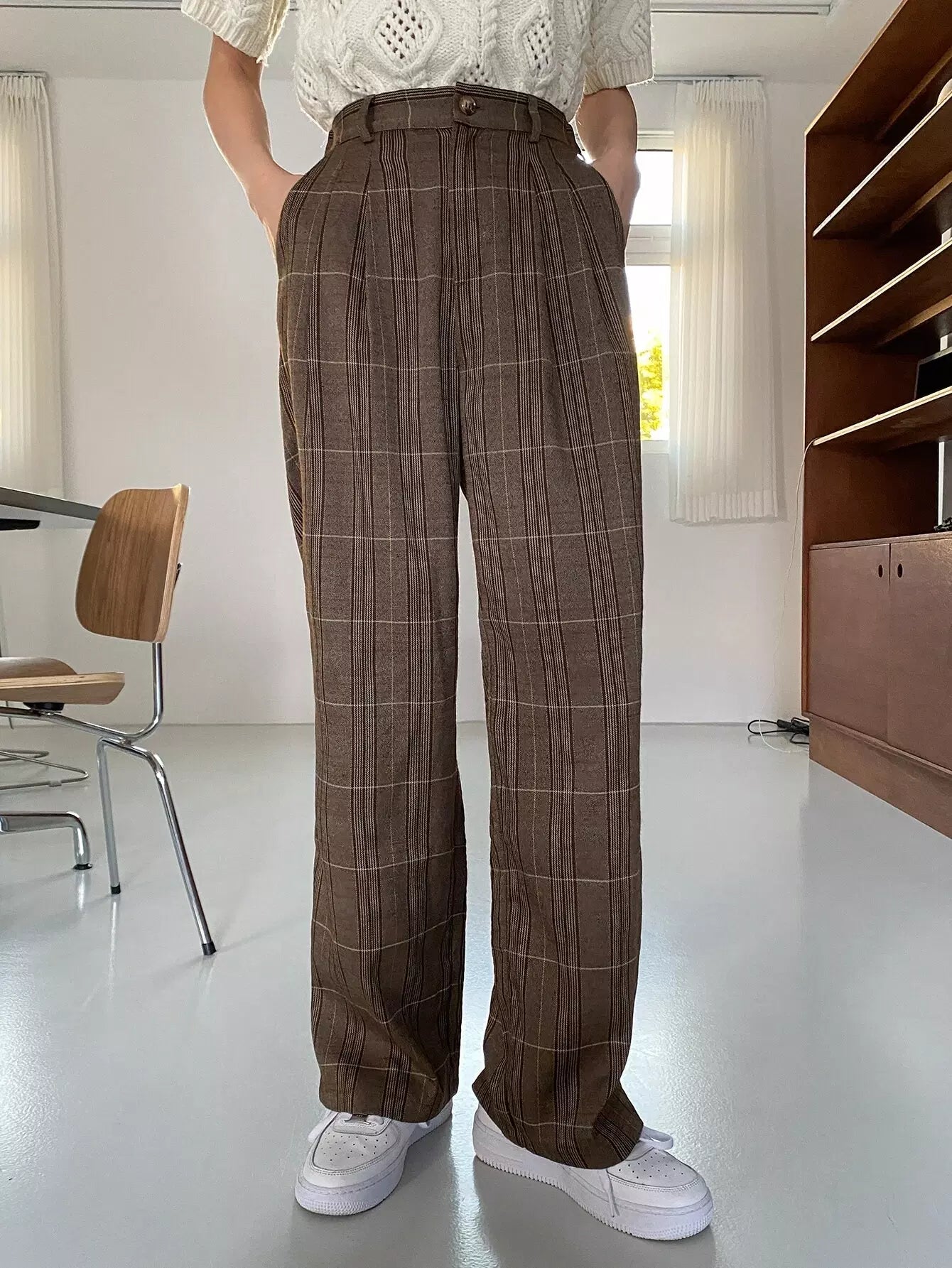 High Waist Plaid Slant Pockets Pants
