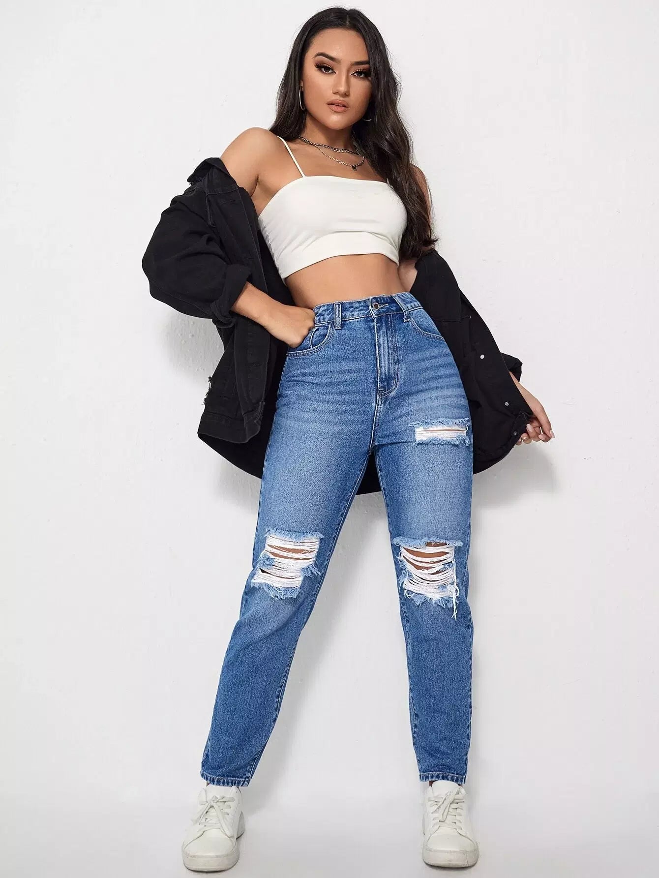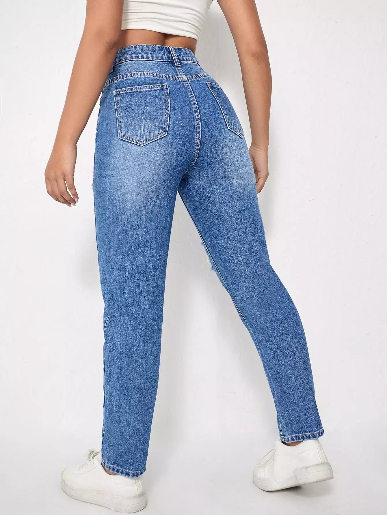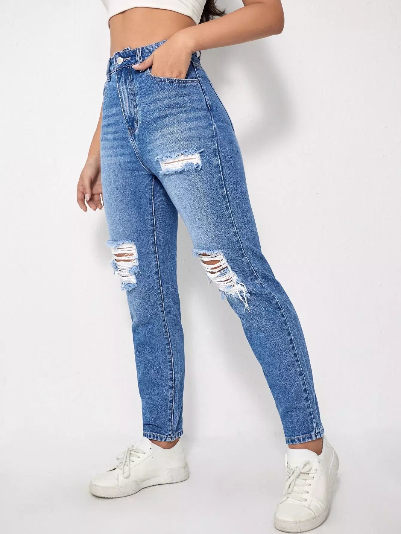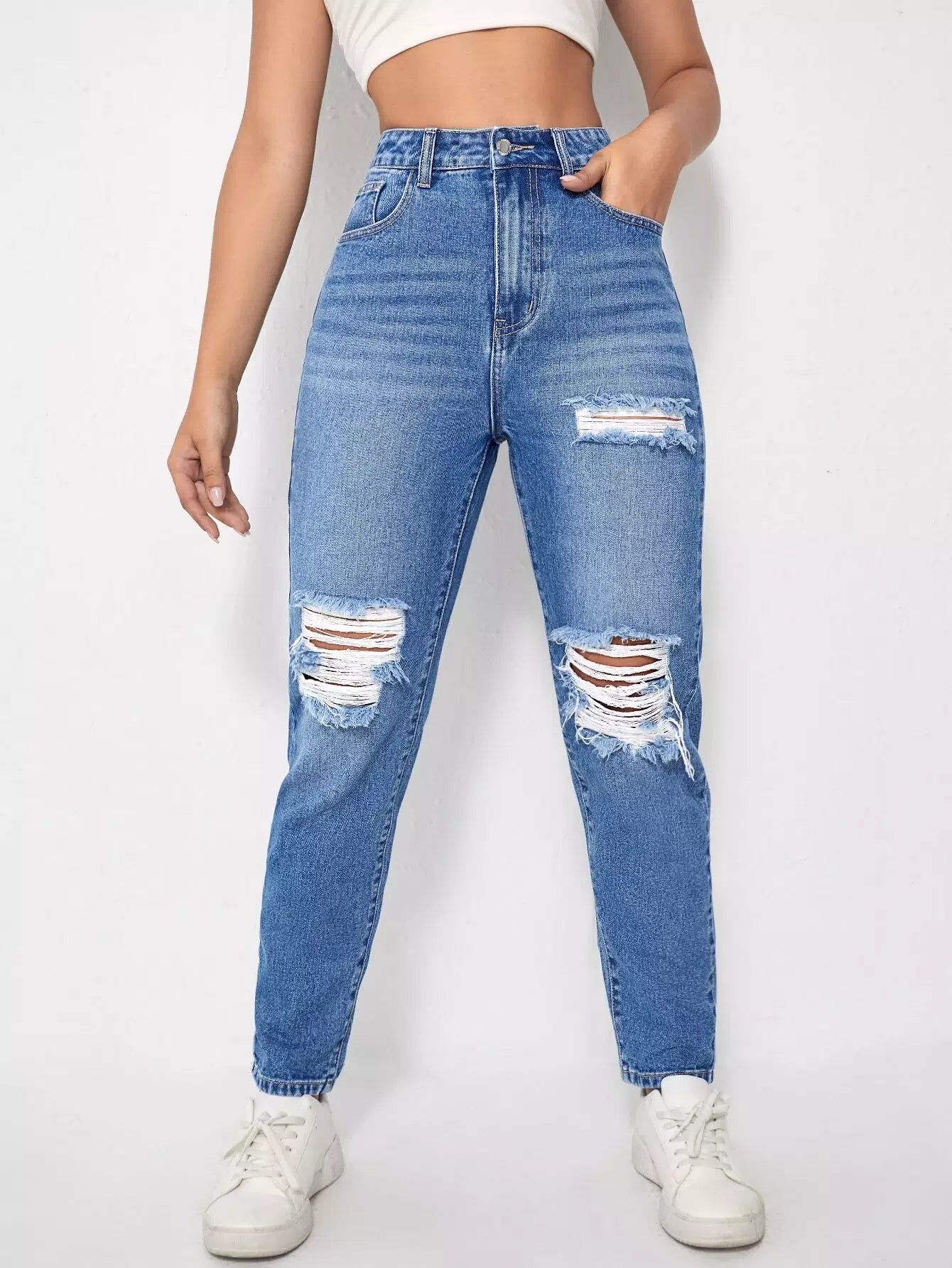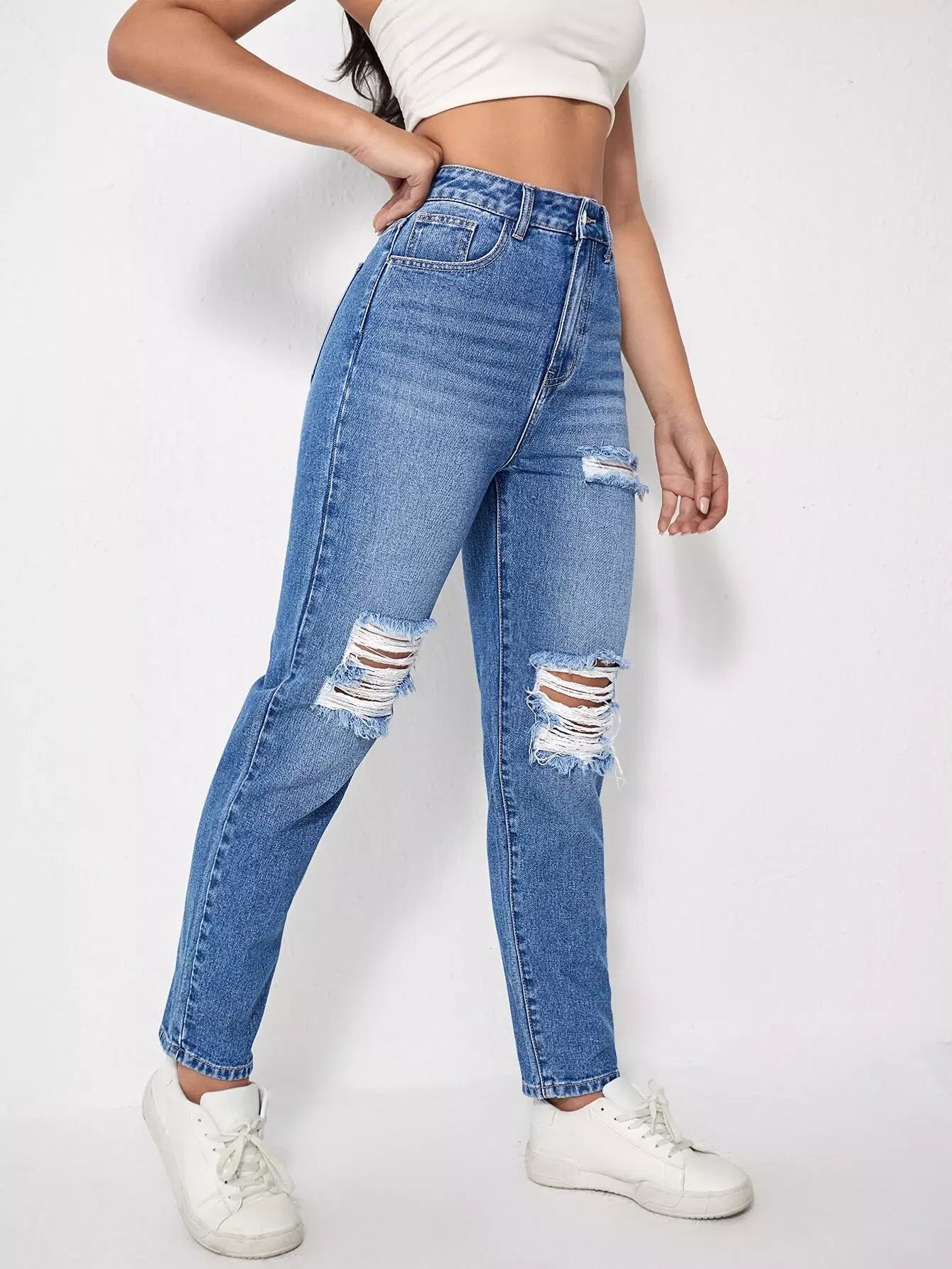 High Waist Ripped Mom Jeans