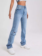 High Waist Ripped Raw Hem Jeans