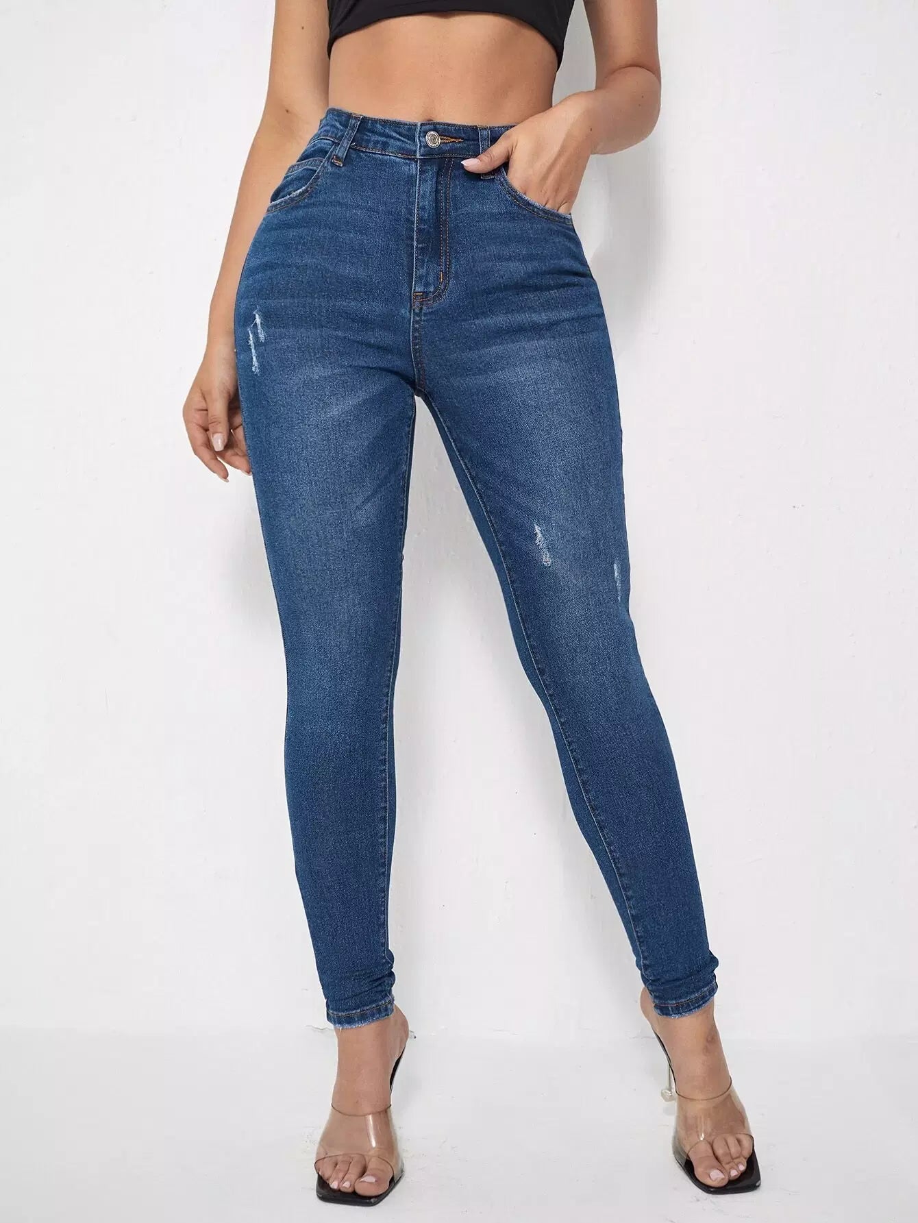High Waist Ripped Skinny Jeans