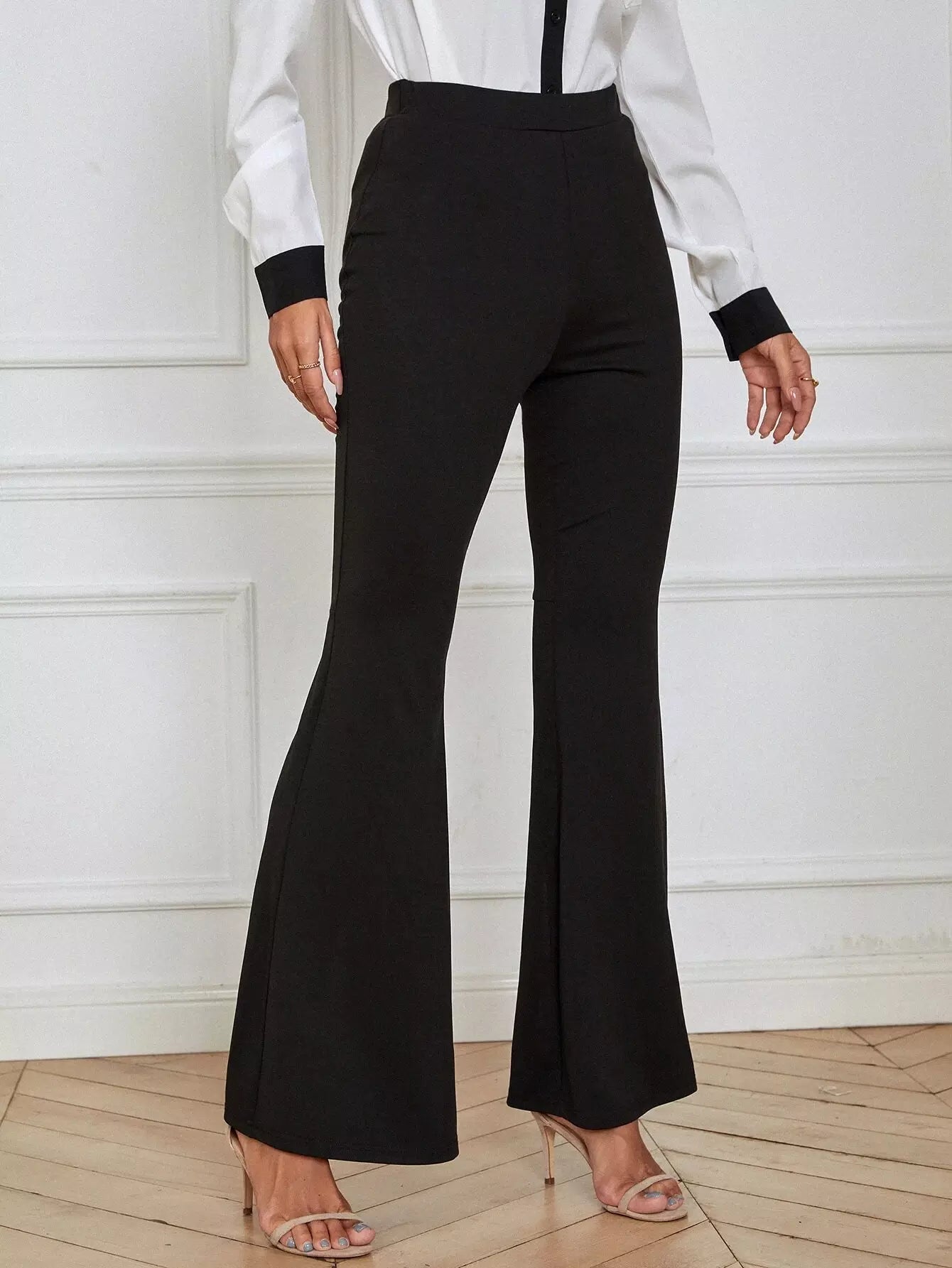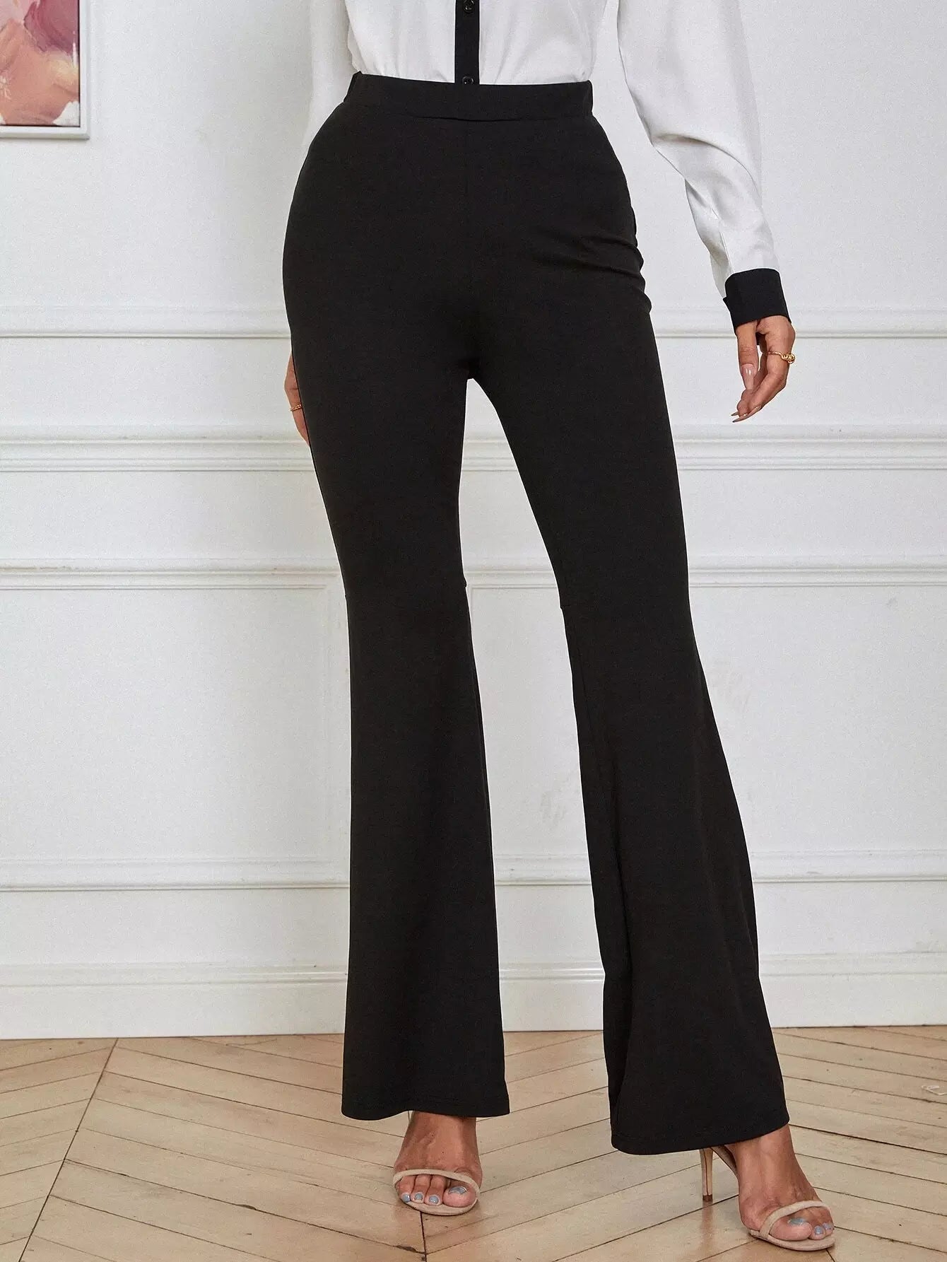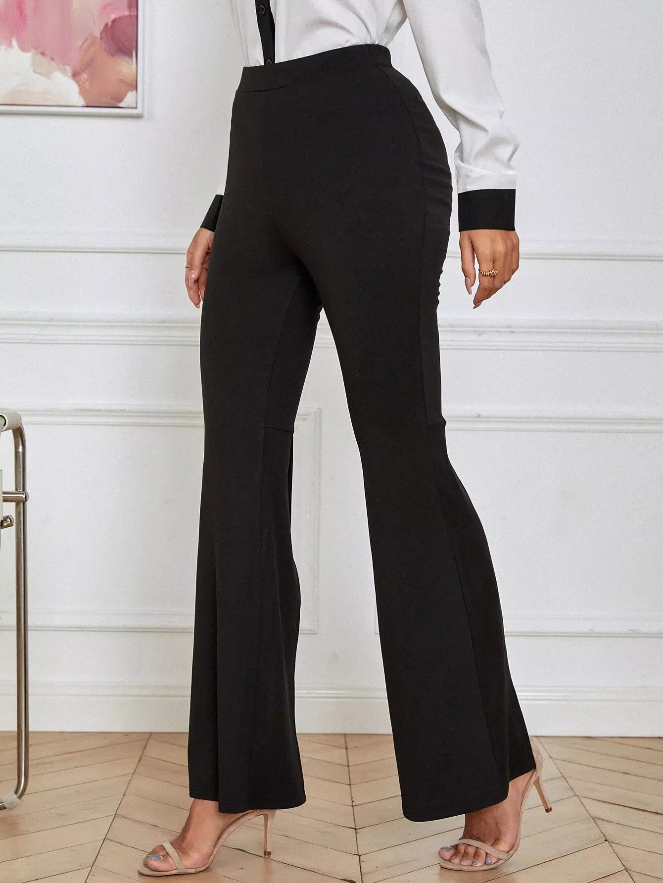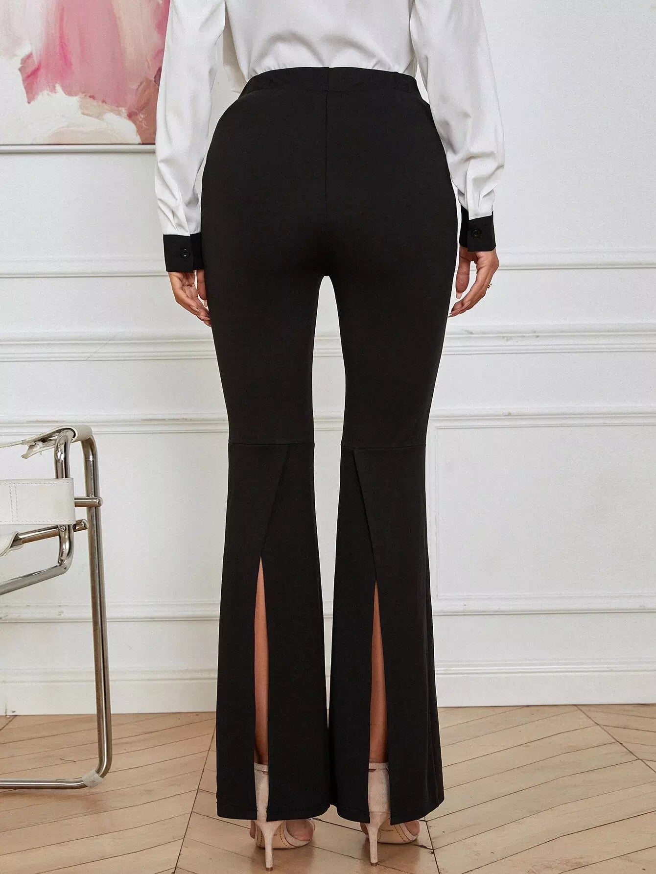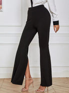 High Waist Slit Hem Flare Leg Pants