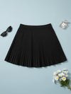 High Waist Solid Pleated Skirt