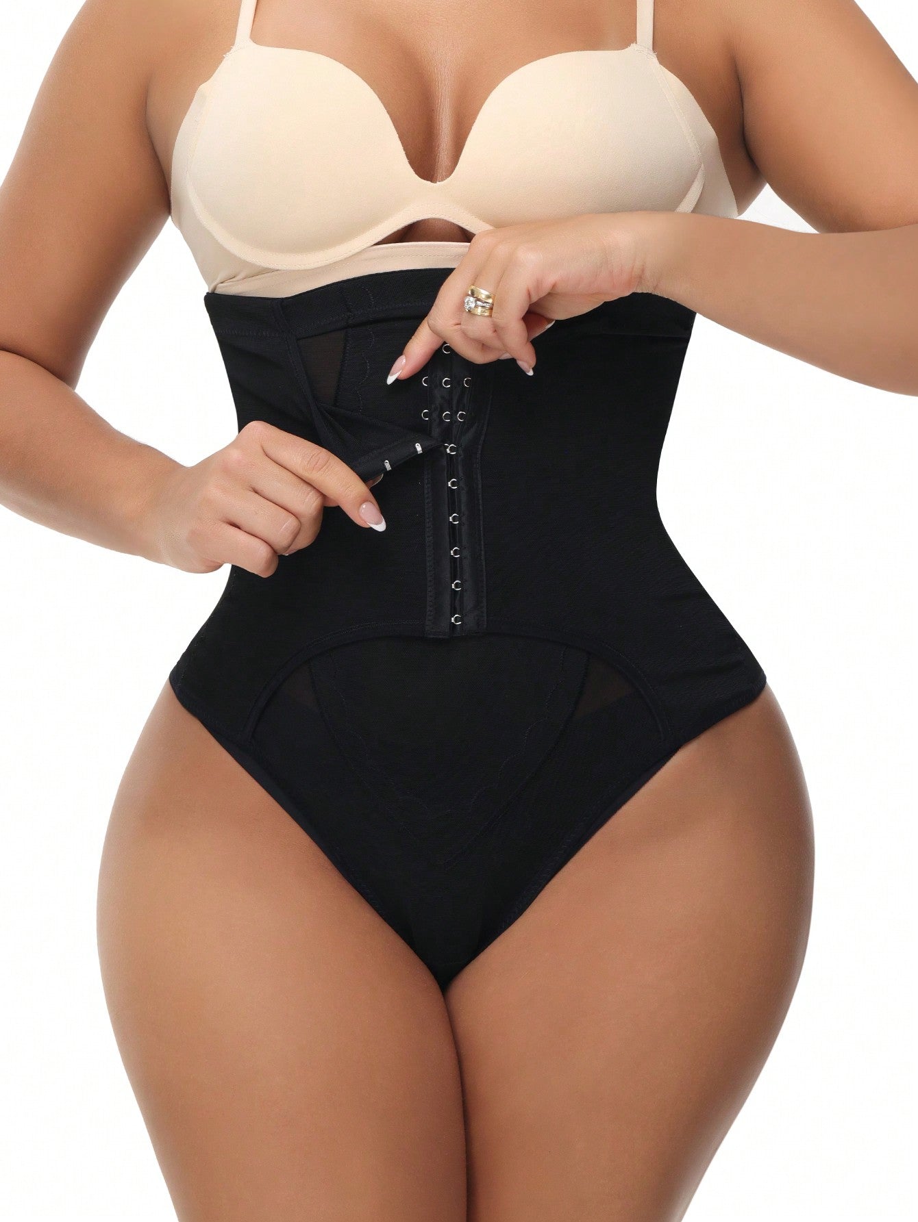 High Waist Tummy Control Thong Panties With Buckle Closure