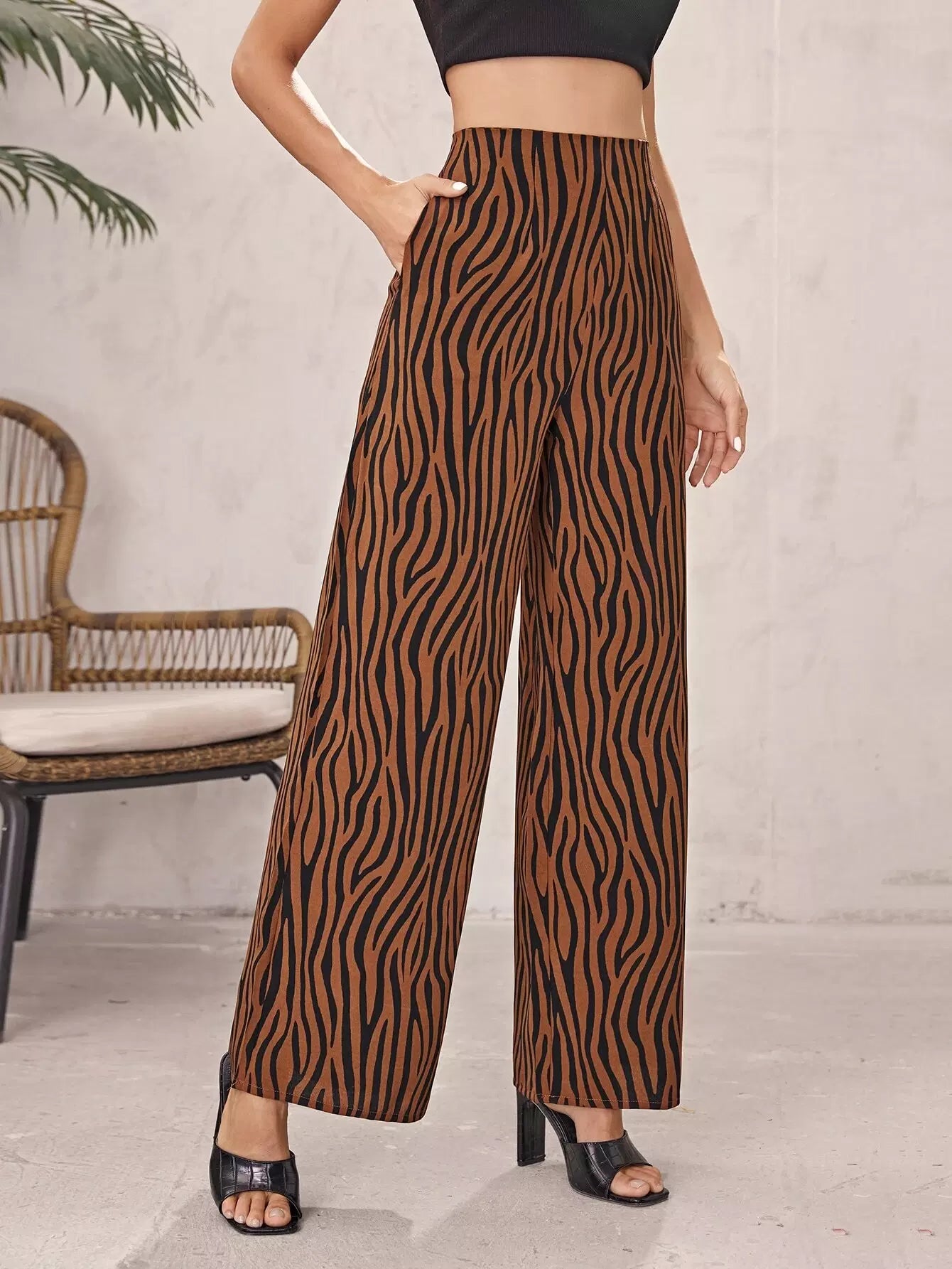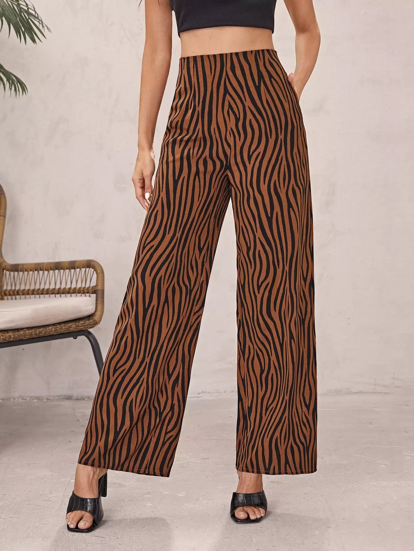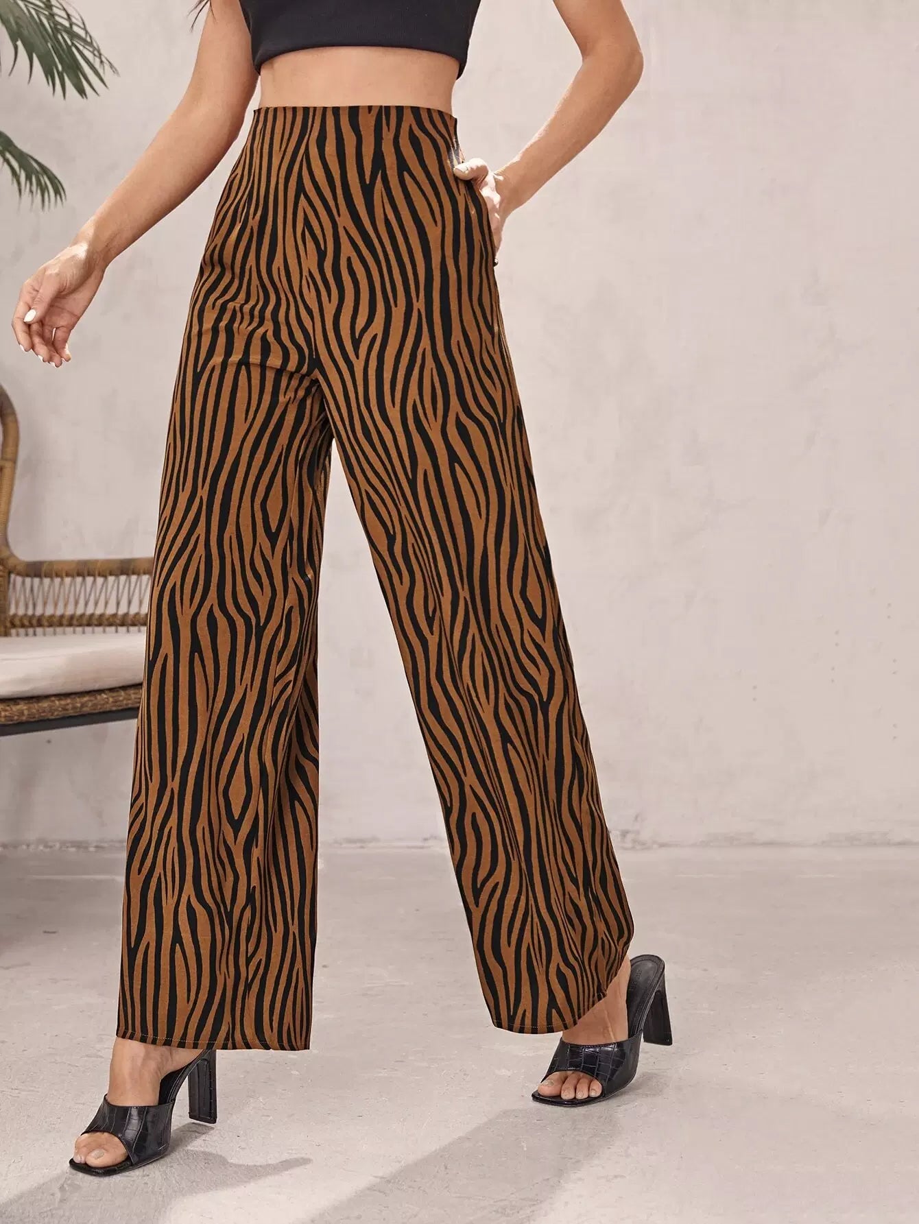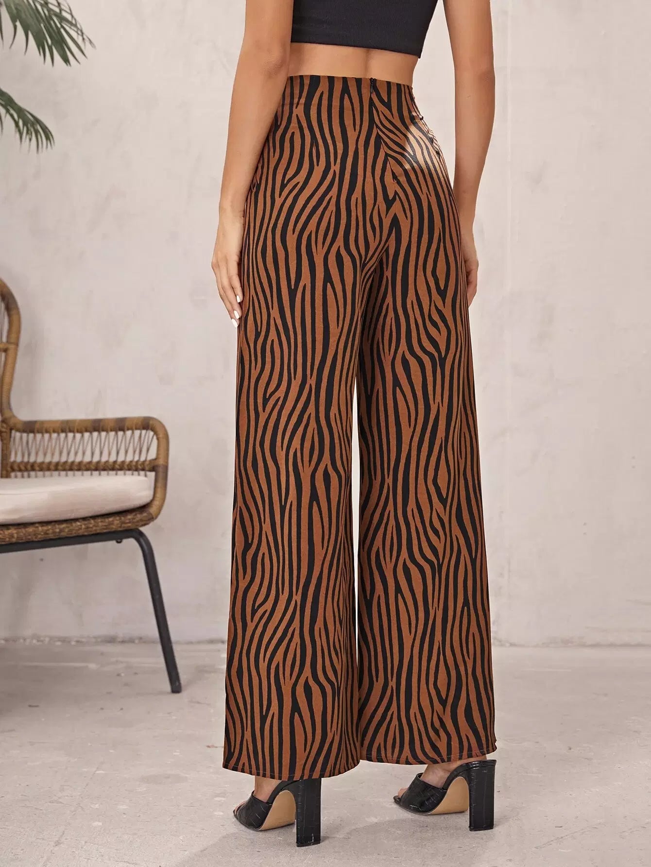 High Waist Zebra Stripe Wide Leg Pants