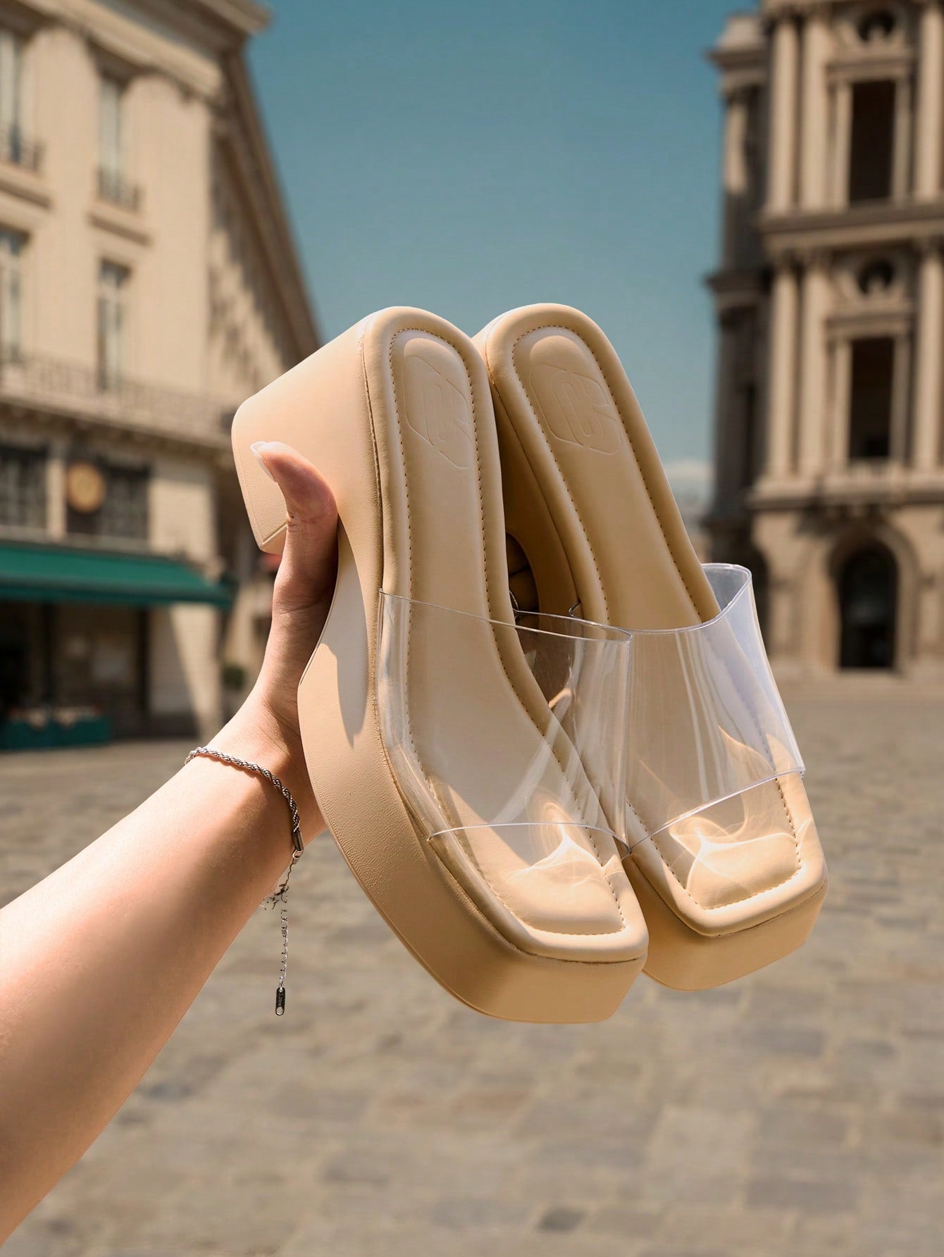 women HighSole CUCCOO Fashion Film Thick Bottom Chunky Heel Slide Sandals