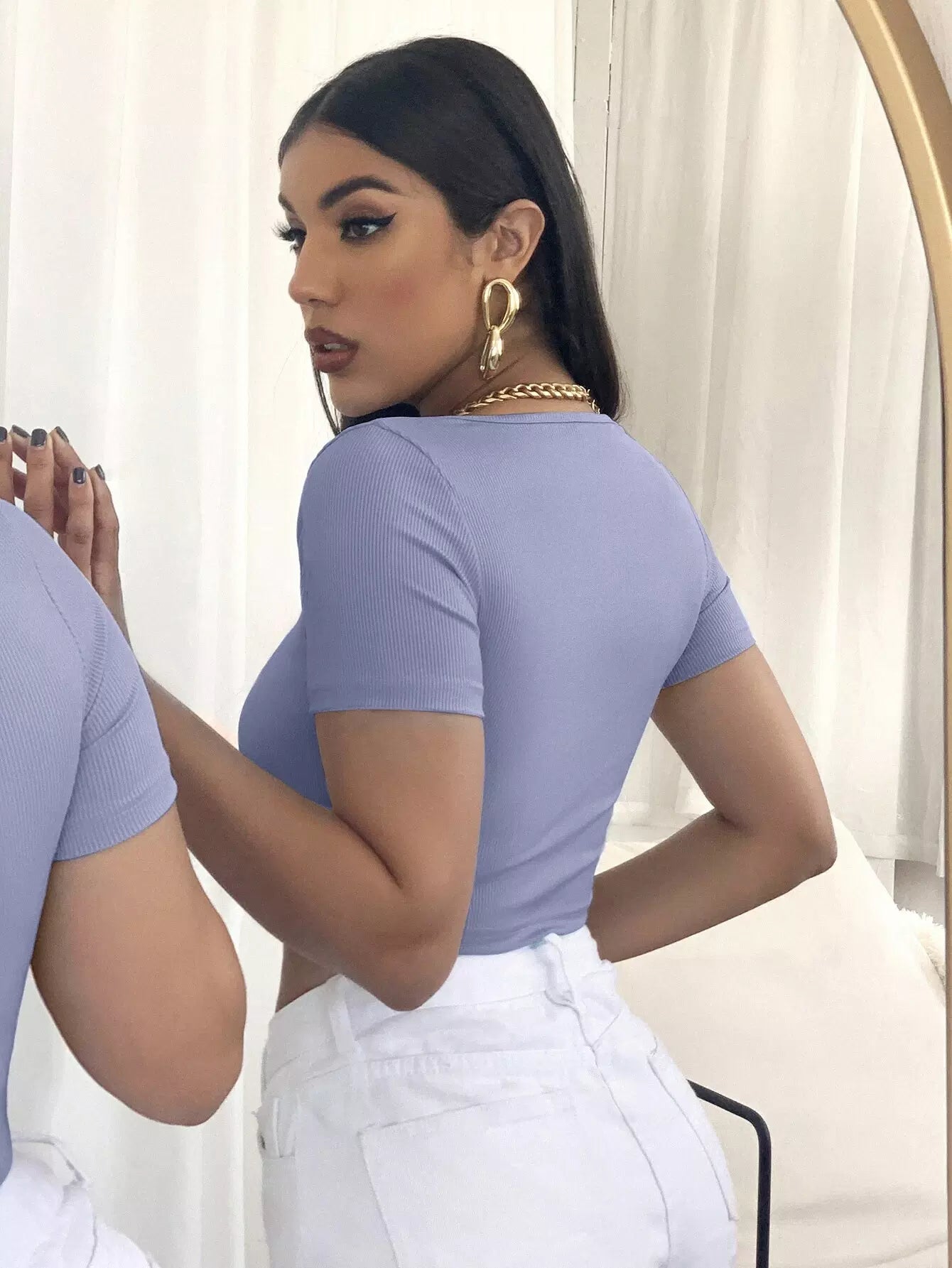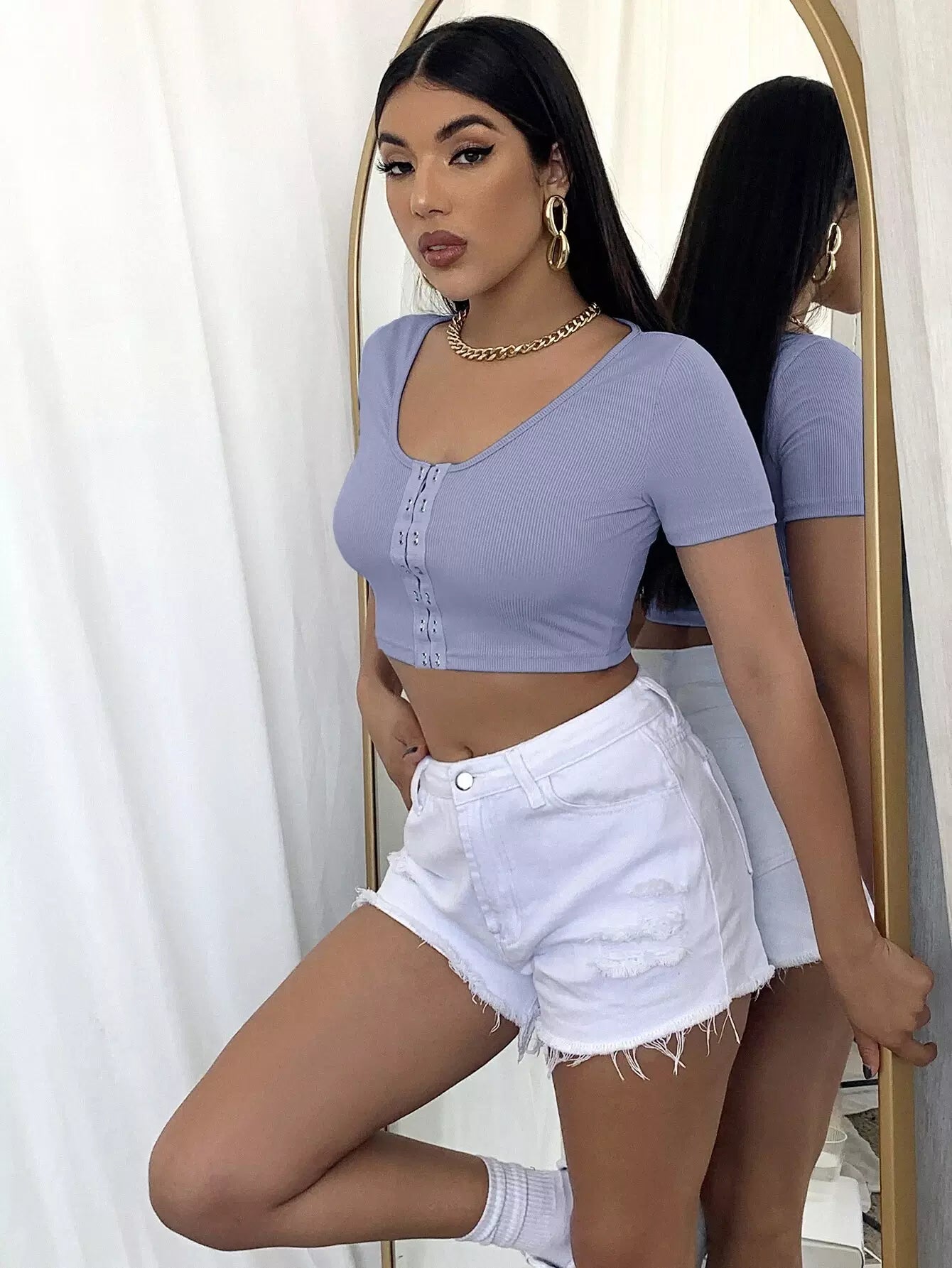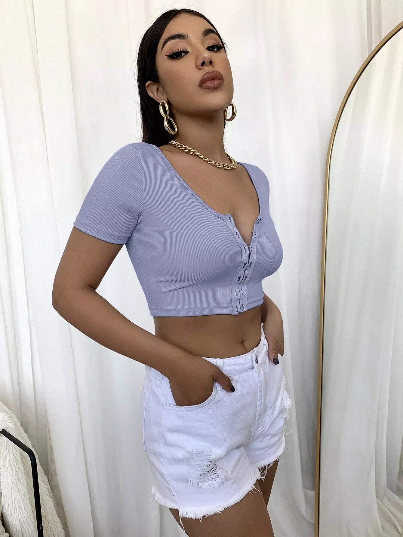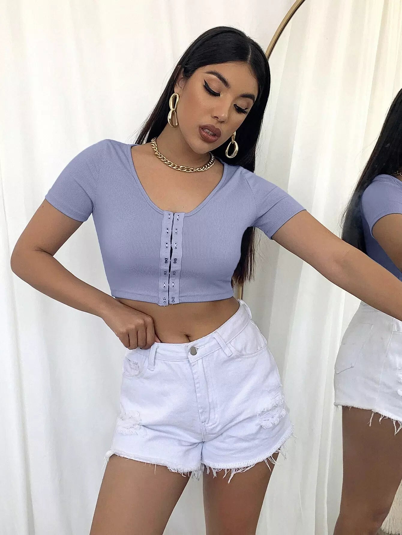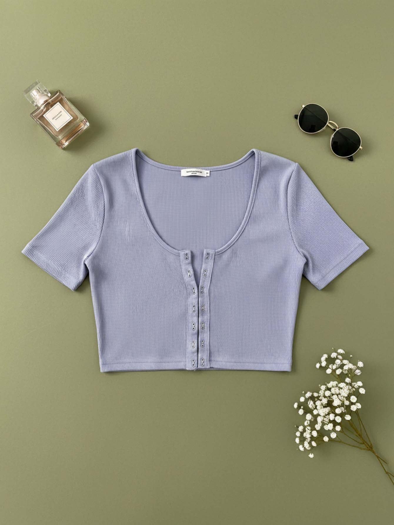 Hook and Eye Rib-knit Crop Top