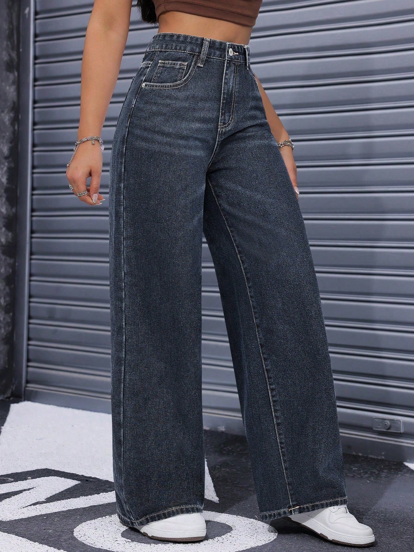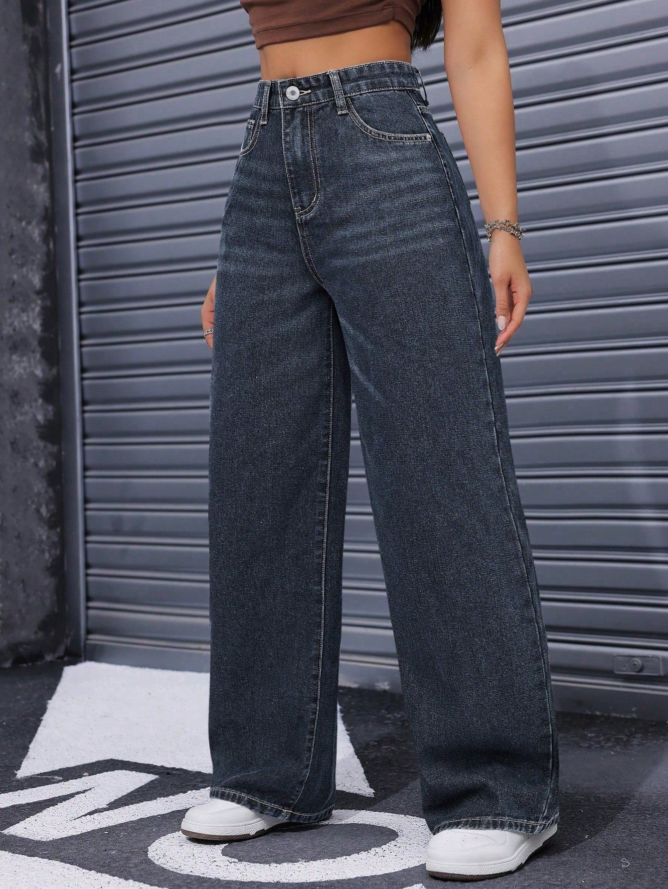 ICON Casual Washed High Waist Straight Leg Jeans