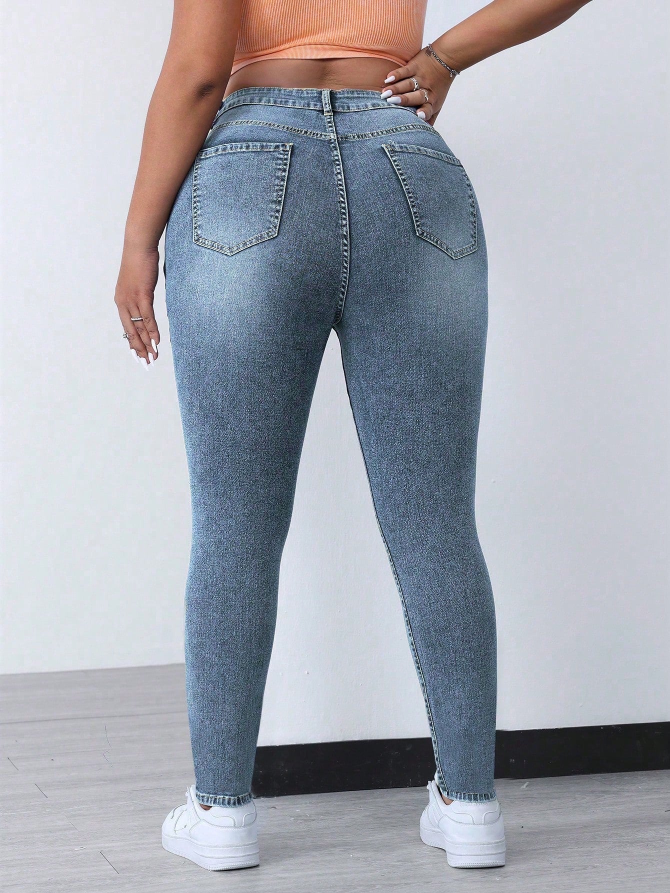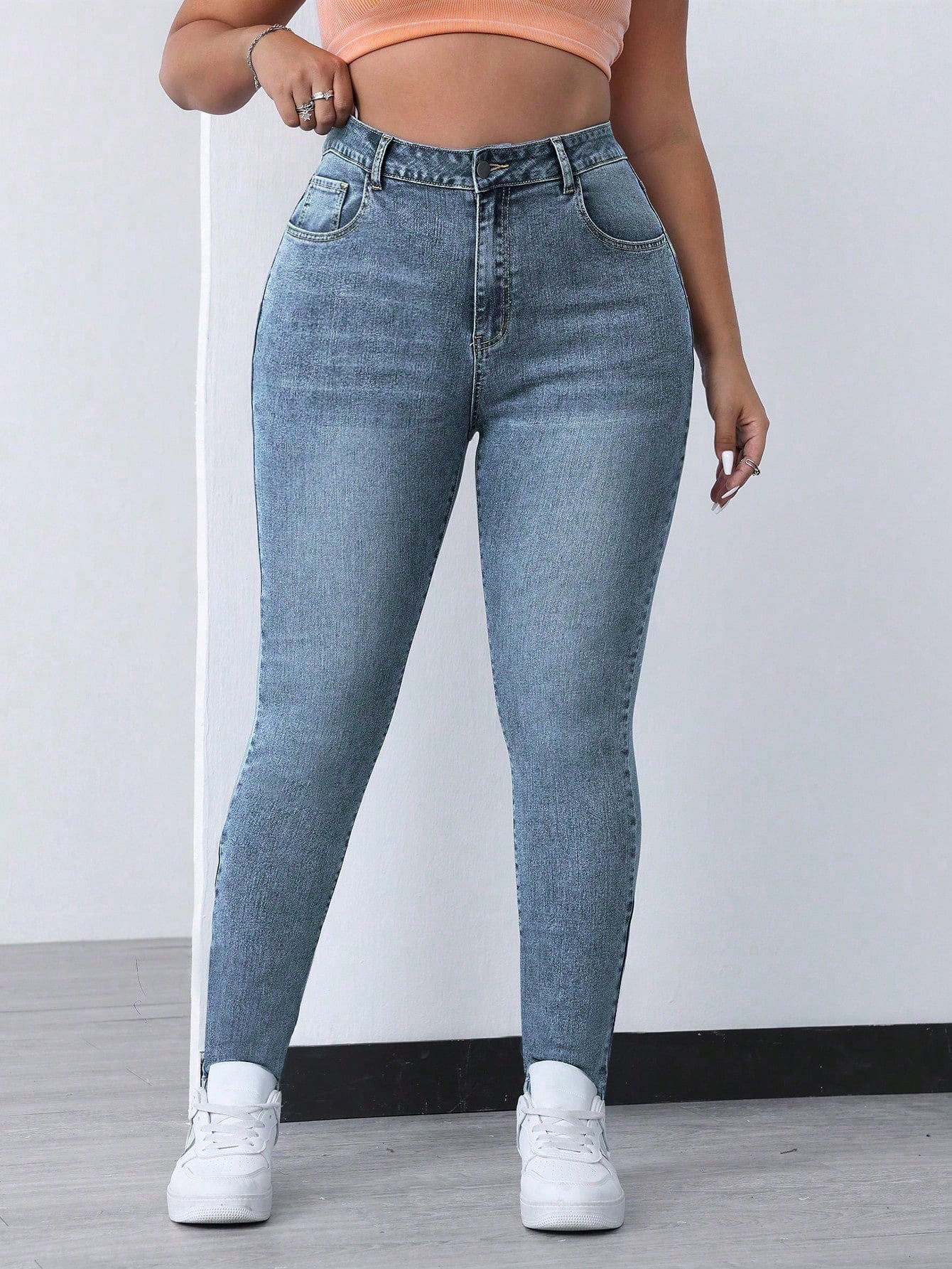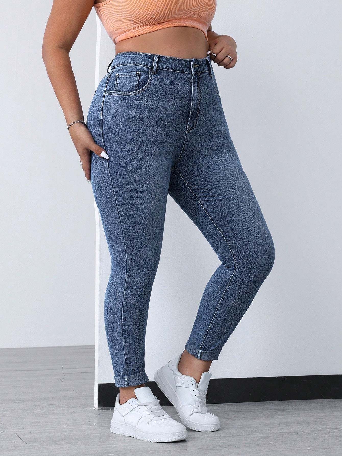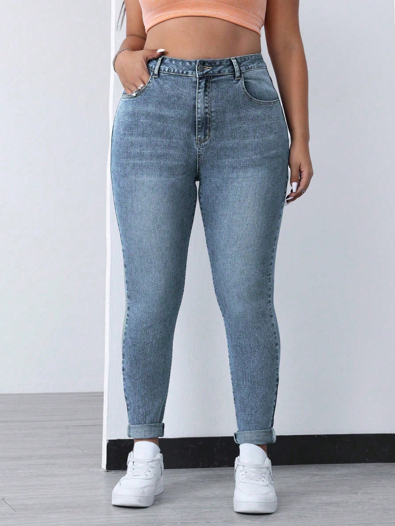 ICON Plus Size Solid Color Skinny Casual Jeans With Pockets