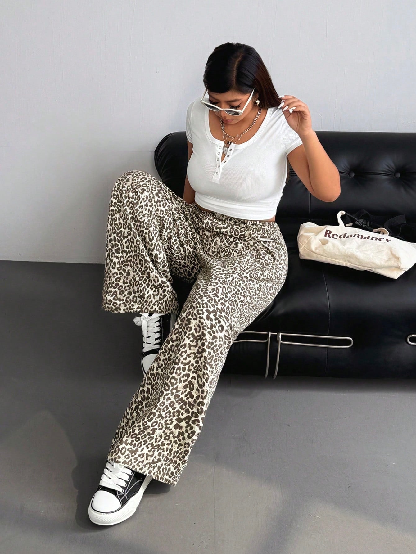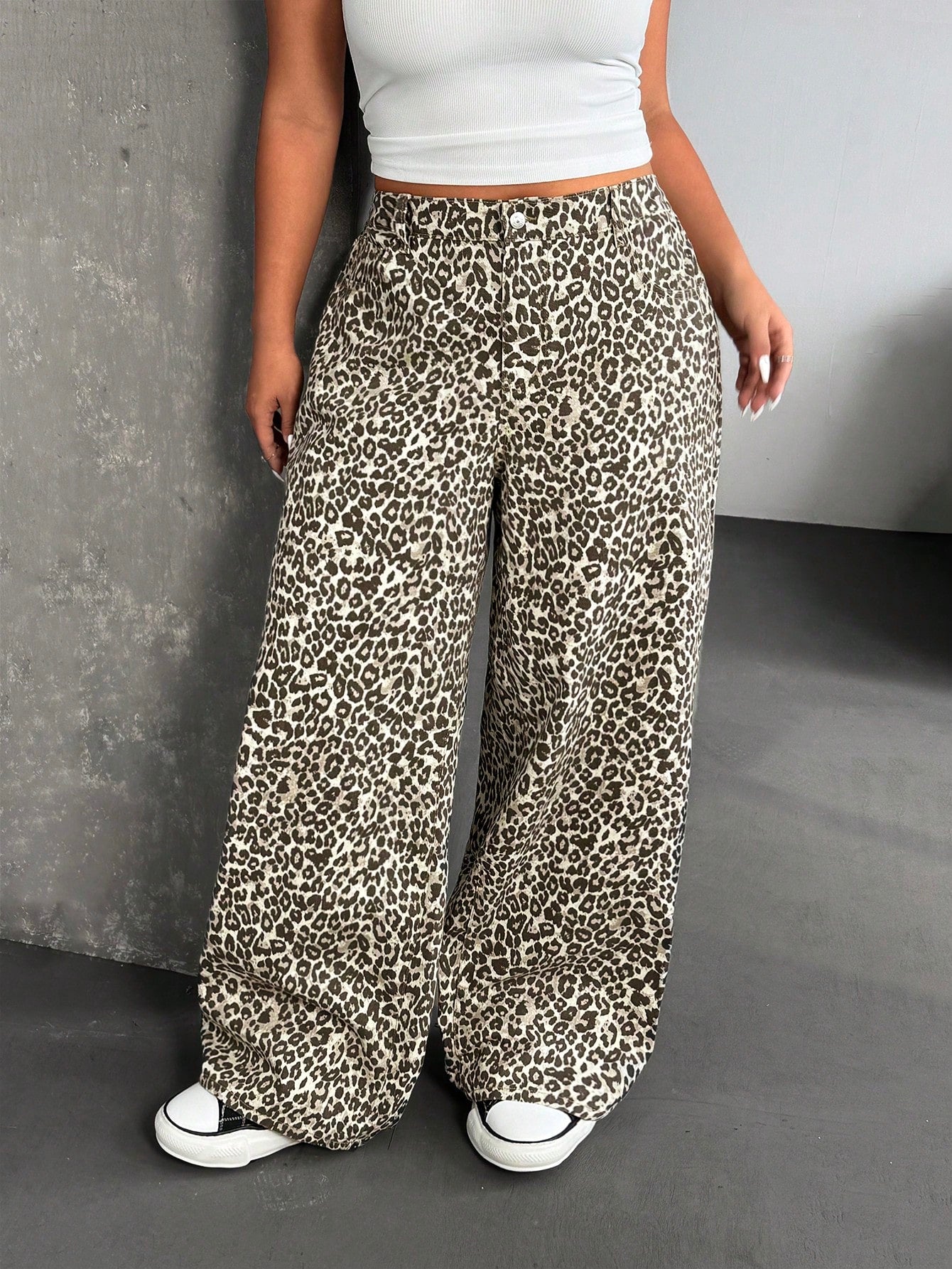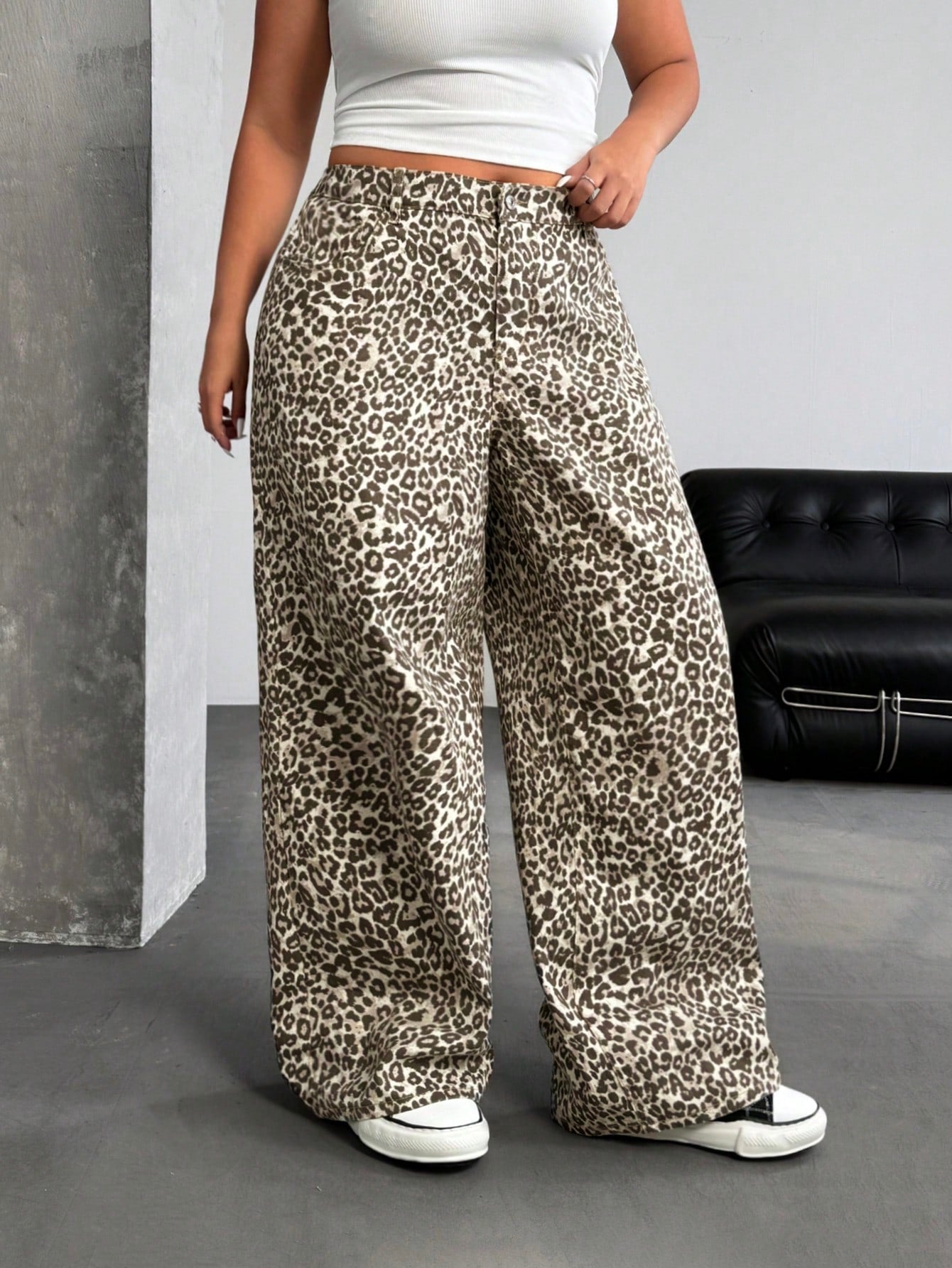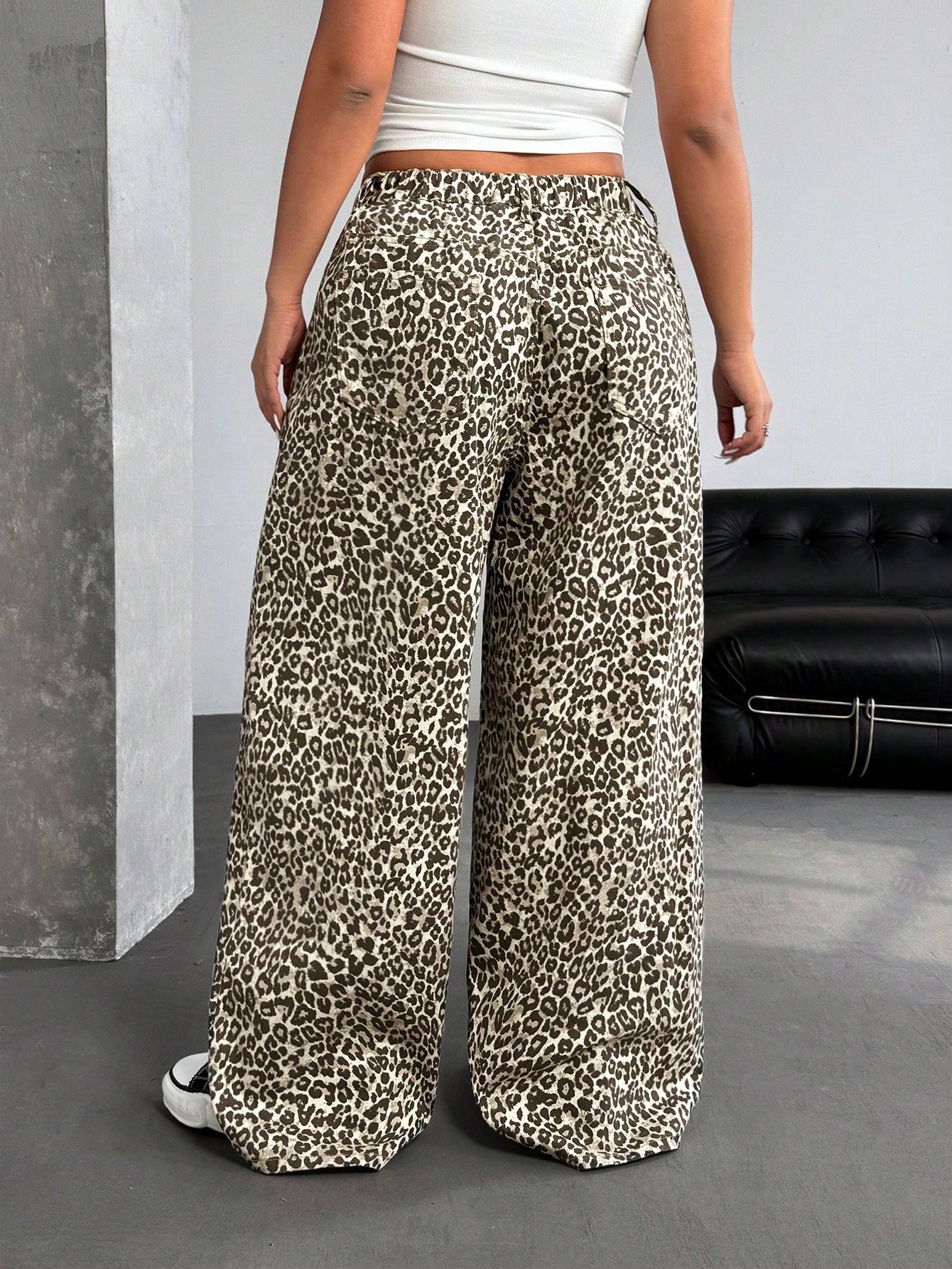 ICON Plus Size Y2K Streetwear Casual Loose Leopard Print Baggy Jeans