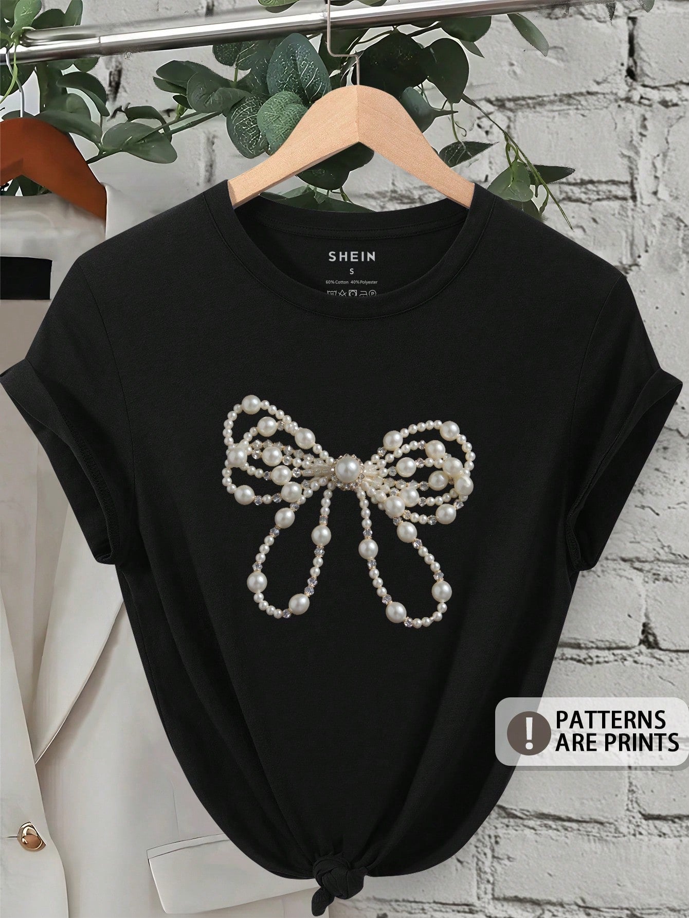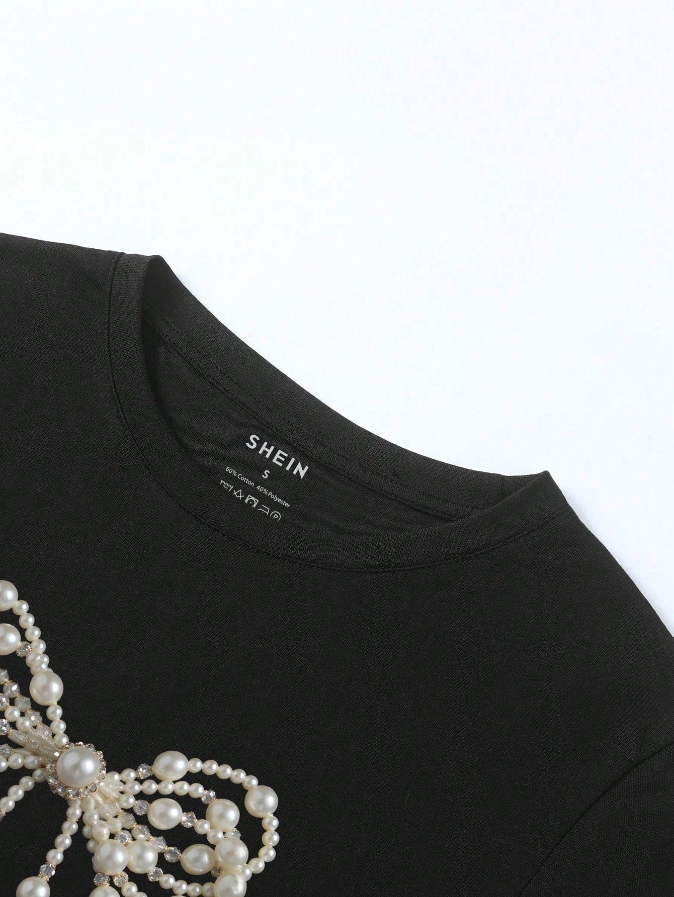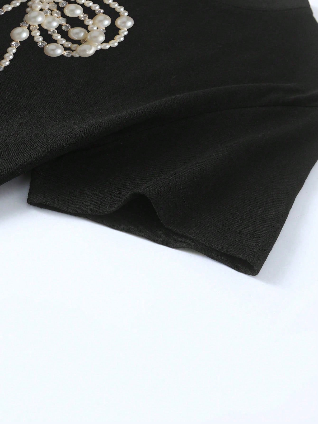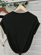 INAWLY Beaded Round Neck Butterfly Decor Batwing Sleeve Short Sleeve T-Shirt