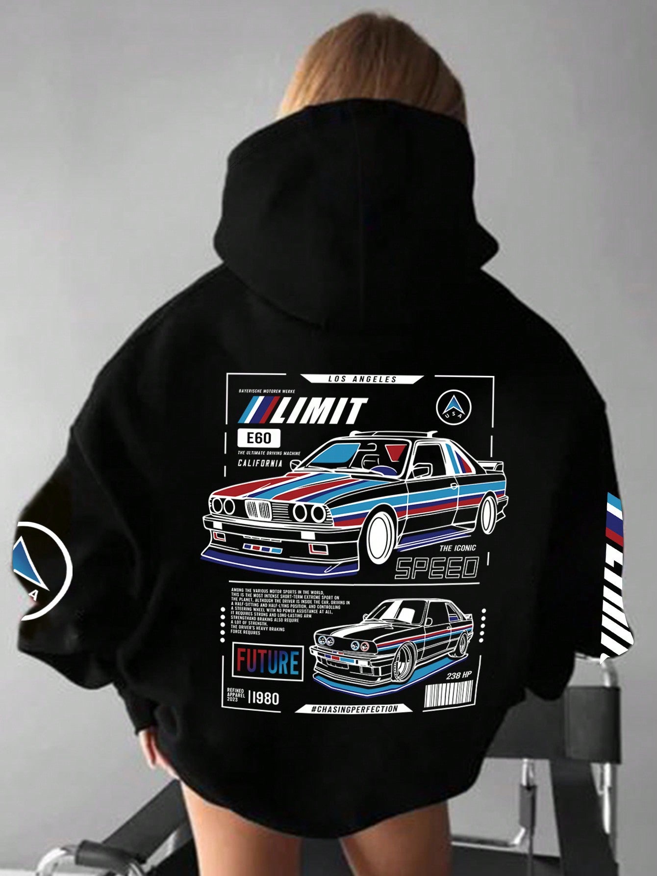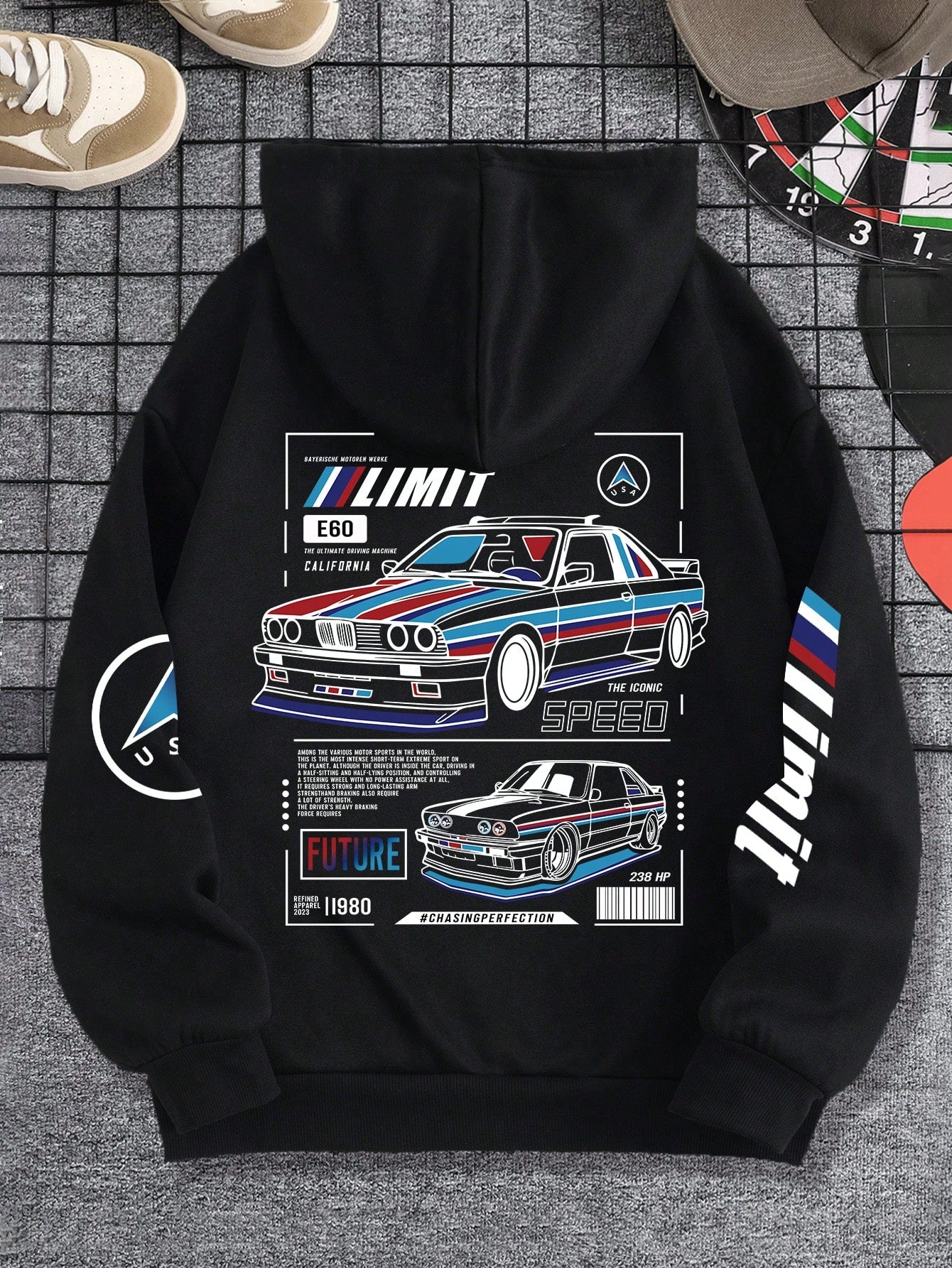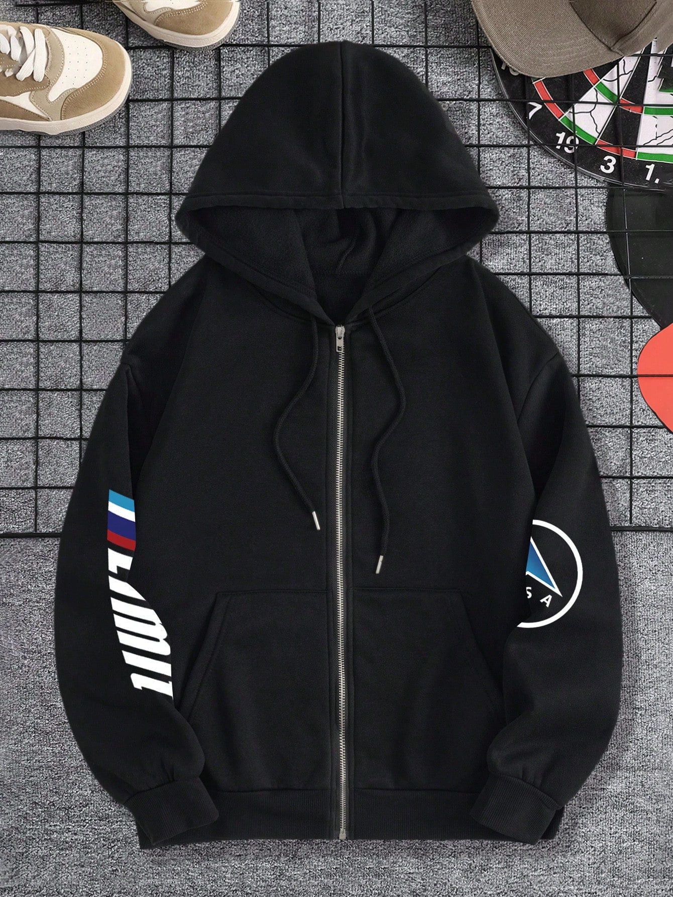 INAWLY Casual Zipper Hooded Sweatshirt With Car Print And Drawstring