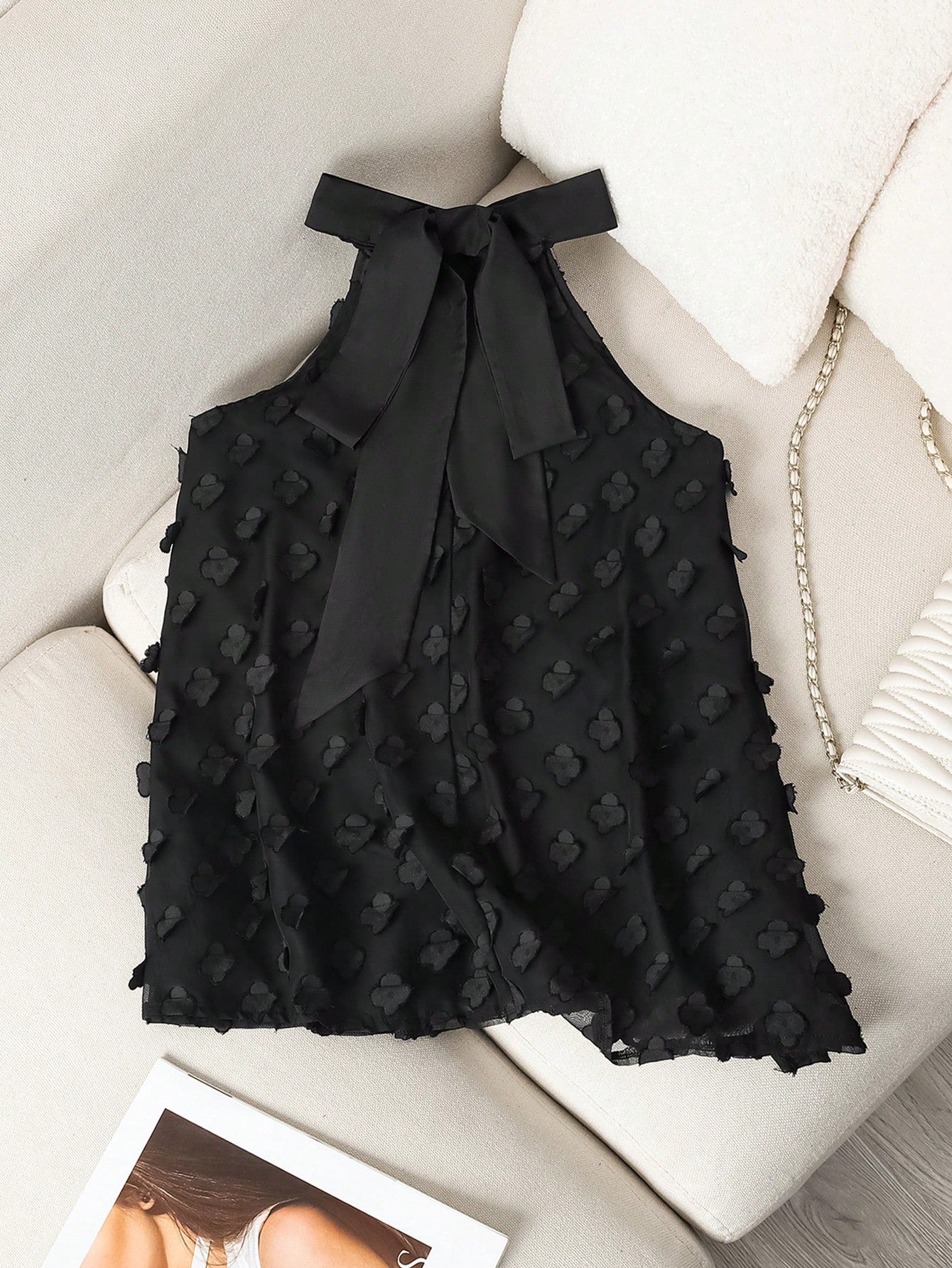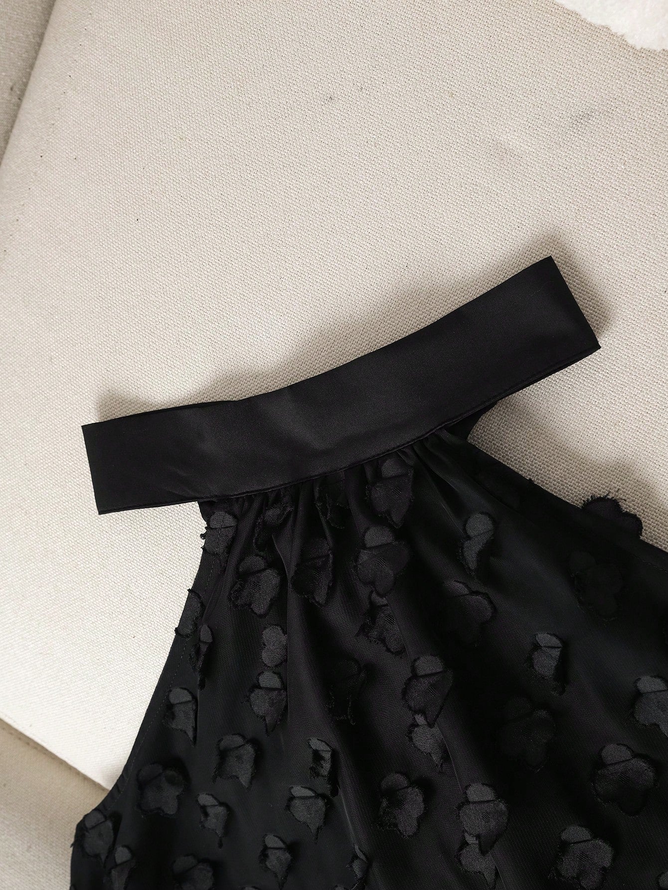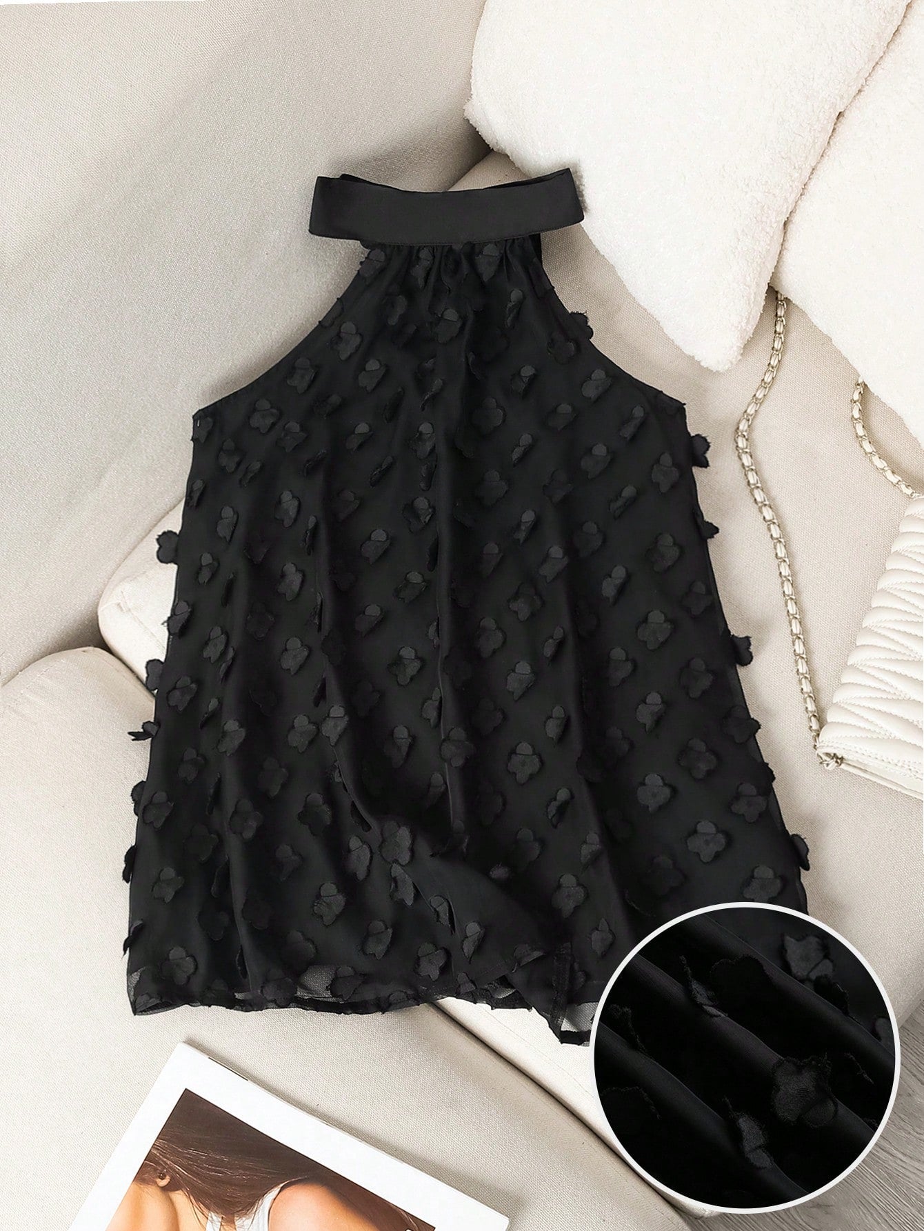 INAWLY Plus Size Women Chiffon Cutout Black Halter Neck Vest