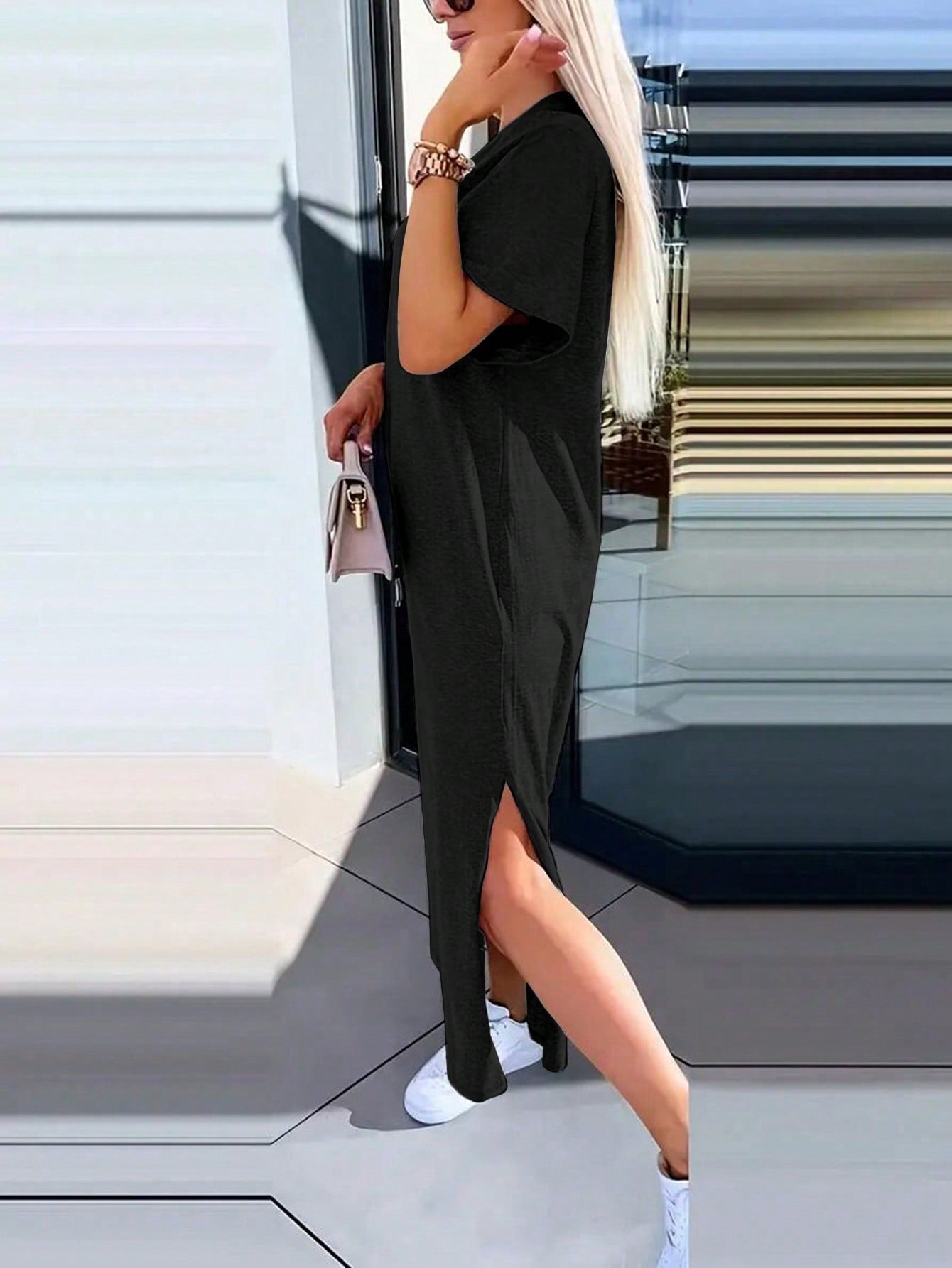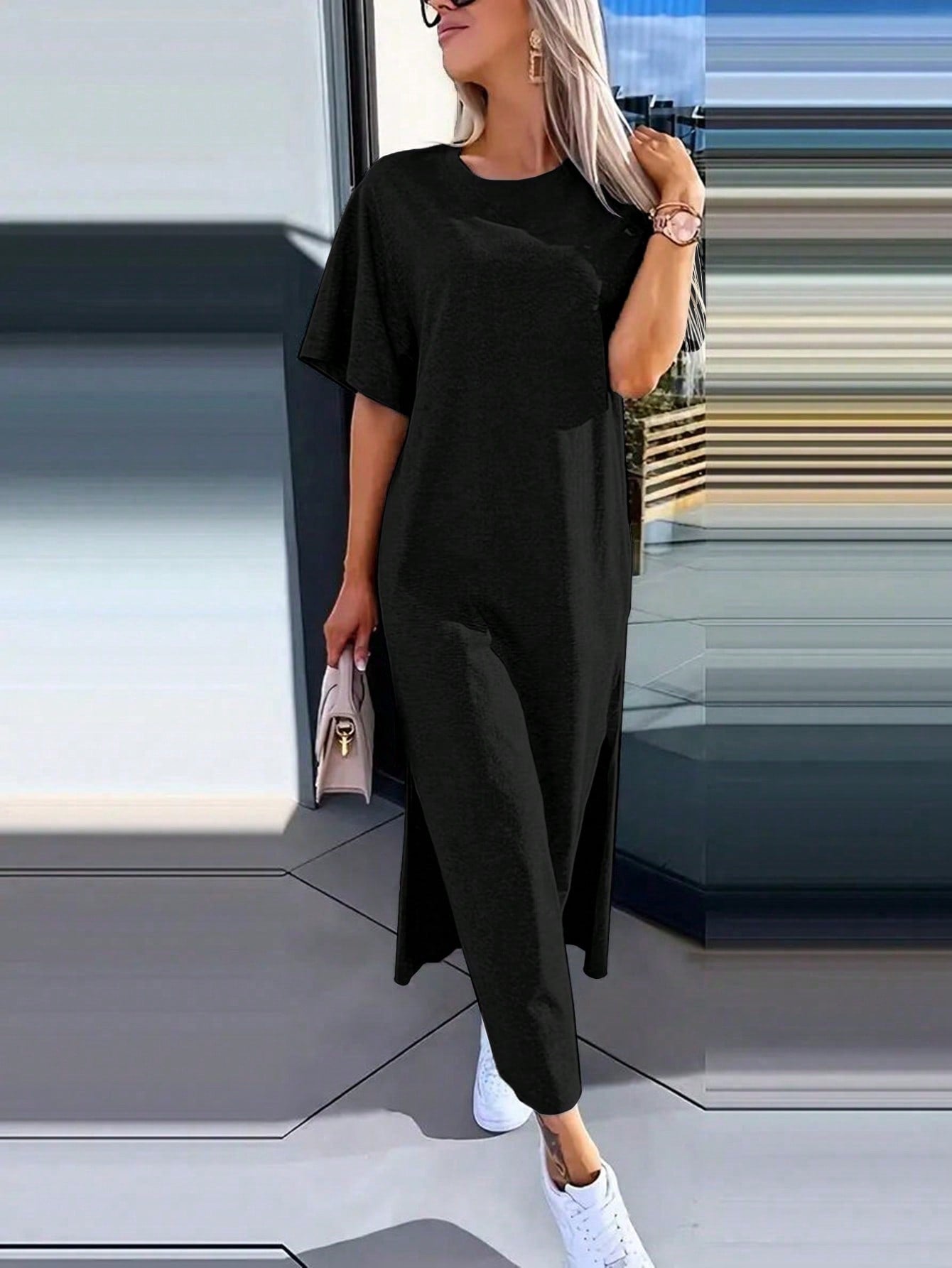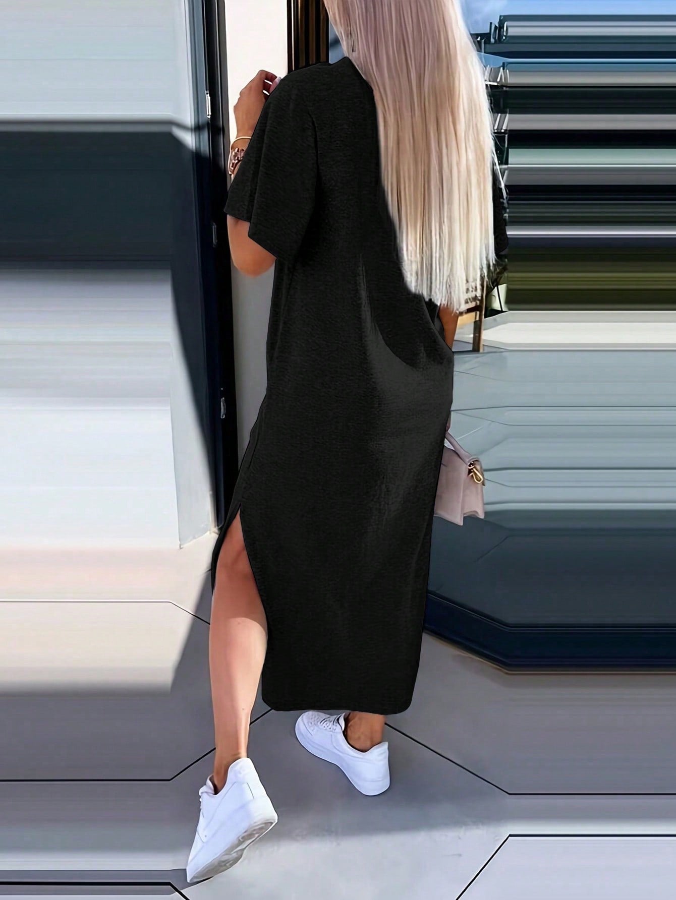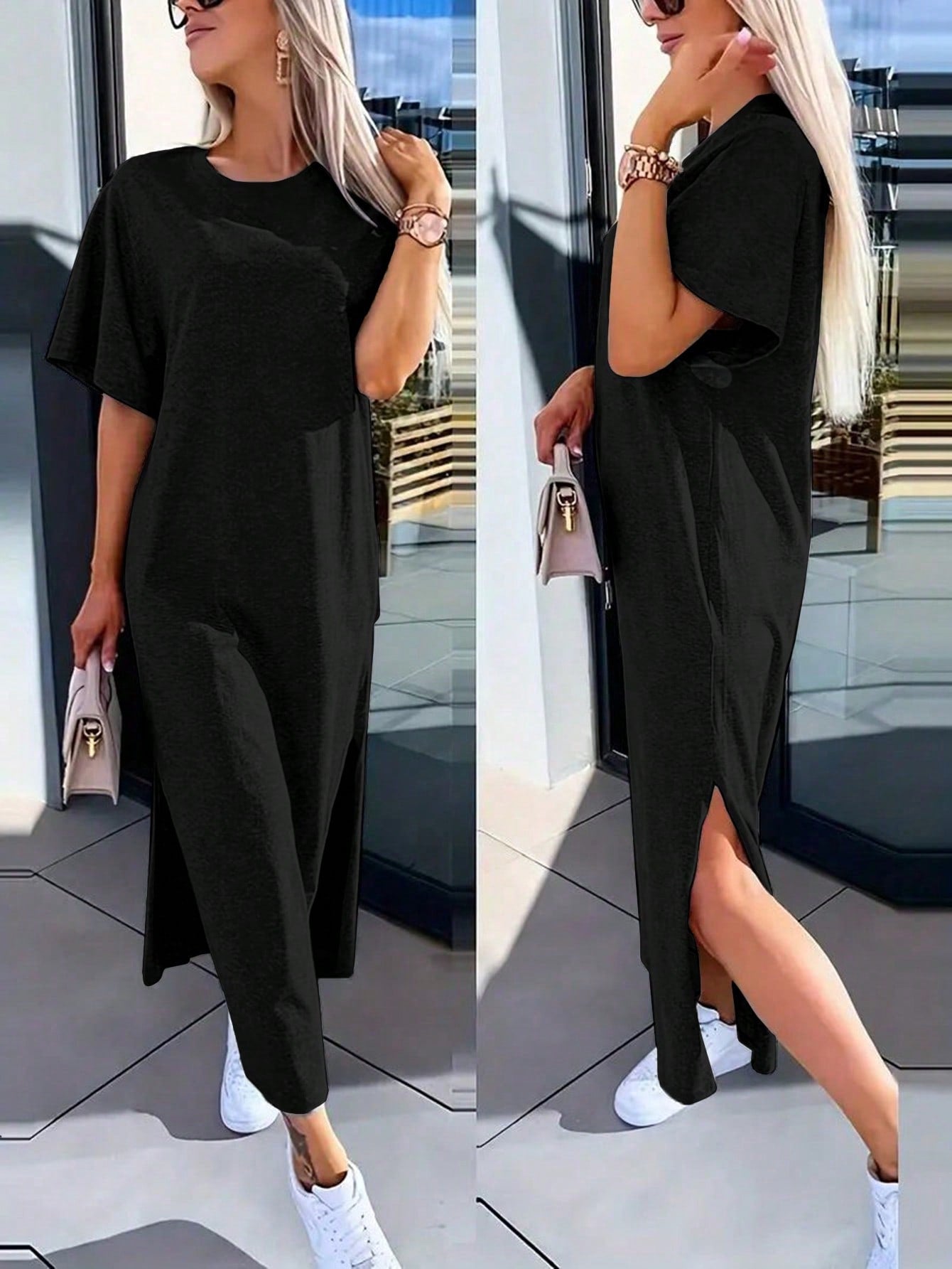 INAWLY Solva Women's Solid Color Round Neck Short Sleeve Casual Minimalist Mini Dress