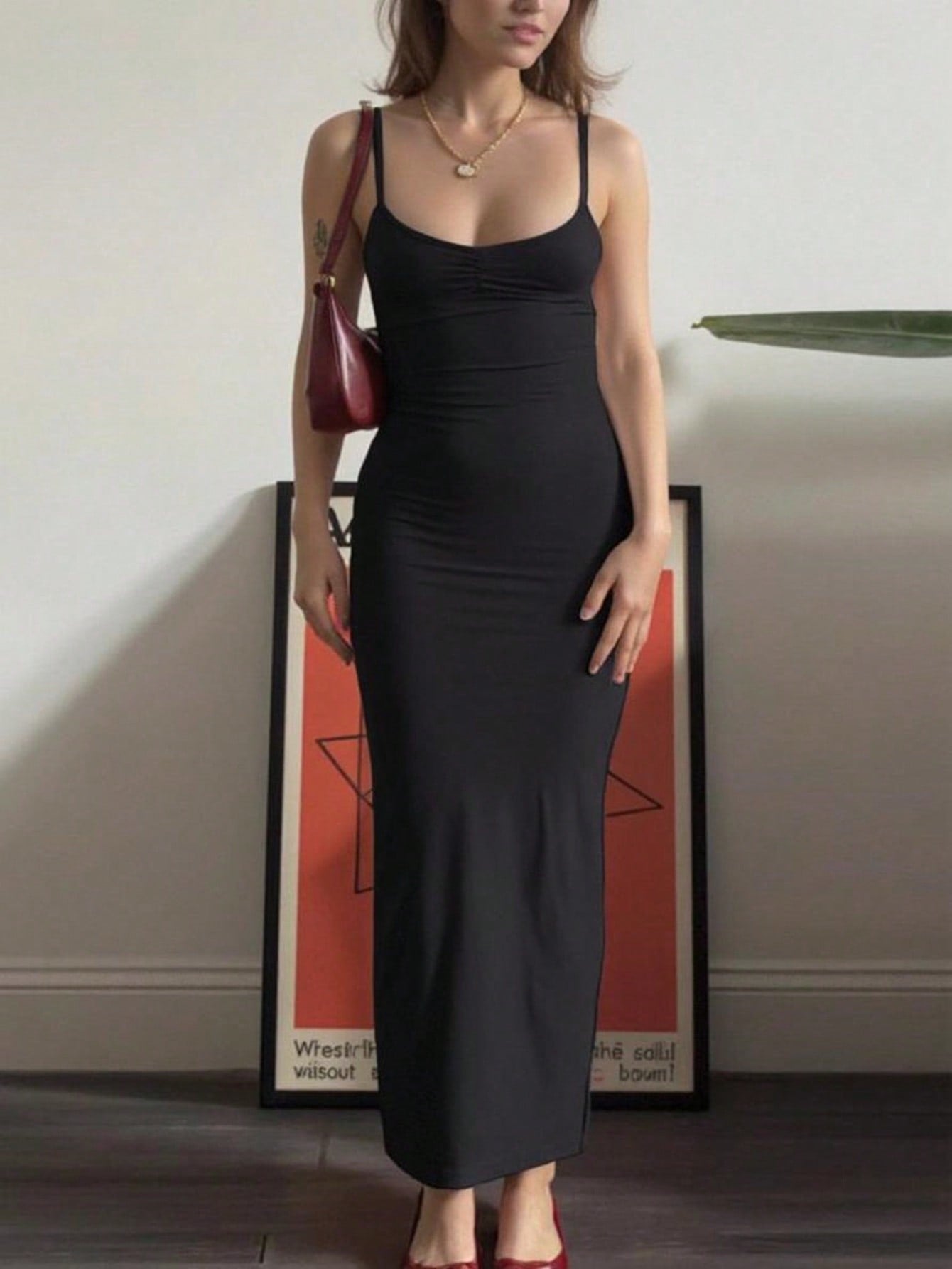 INAWLY Women Solid Color Bodycon Spaghetti Strap Sleeveless Sexy Camisole Dress