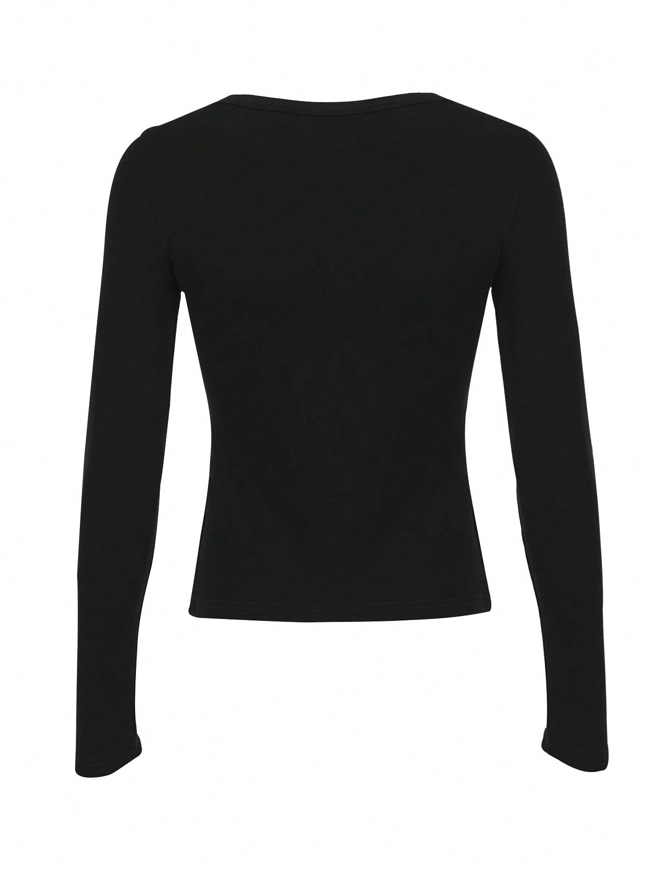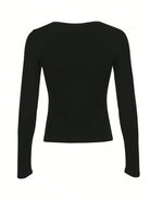 INAWLY Women Spring Autumn Casual Solid Color Black Long Sleeve T-Shirt Fall Cloth For Women