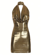 INAWLY Women's Fashion Sexy Metallic Halter Backless Mini Bodycon Dress
