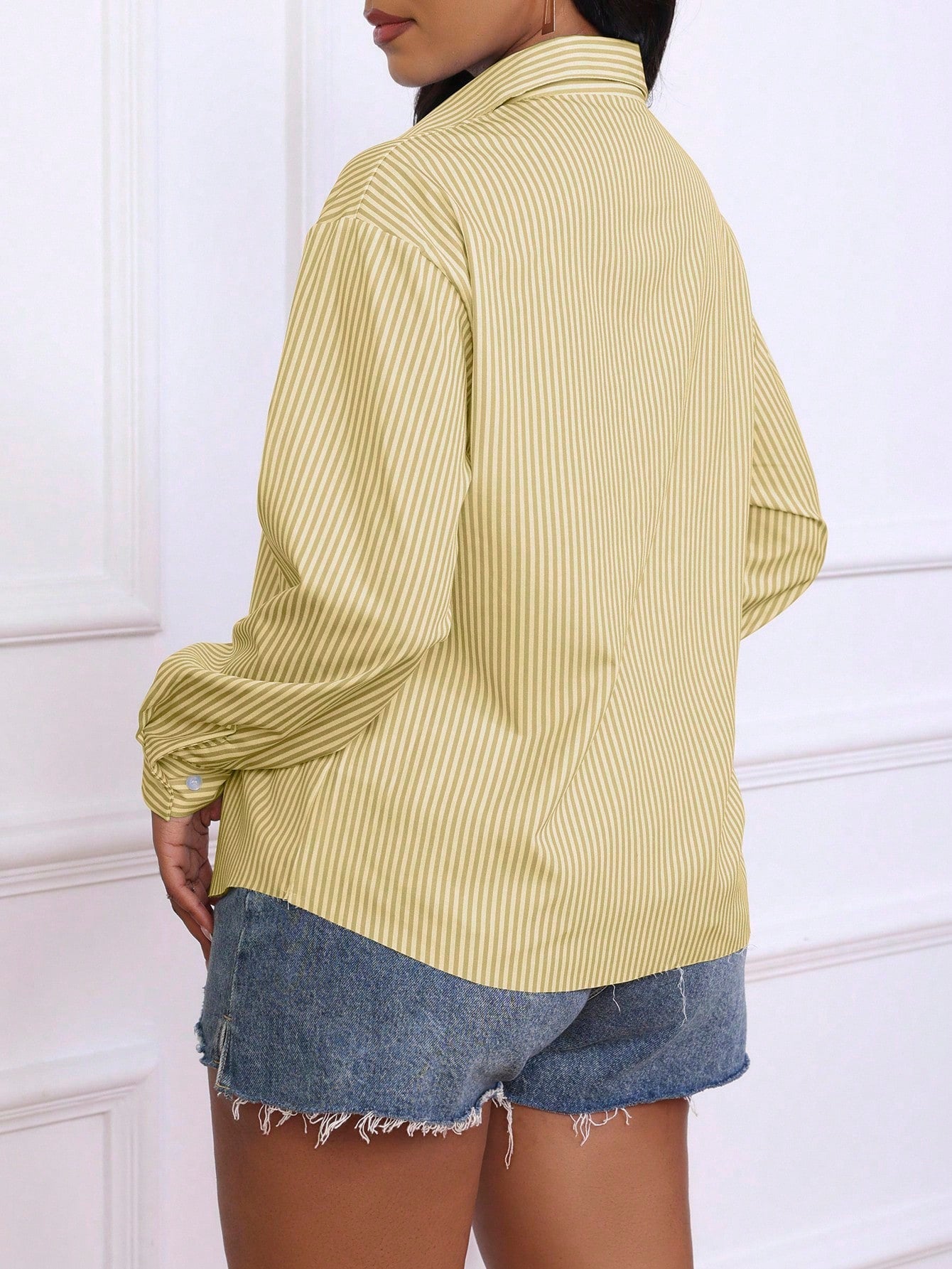 INAWLY Women's Oversized Loose Striped Long Sleeve Casual Shirt, Spring And Summer,Long Sleeve Tops