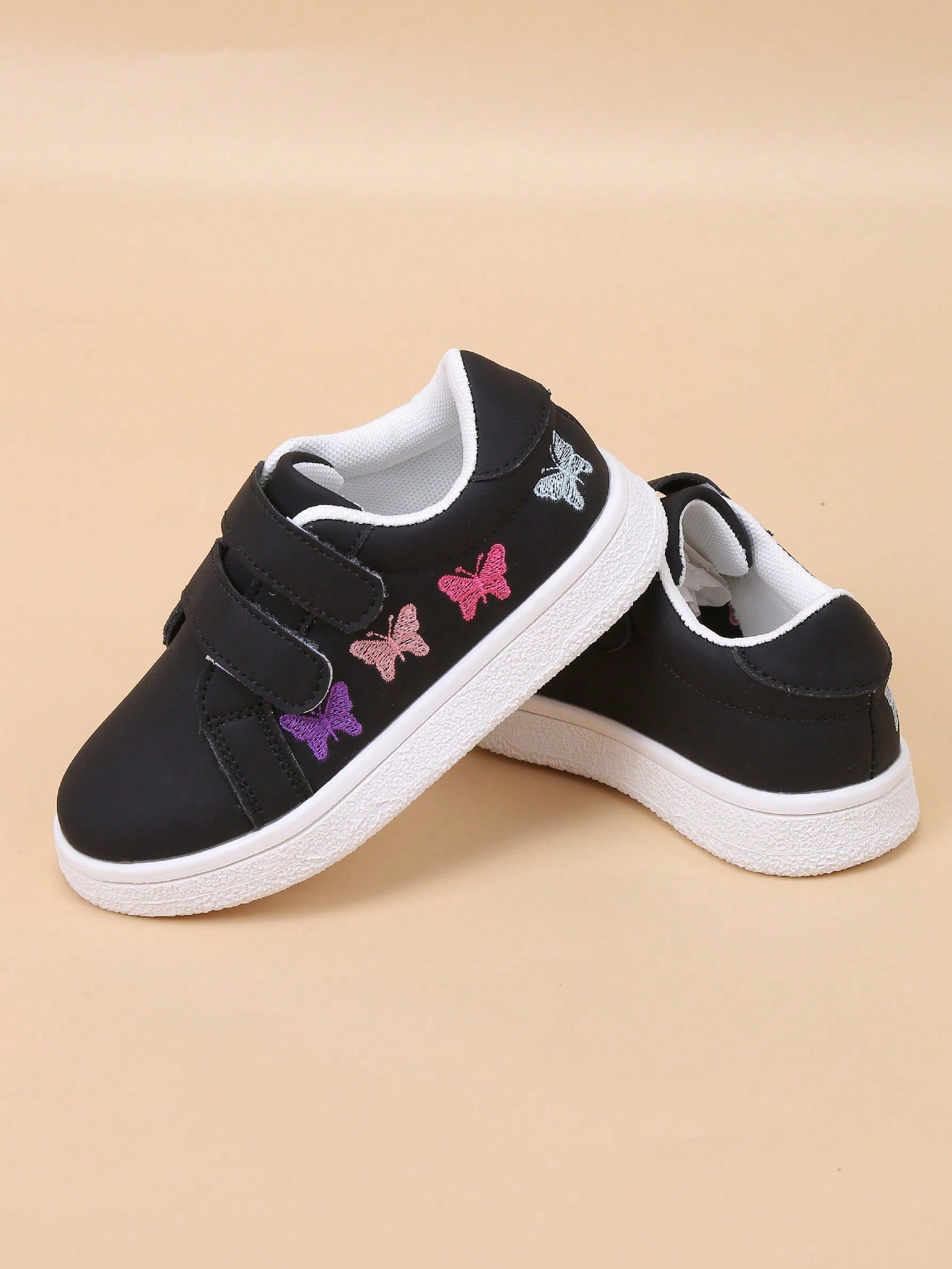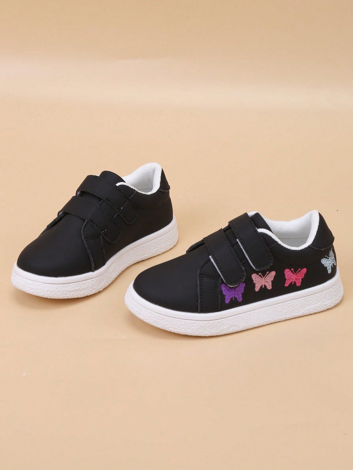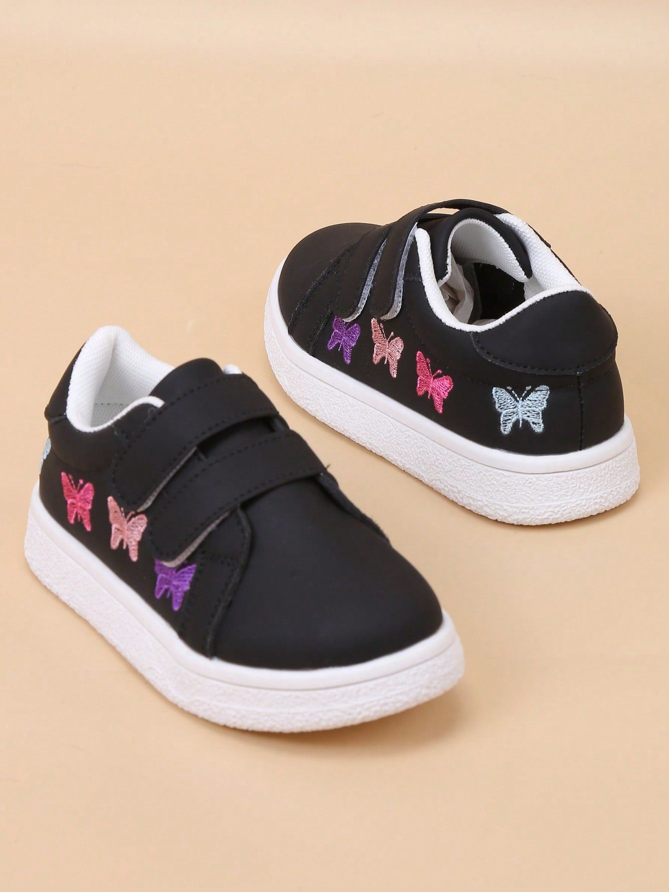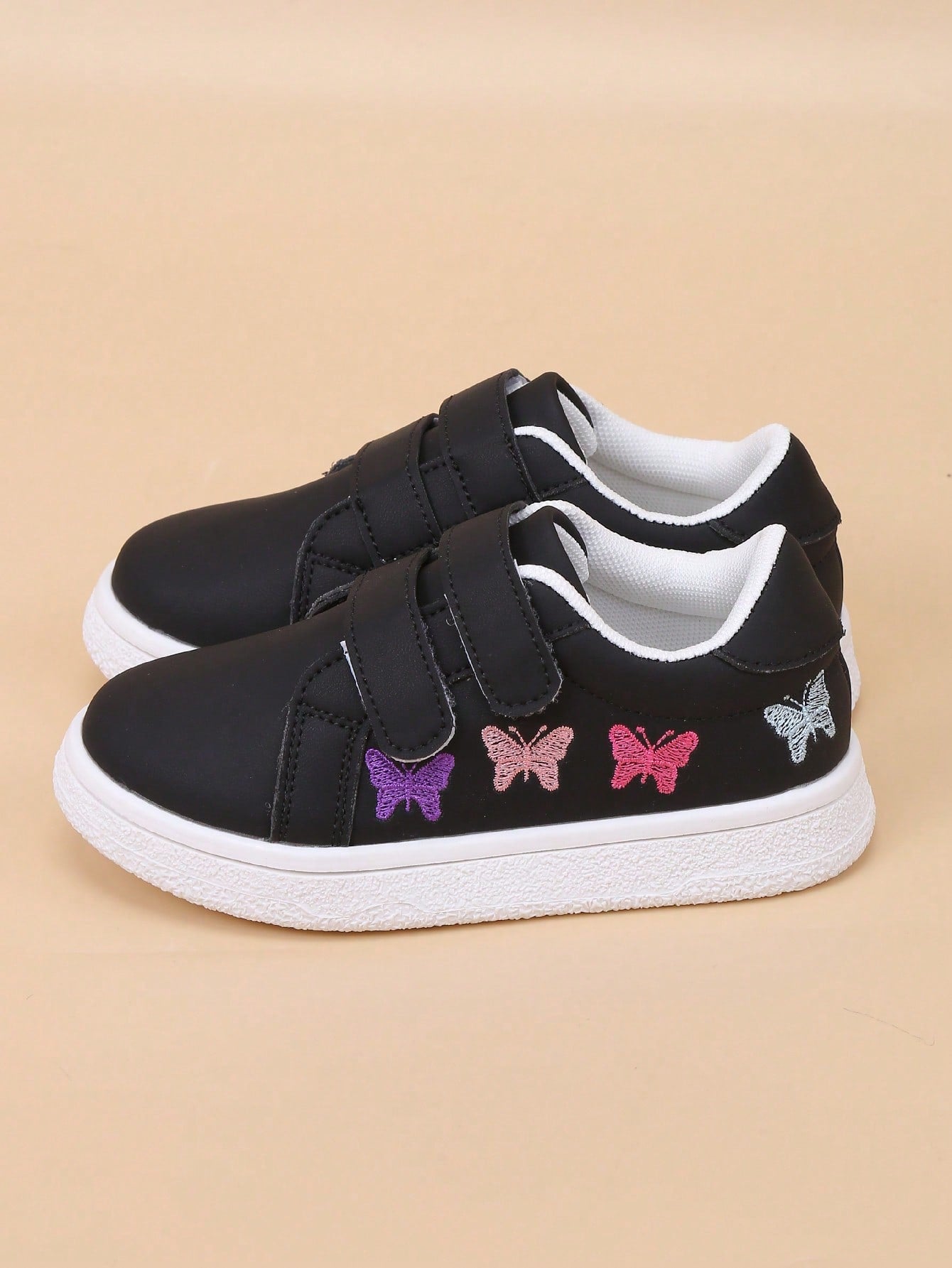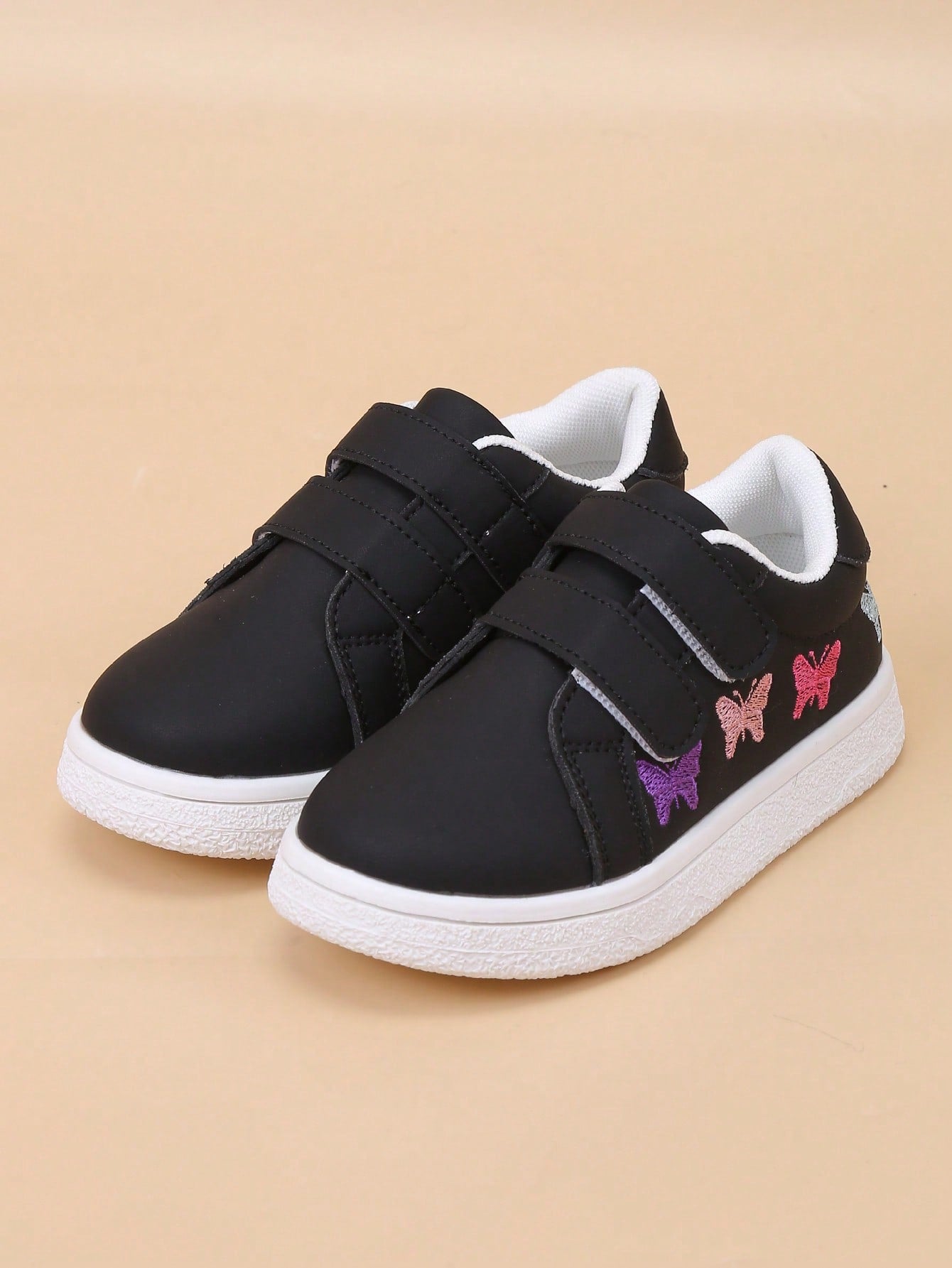 kids Infant/Toddler Minimalist White Embroidered Colorful Butterfly Soft Bottom Hook And Loop Sport Shoes
