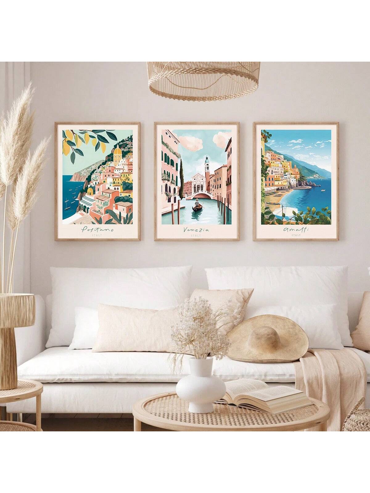 Italy Blue Coast Travel Scenic Canvas Wall Art Print Set Of Three