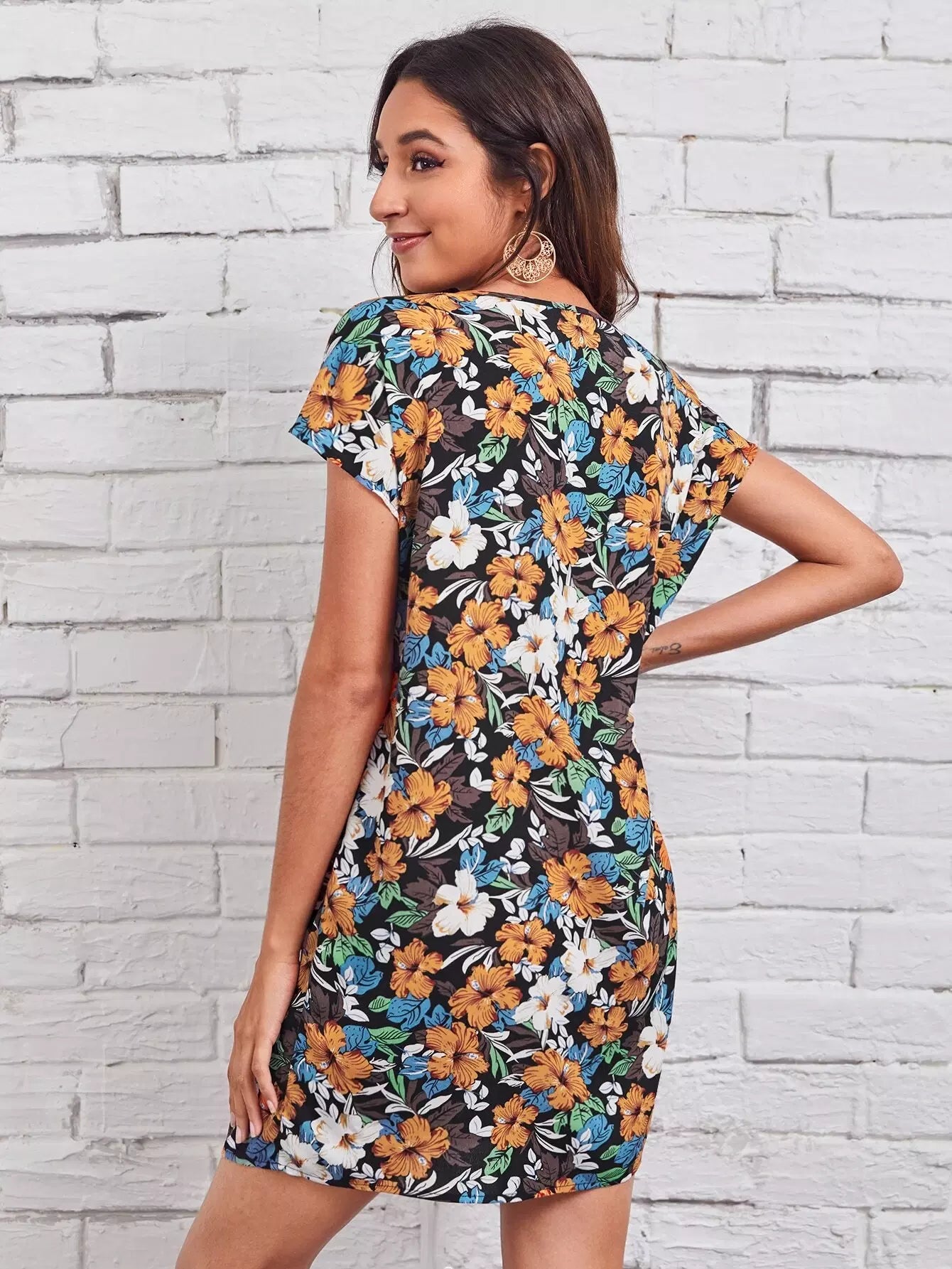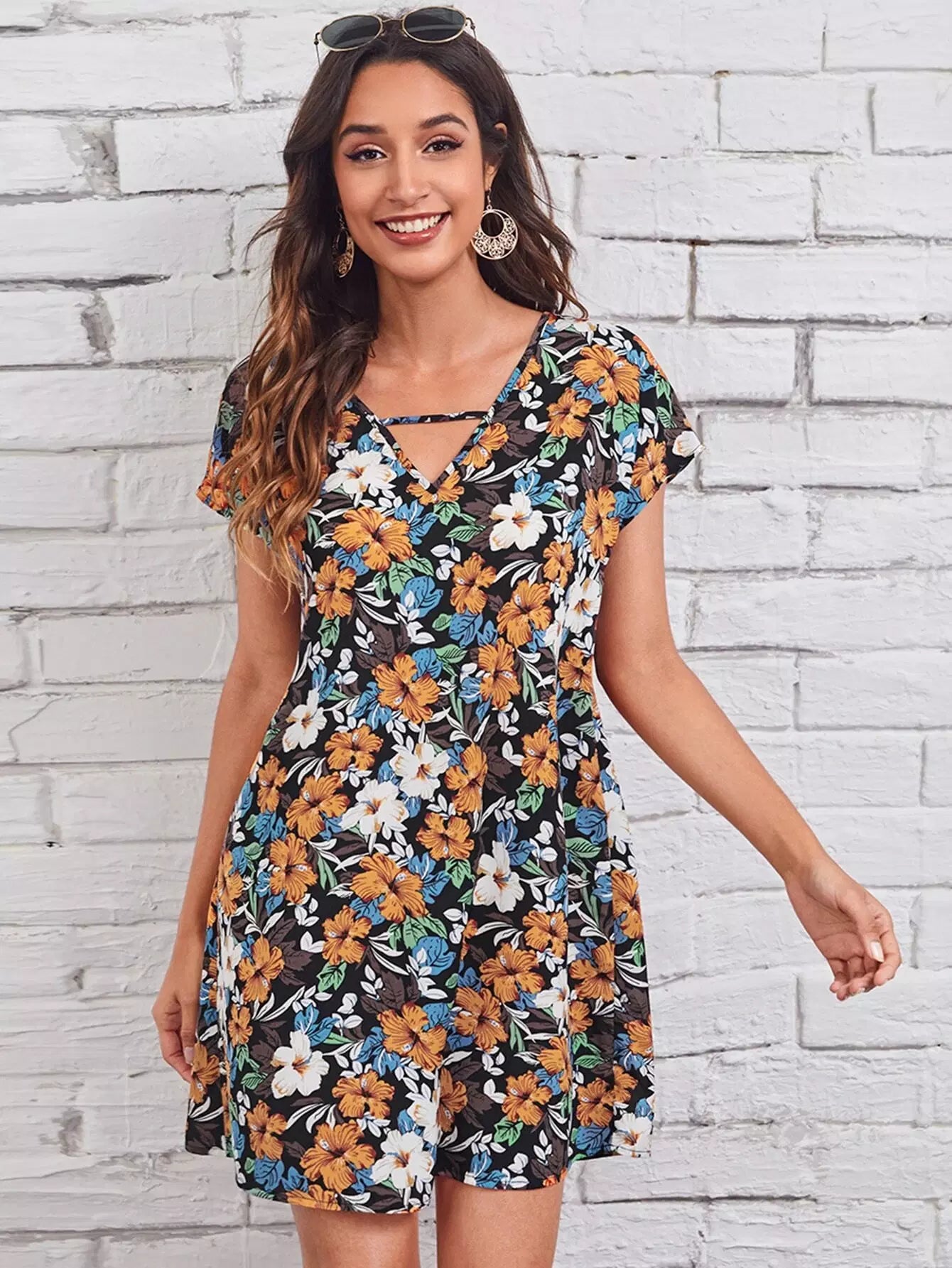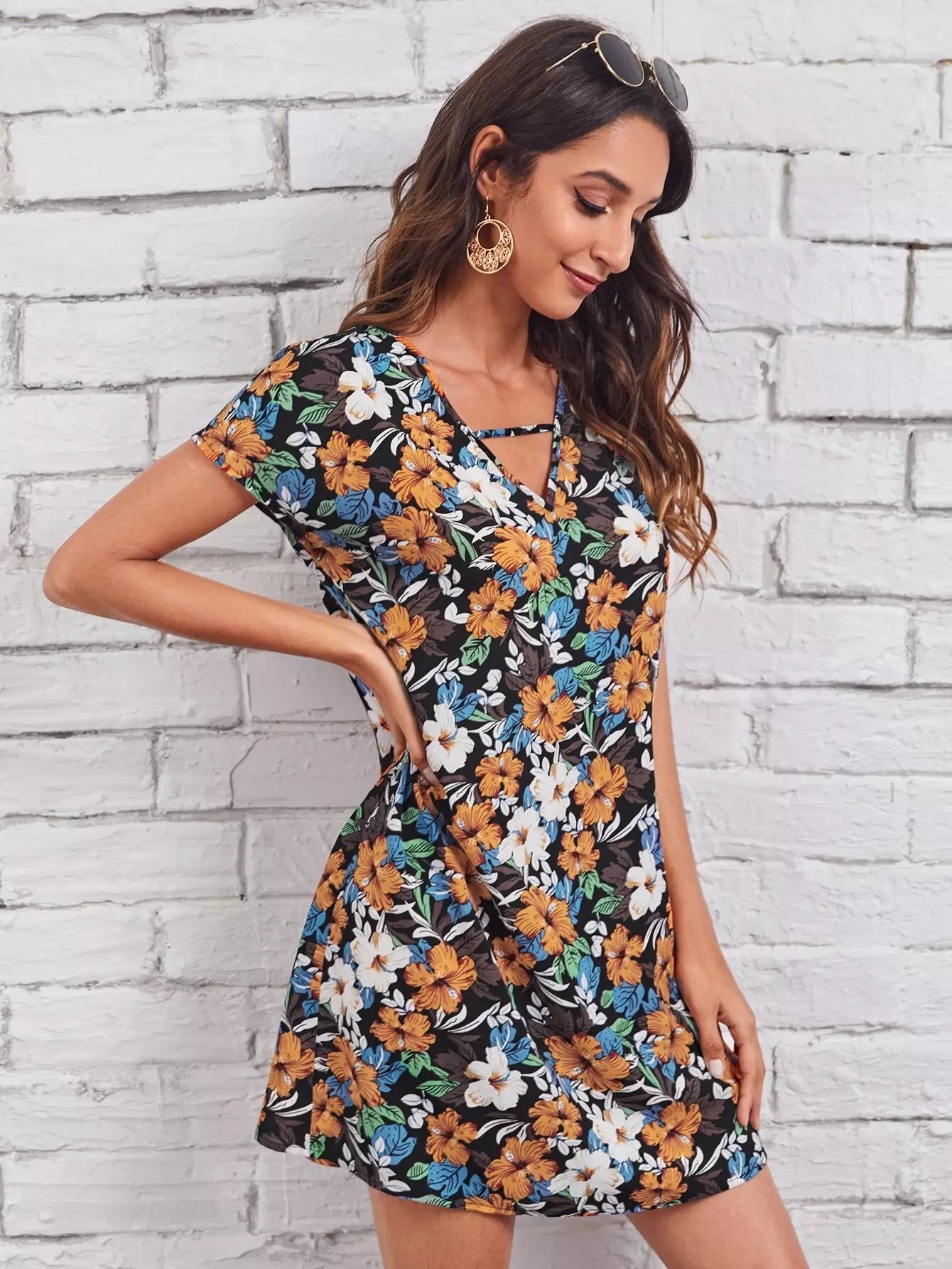 Keyhole Neck Floral Dress