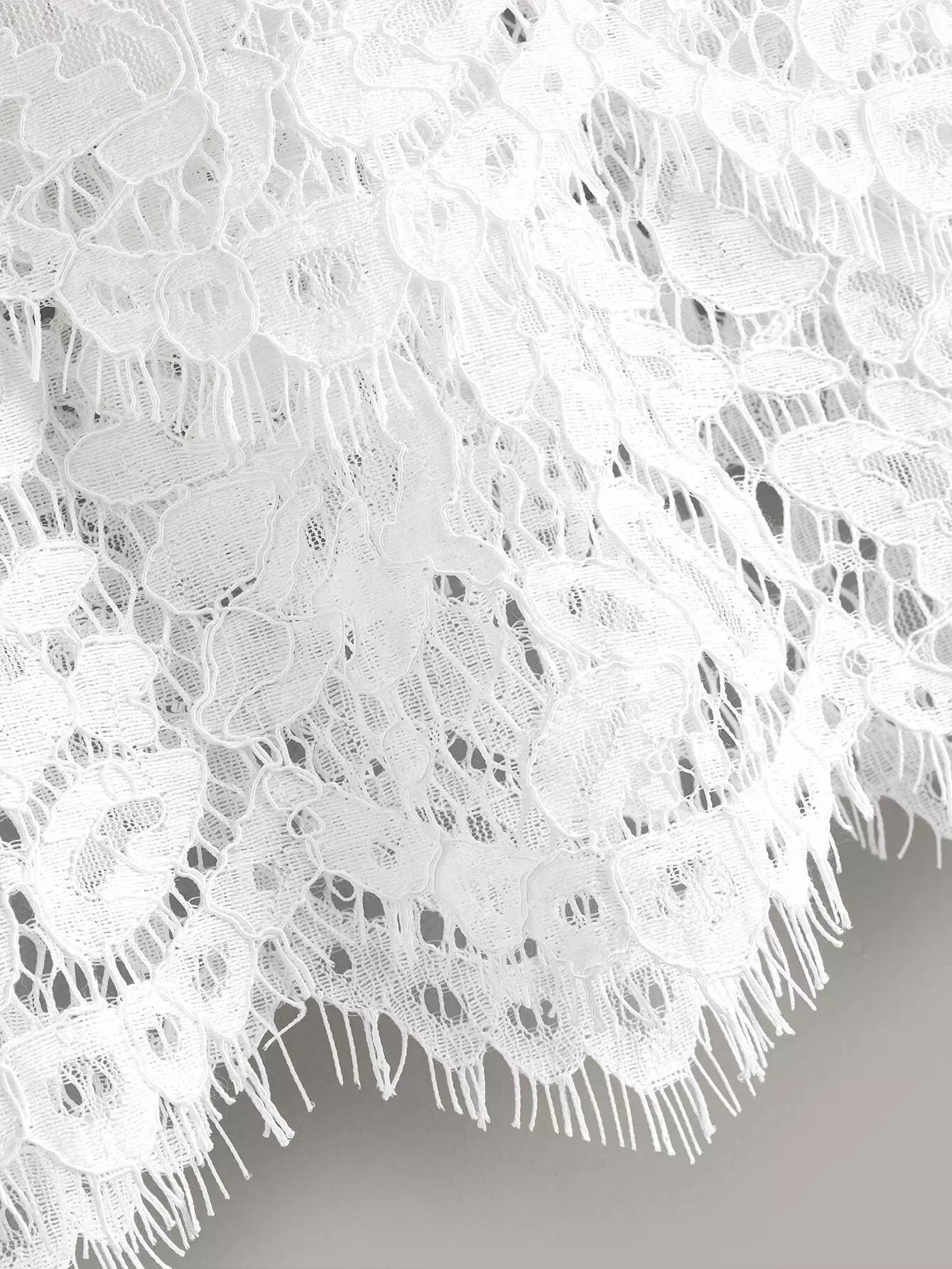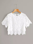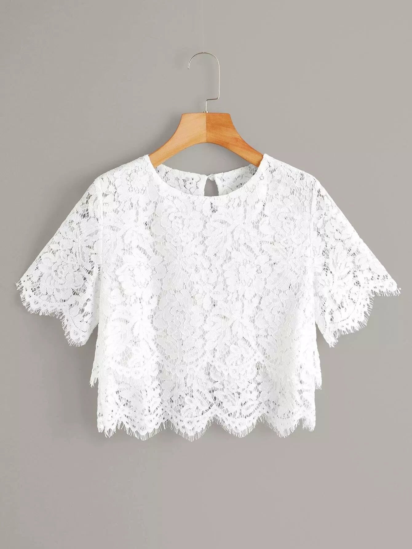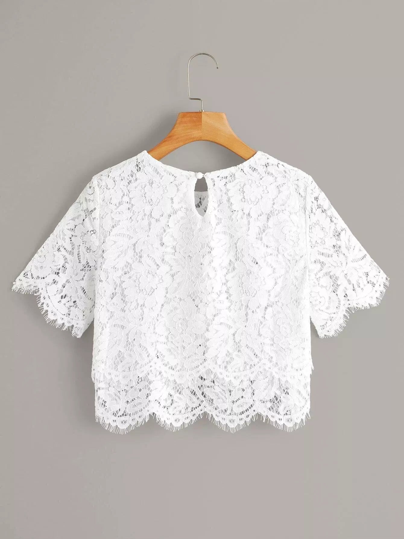Women - Lace Scallop Hem Sheer Crop Blouse