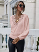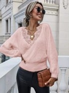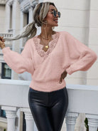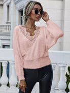 Lace Trim Dolman Sleeve Fluffy Sweater