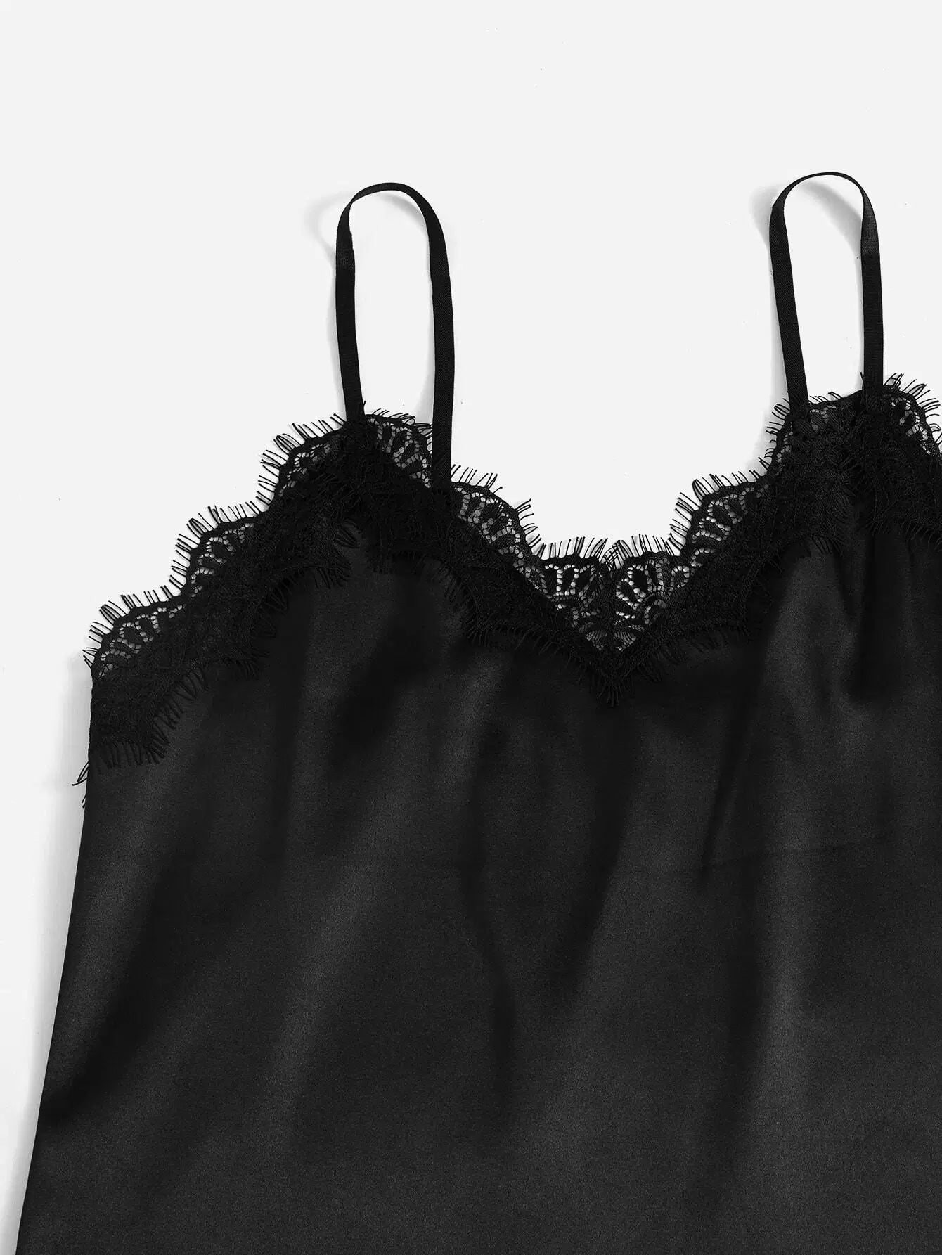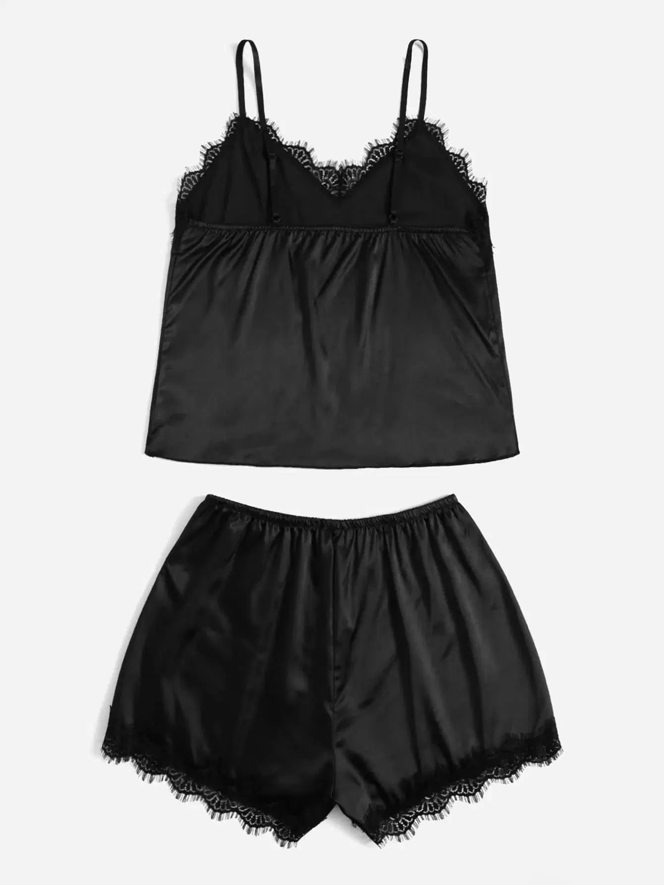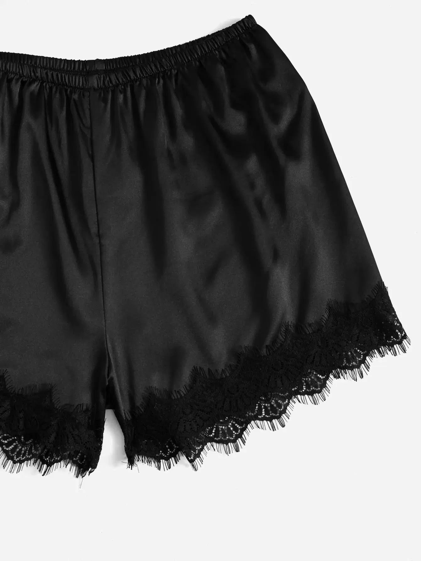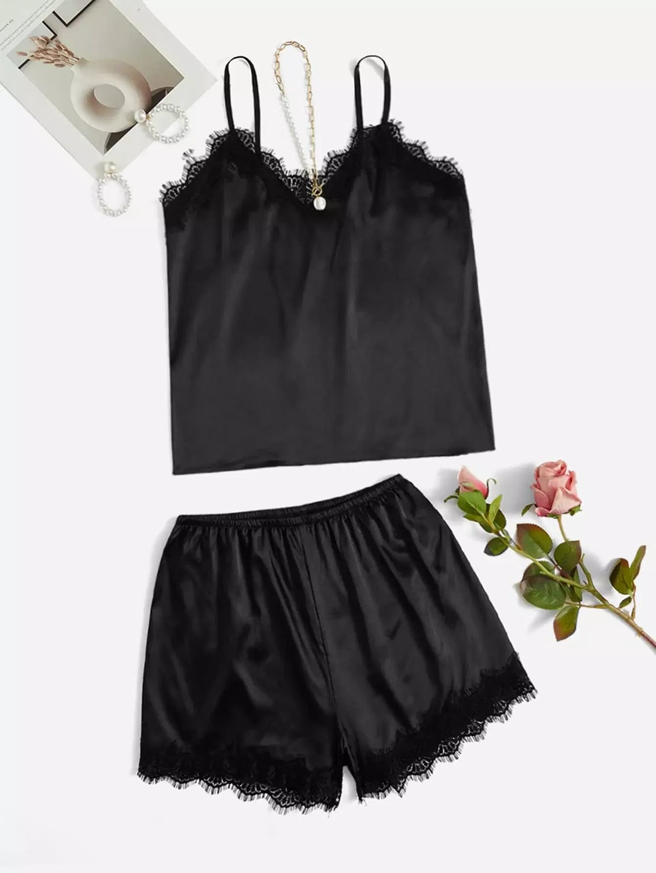 Lace Trim Satin Cami Top & Shorts PJ Set