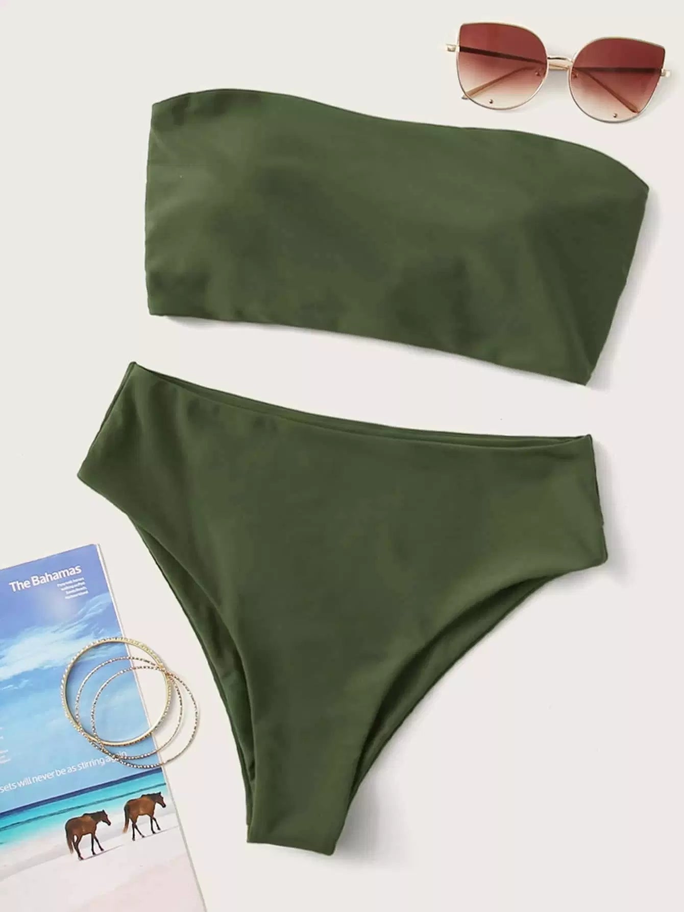 Lace-up Back Bandeau High Waisted Bikini Swimsuit