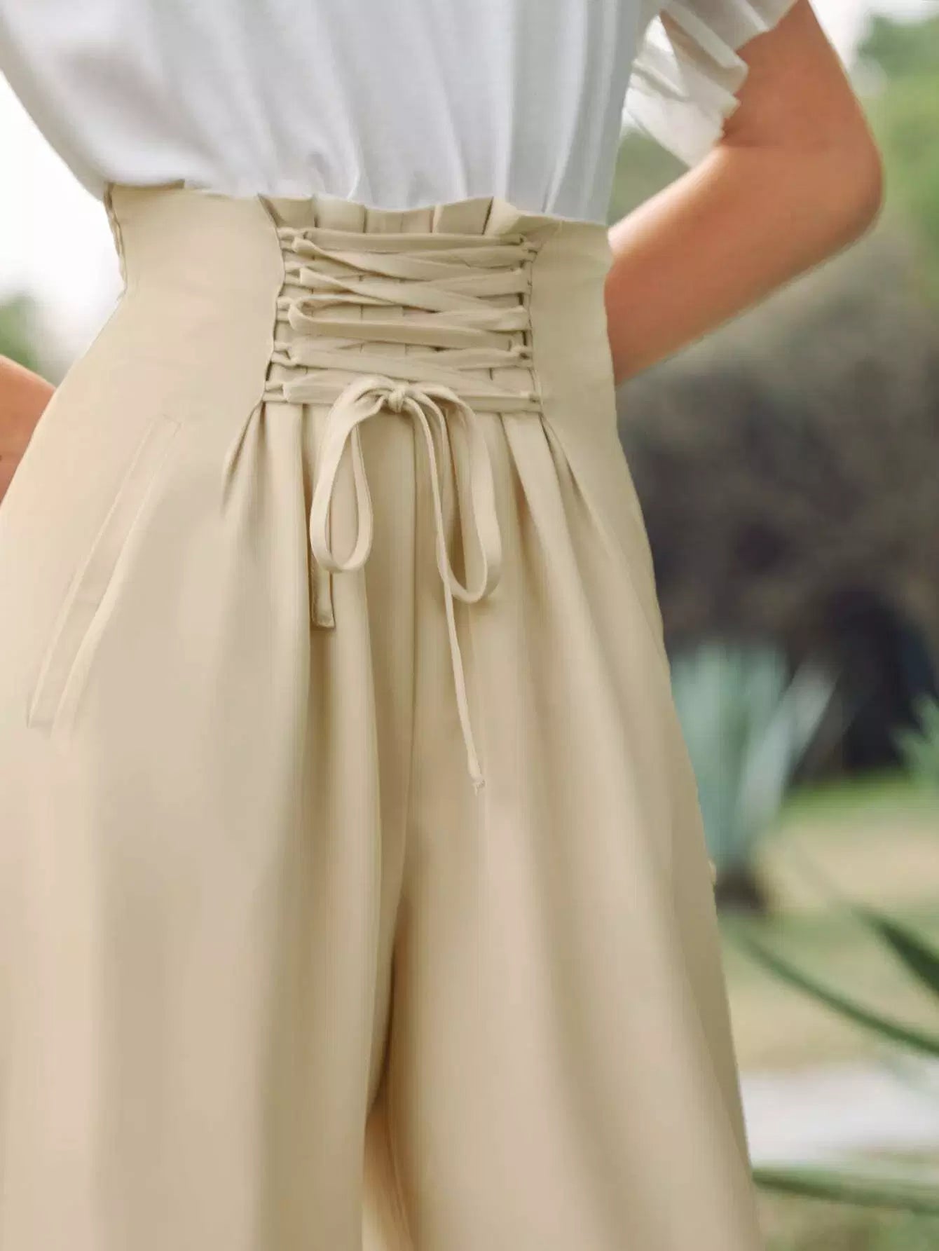 Lace Up Waist Solid Pants