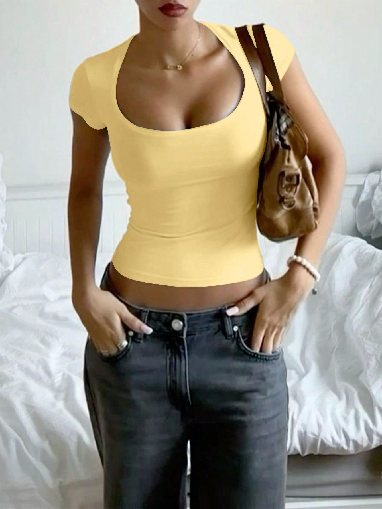 Ladies' Square Neck Short Sleeve T-Shirt - Short Summer Top