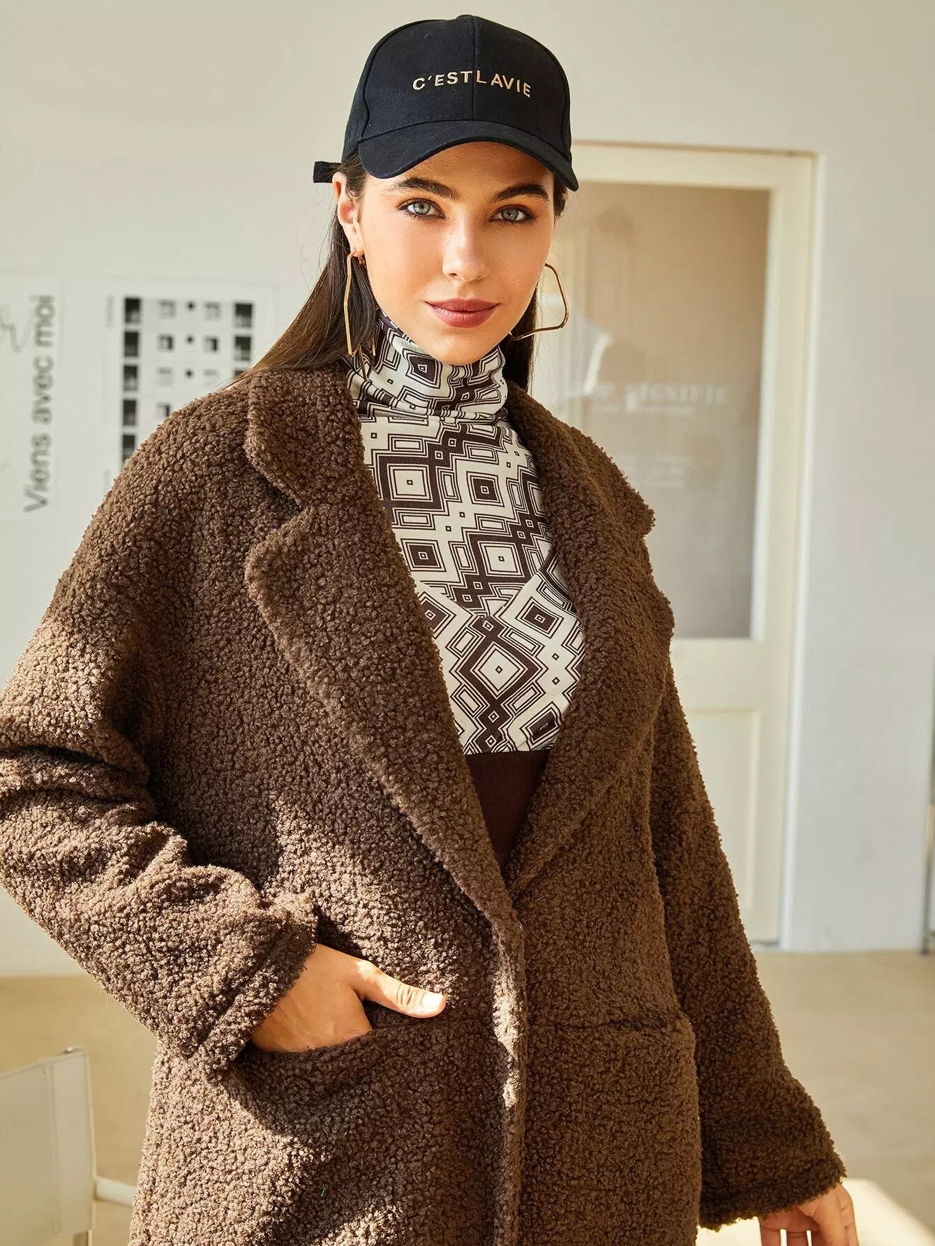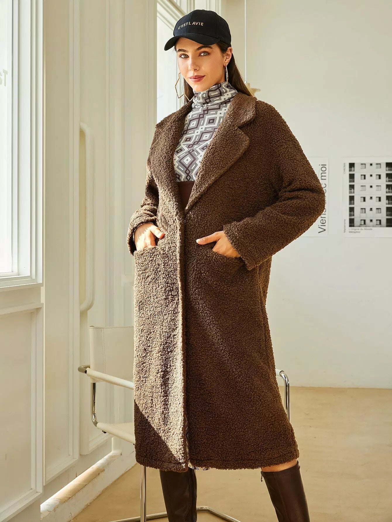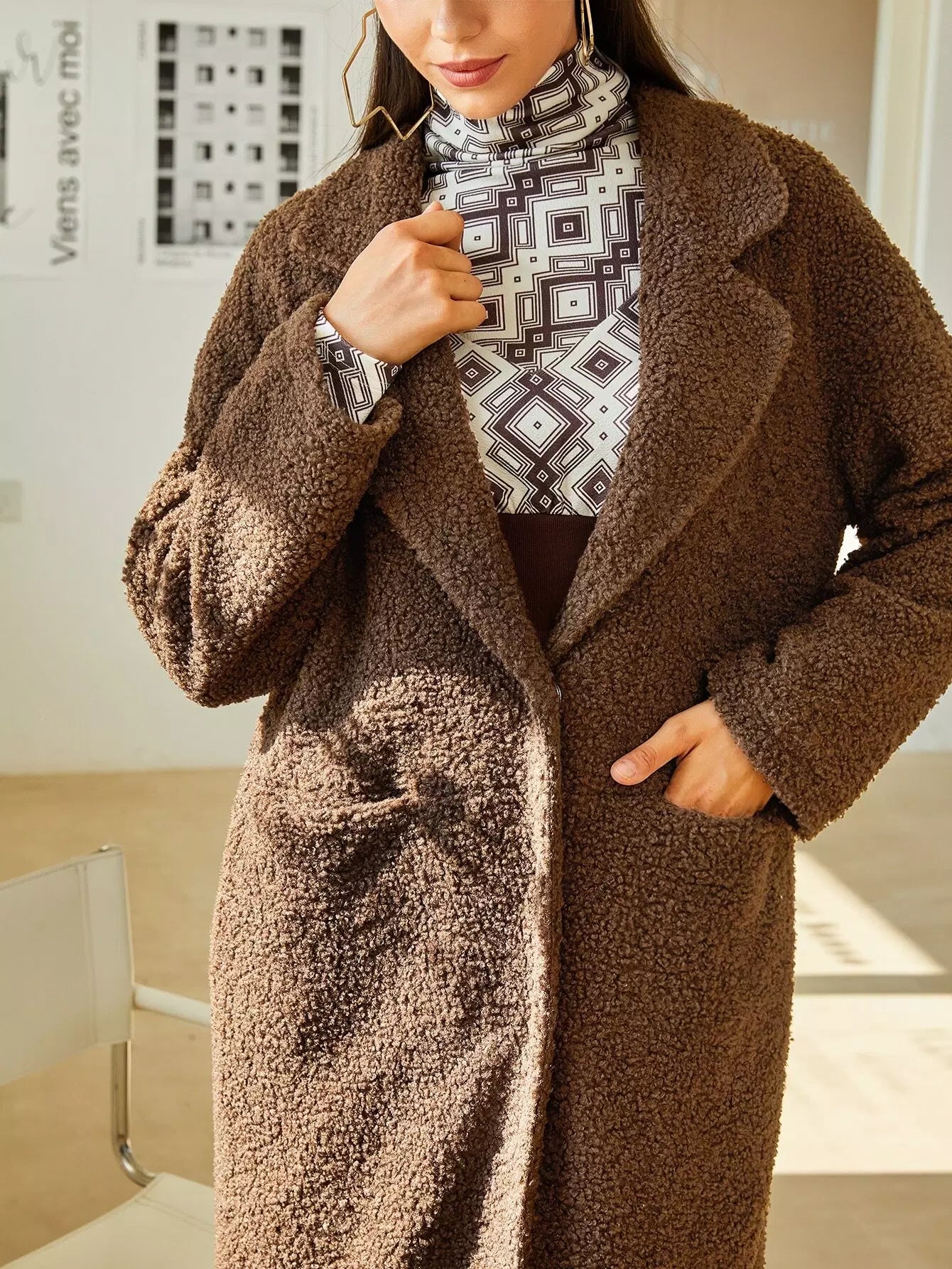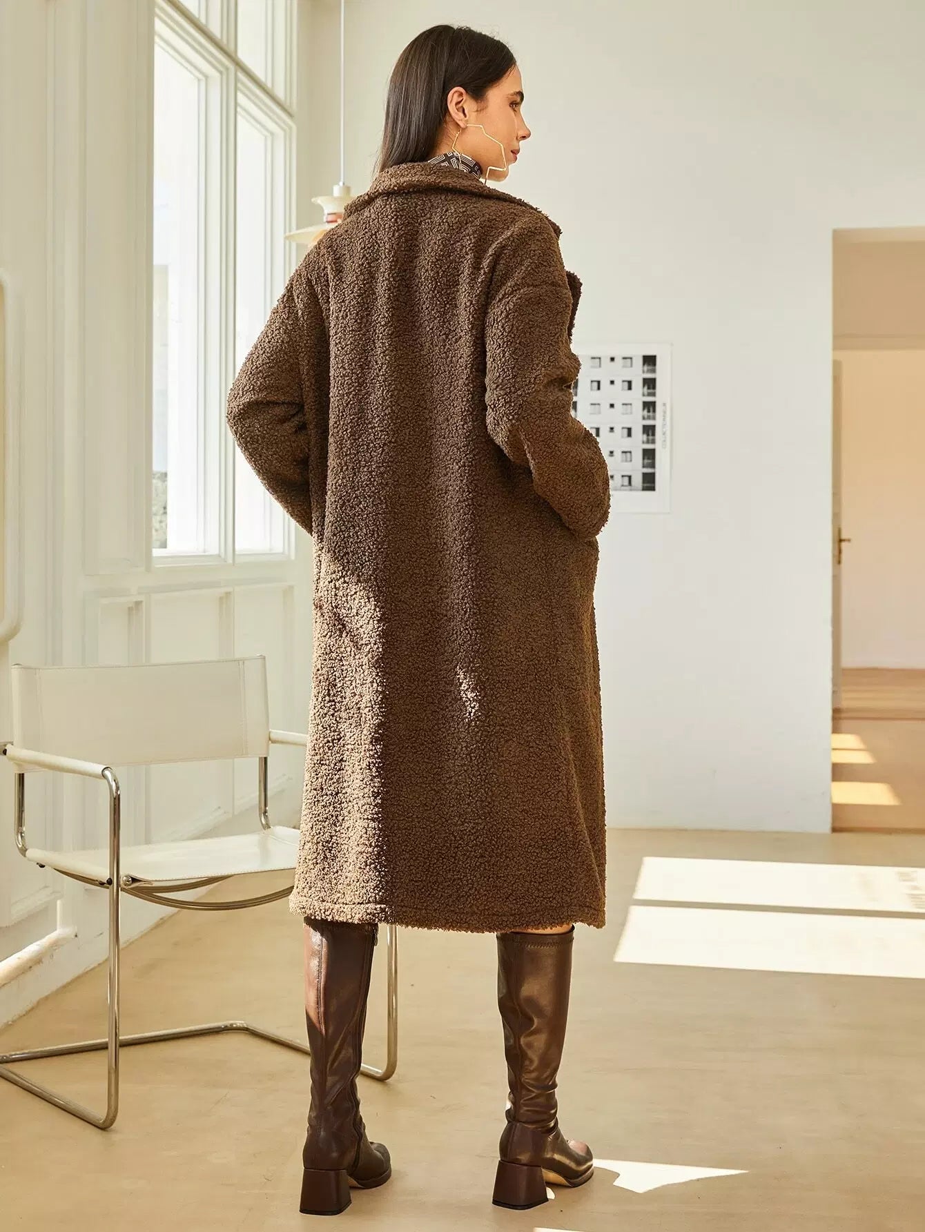 Lapel Neck Dual Pocket Teddy Coat