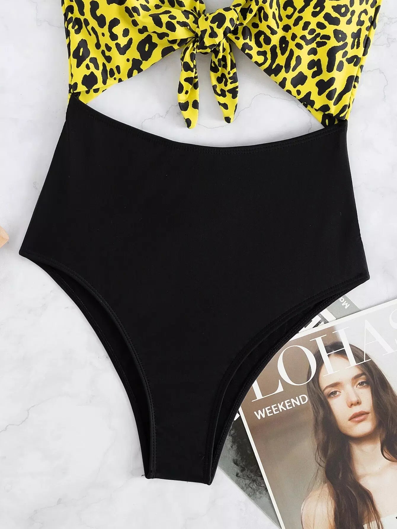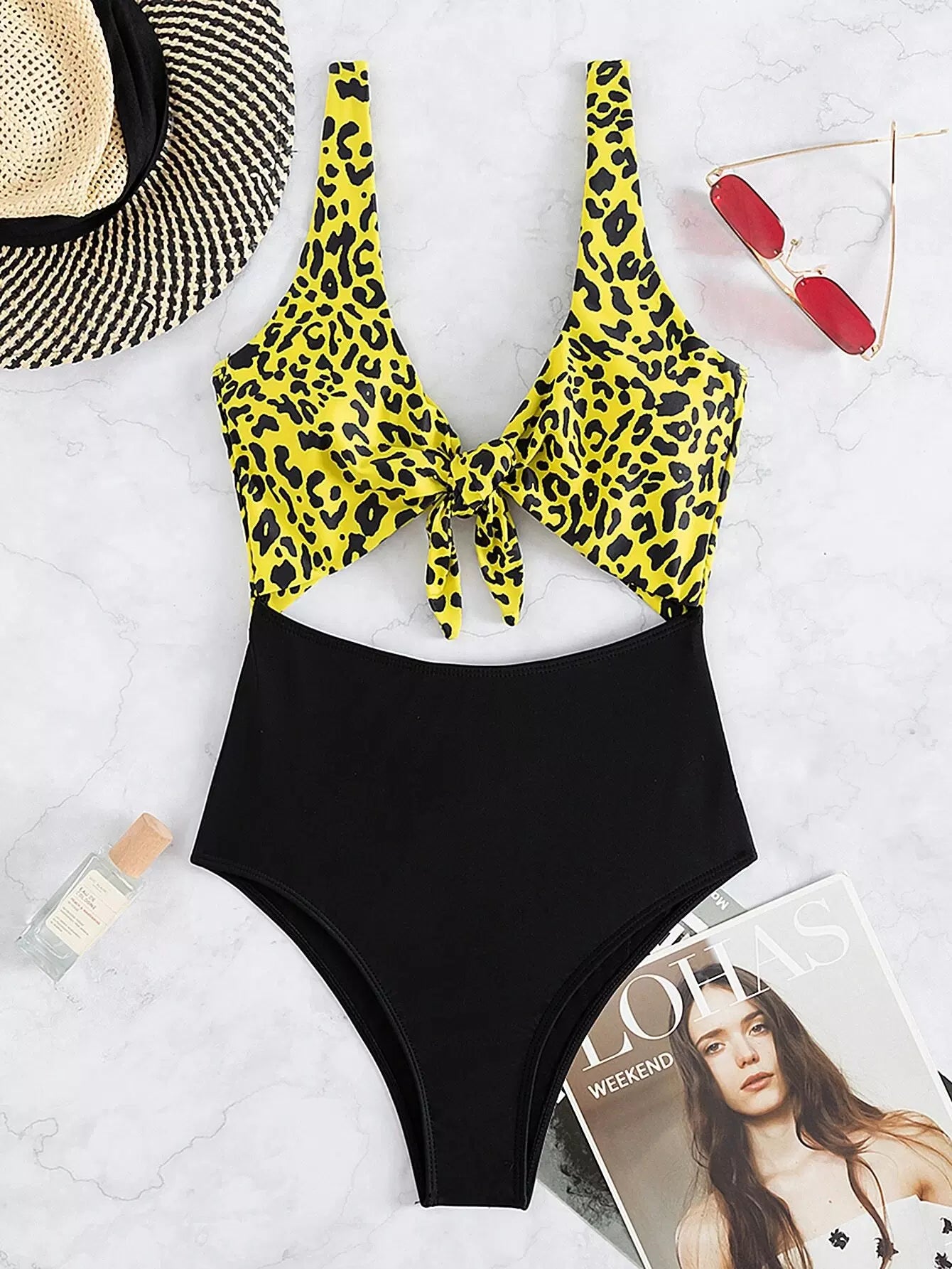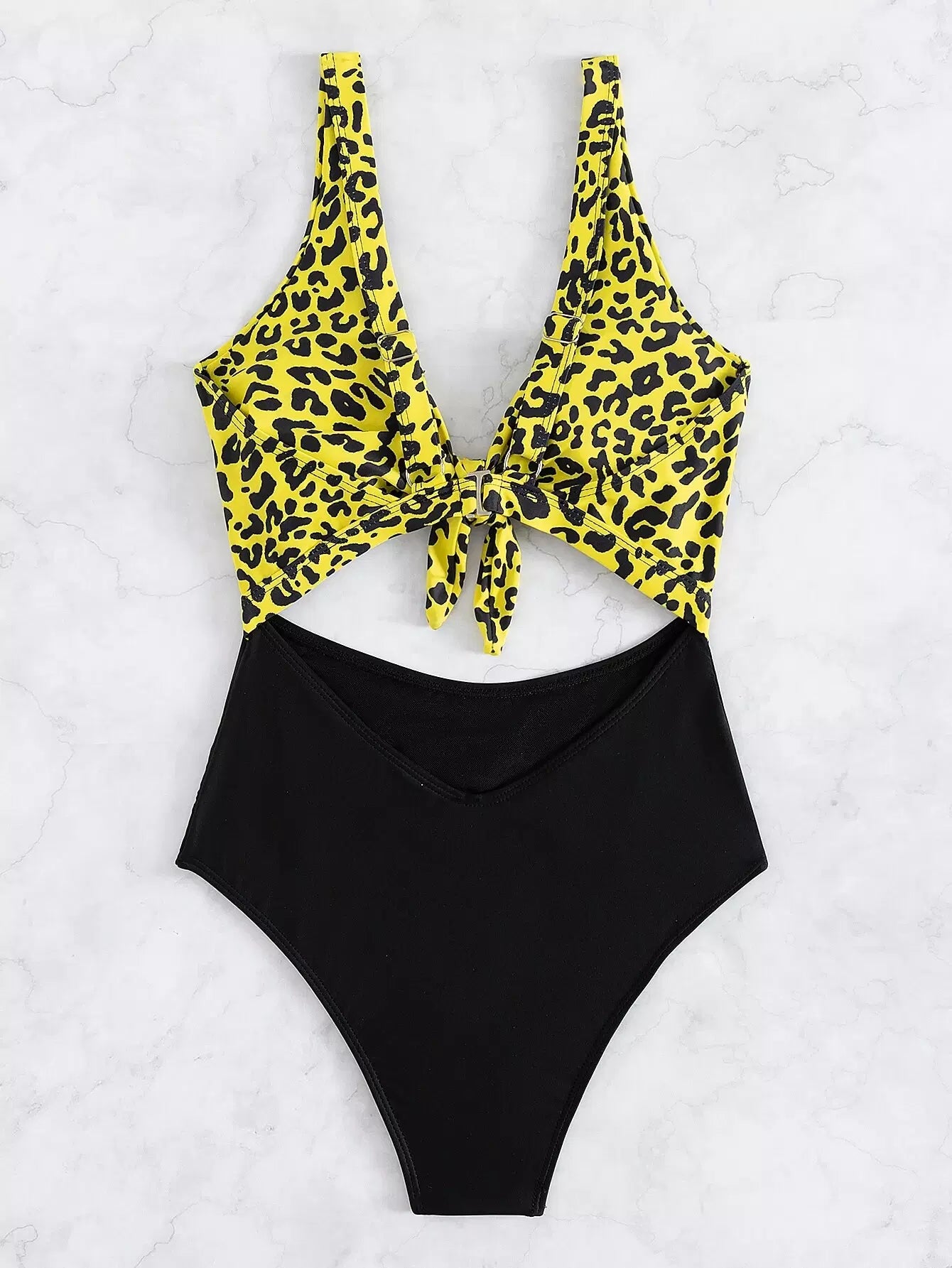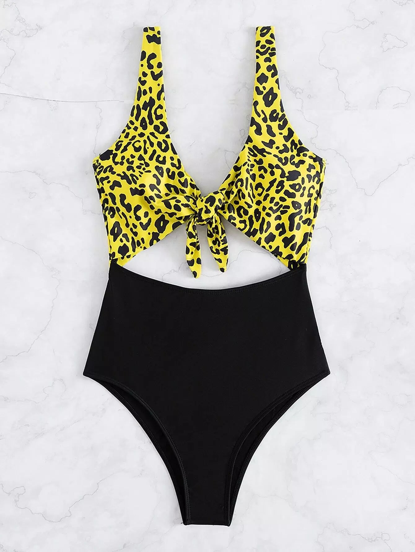 Leopard Cut-out Knot Front One Piece Swimsuit