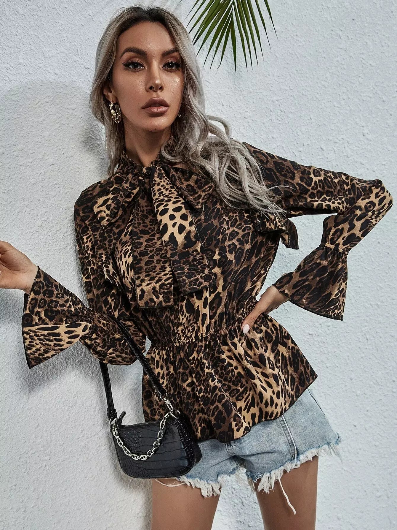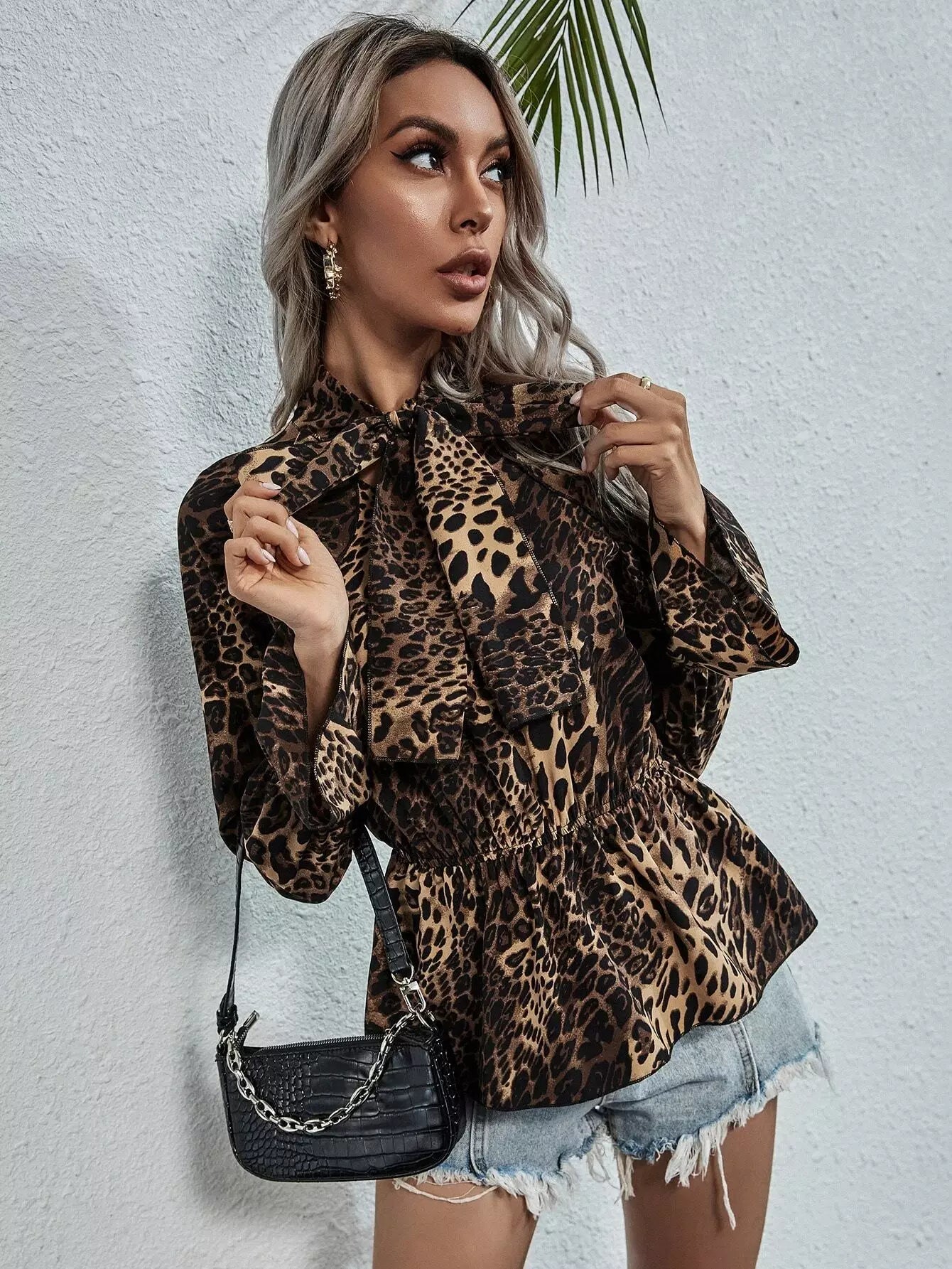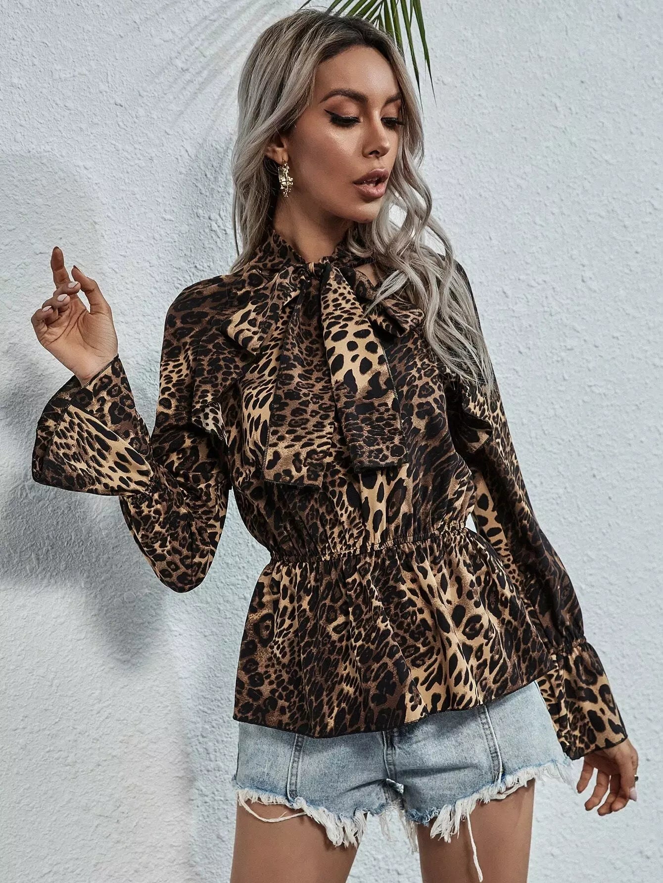 Leopard Tie Neck Smock Blouse