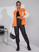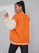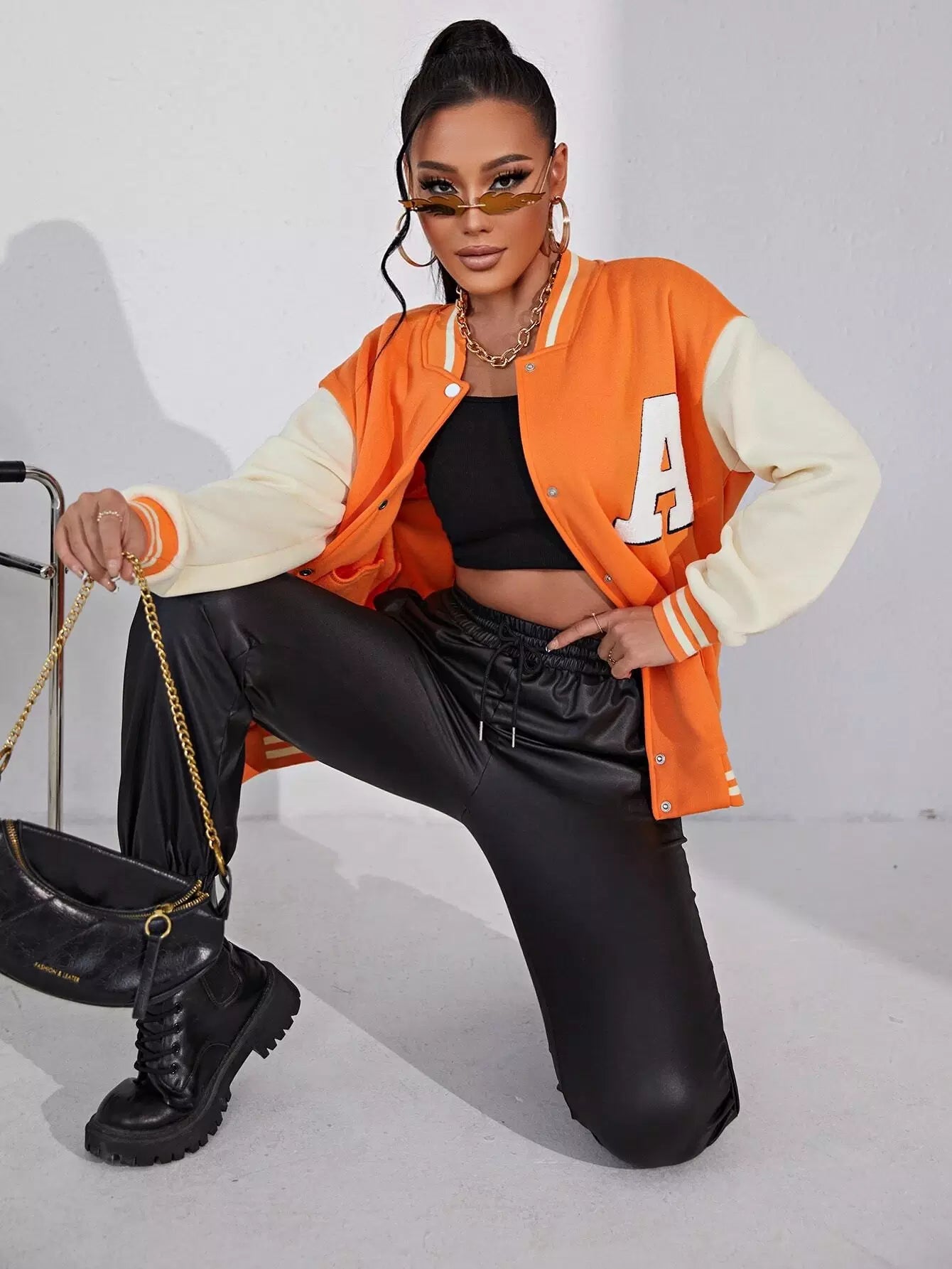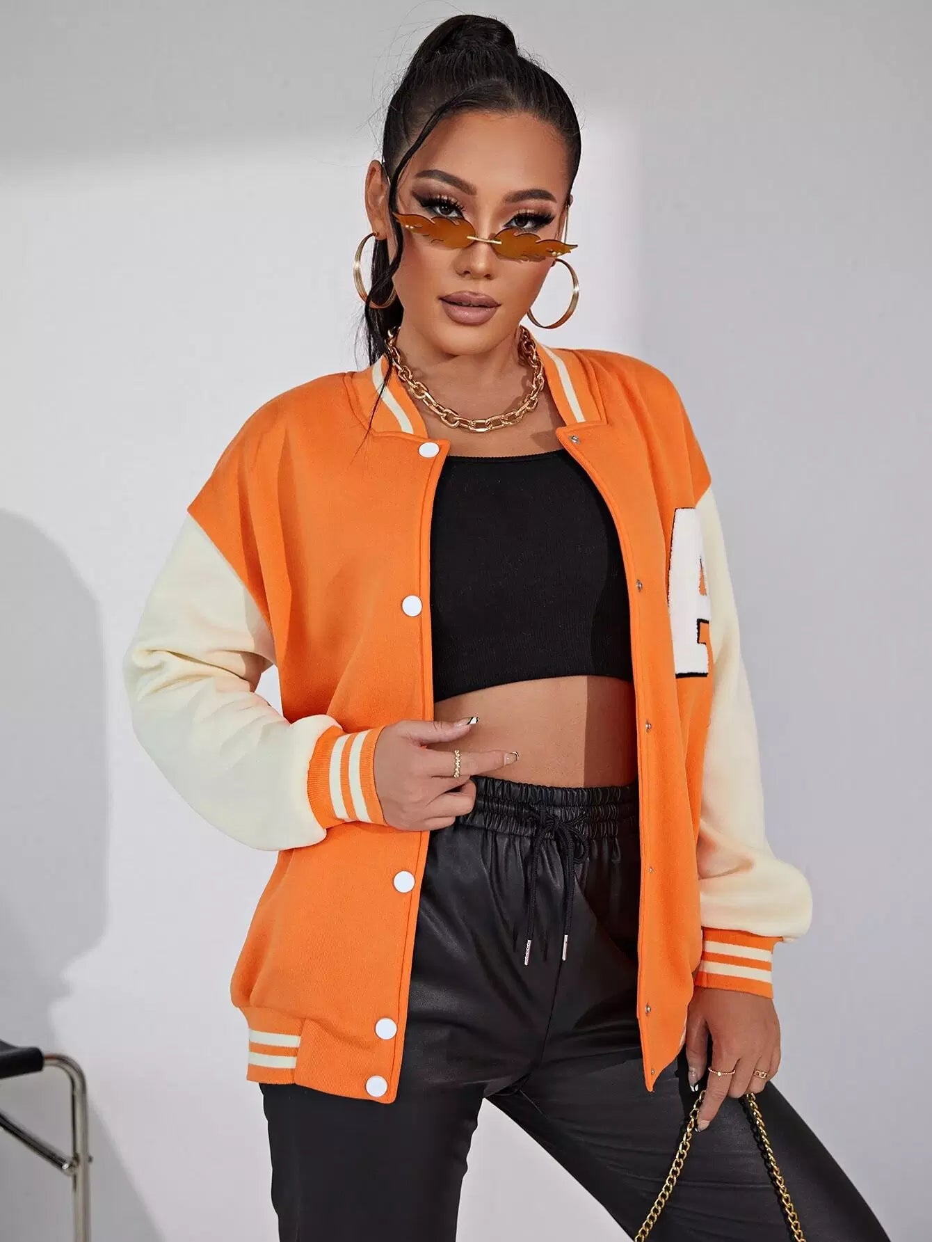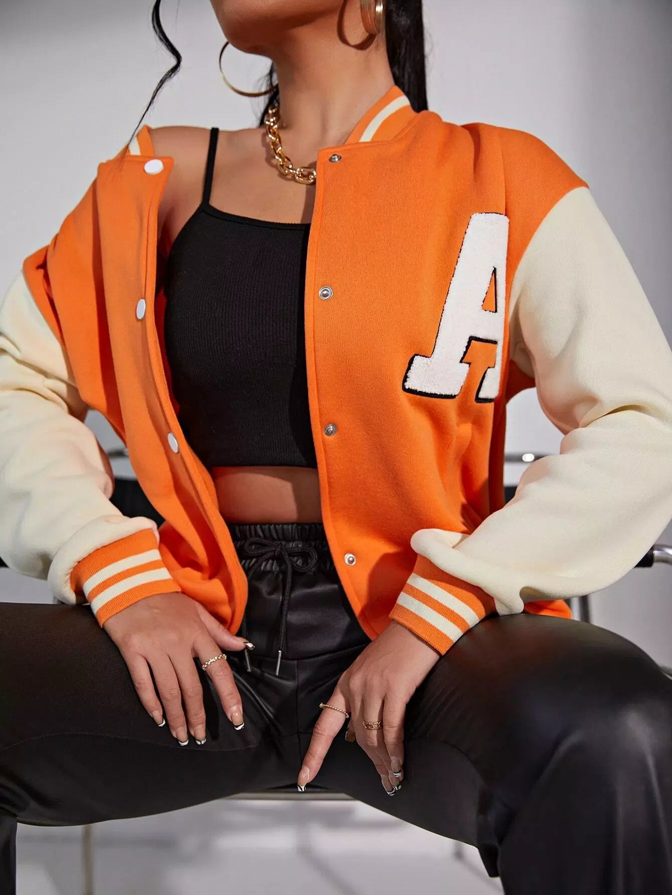 Letter Embroidery Drop Shoulder Colorblock Varsity Jacket