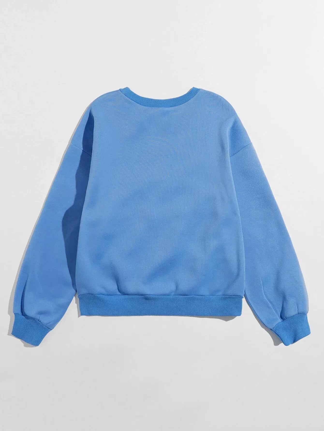 Women - Letter Embroidery Drop Shoulder Sweatshirt