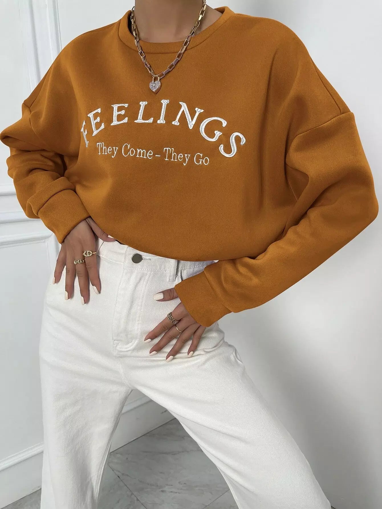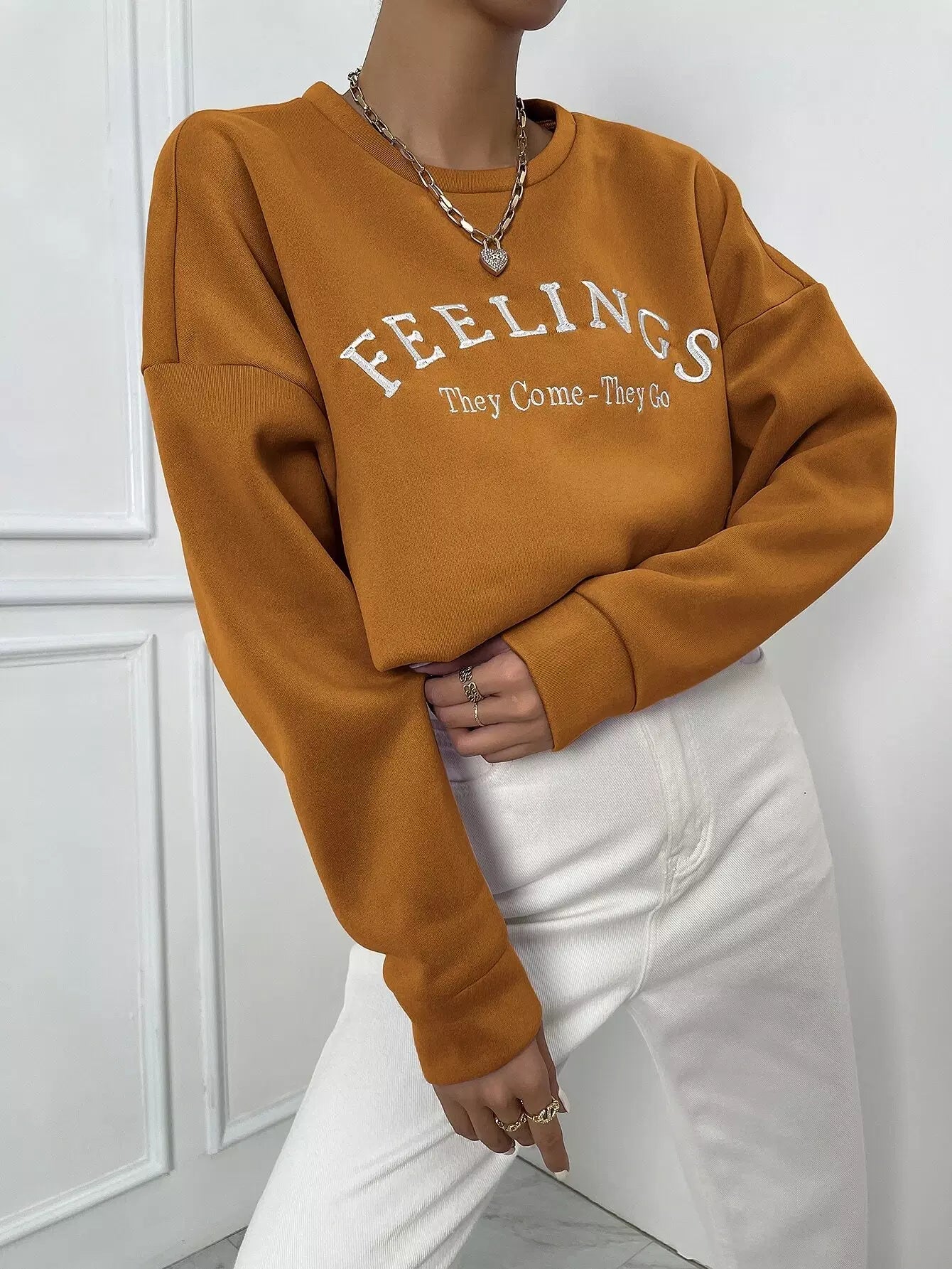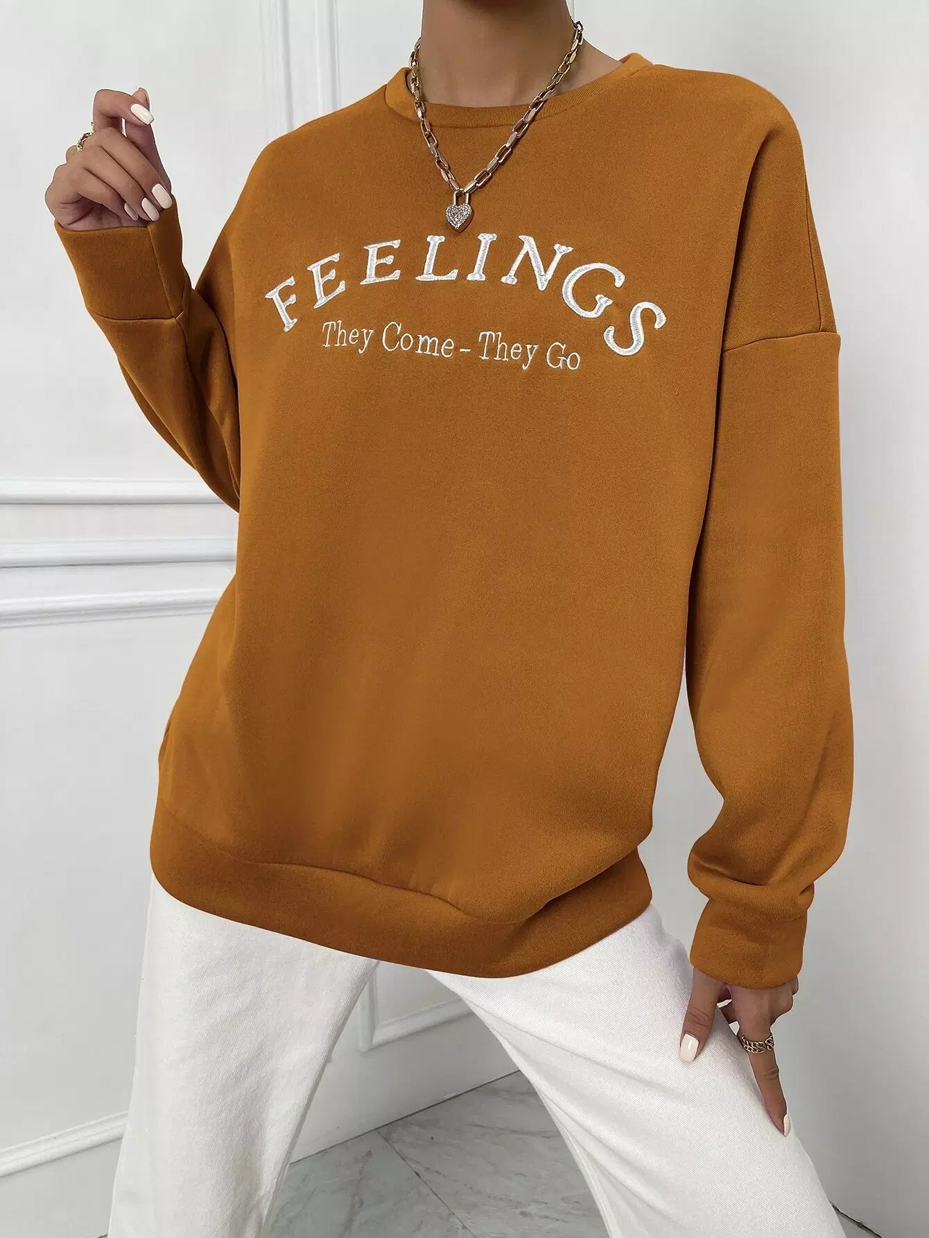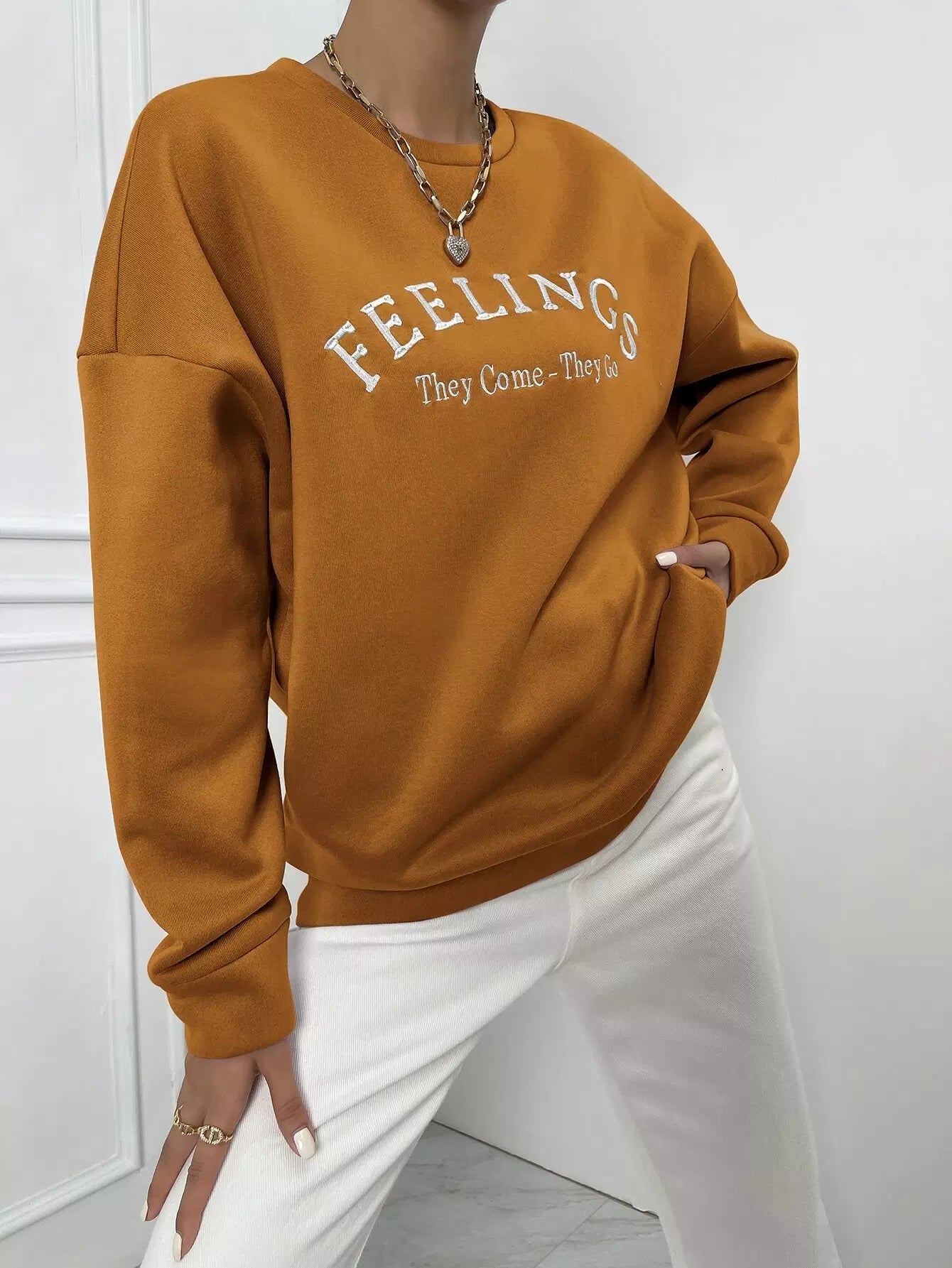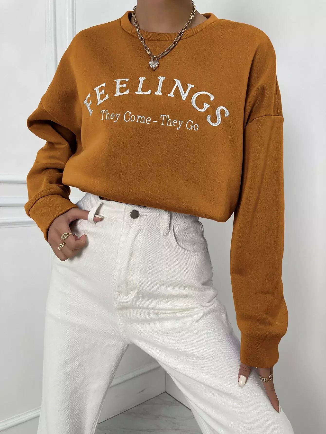 Women - Letter Embroidery Drop Shoulder Sweatshirt