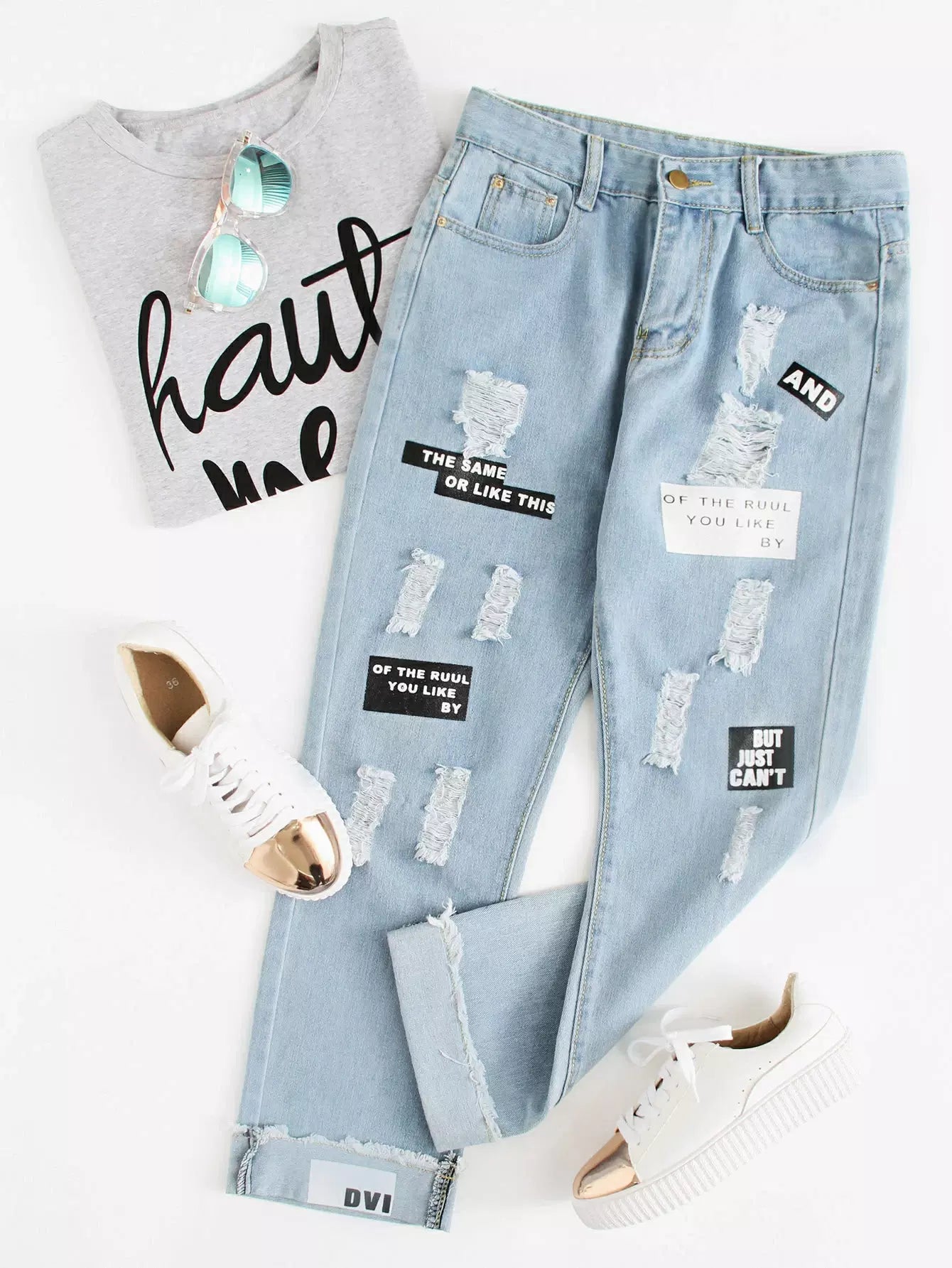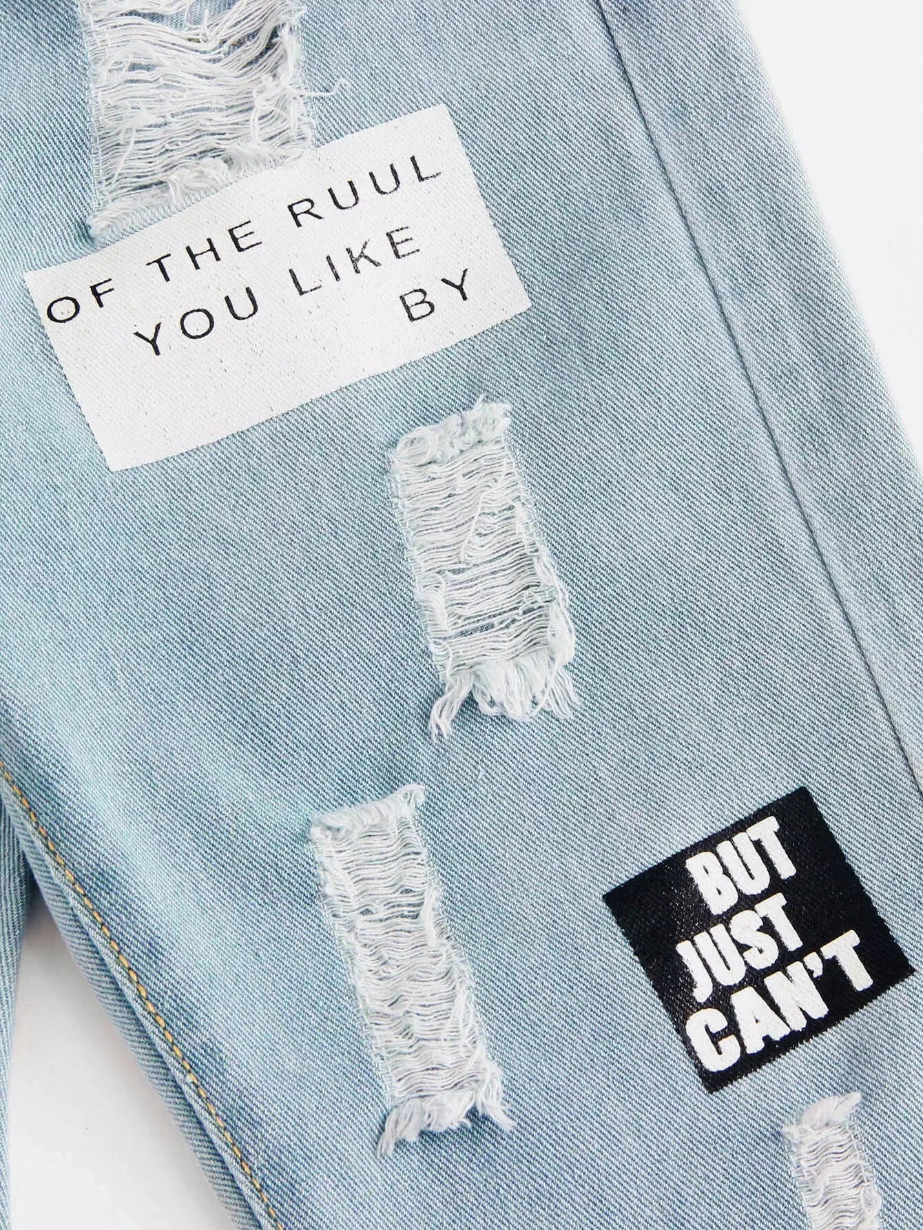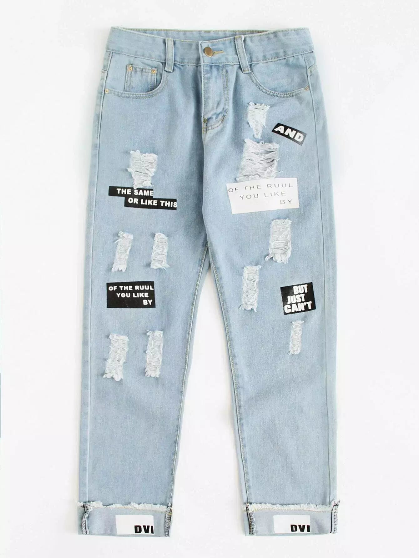 Letter Graphic Distressed Boyfriend Baggy Jeans