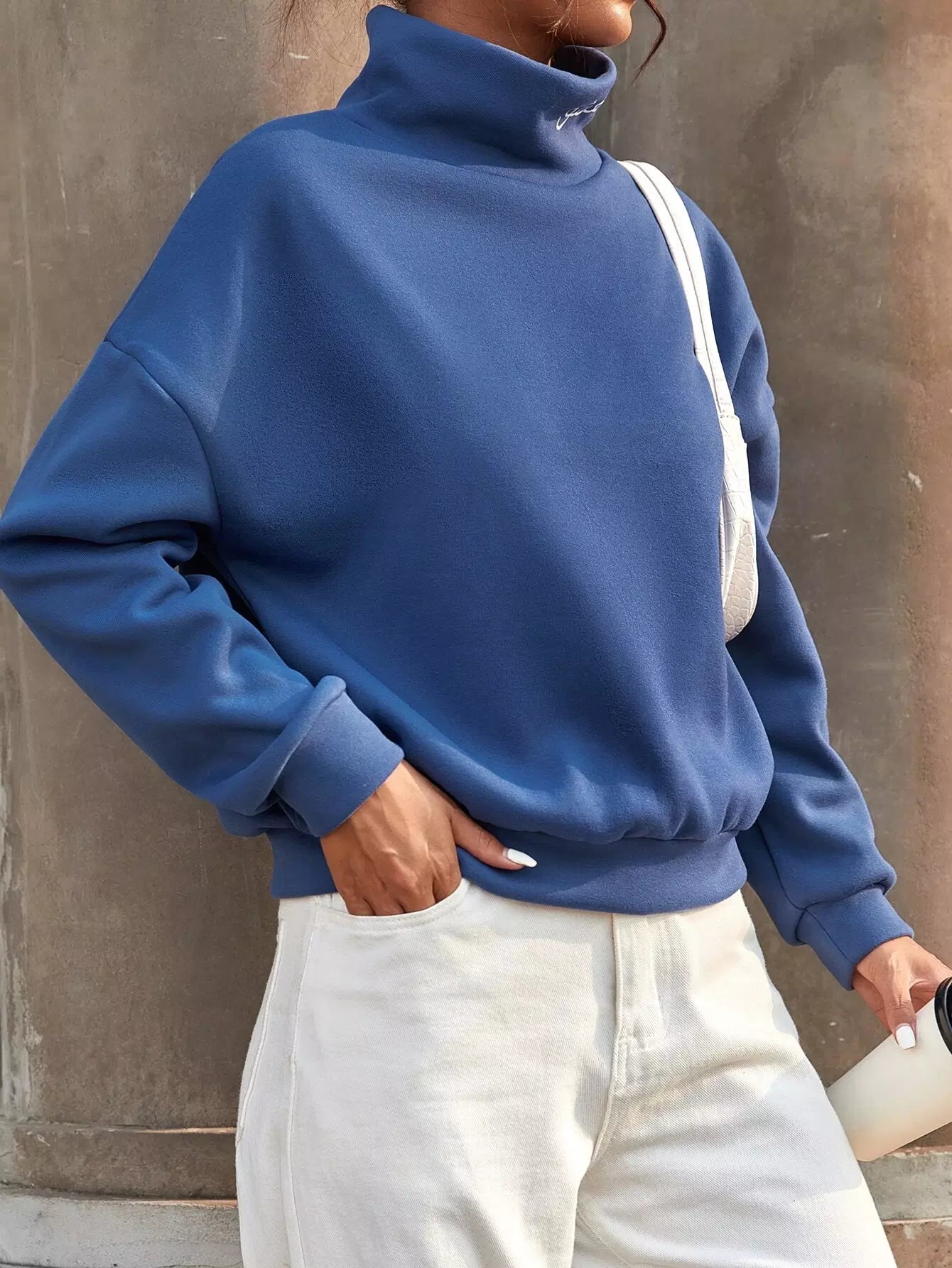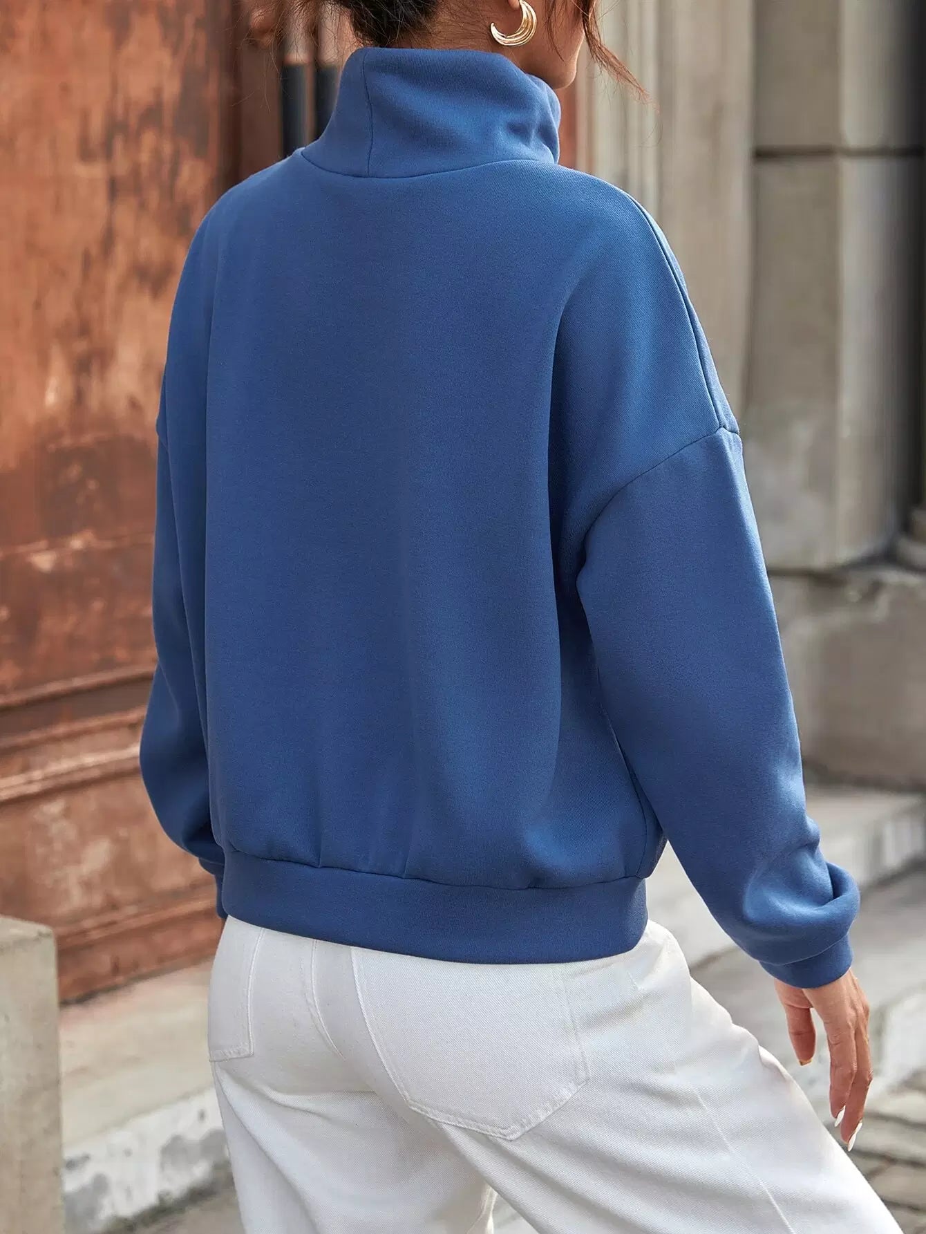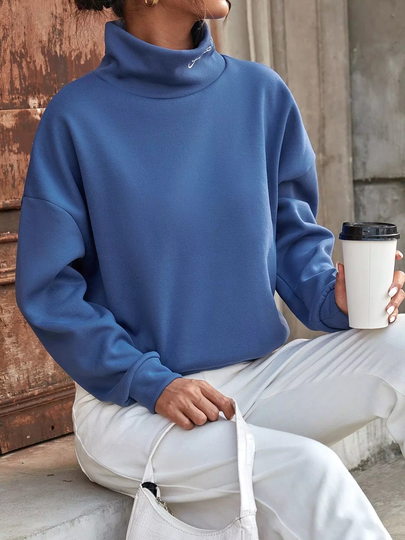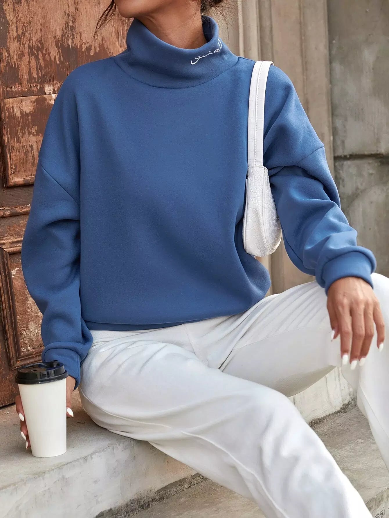Letter Graphic High Neck Drop Shoulder Sweatshirt