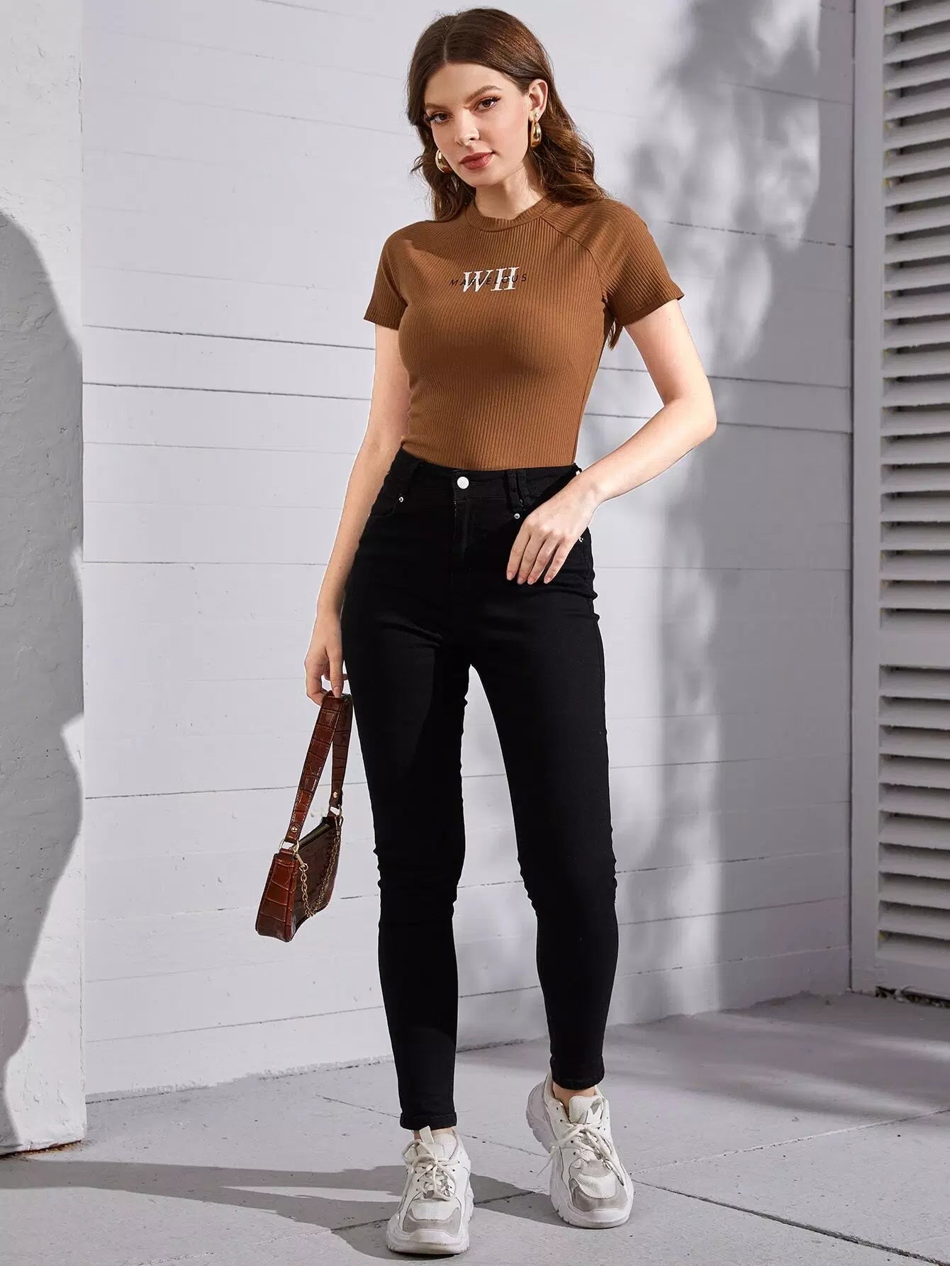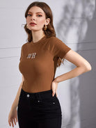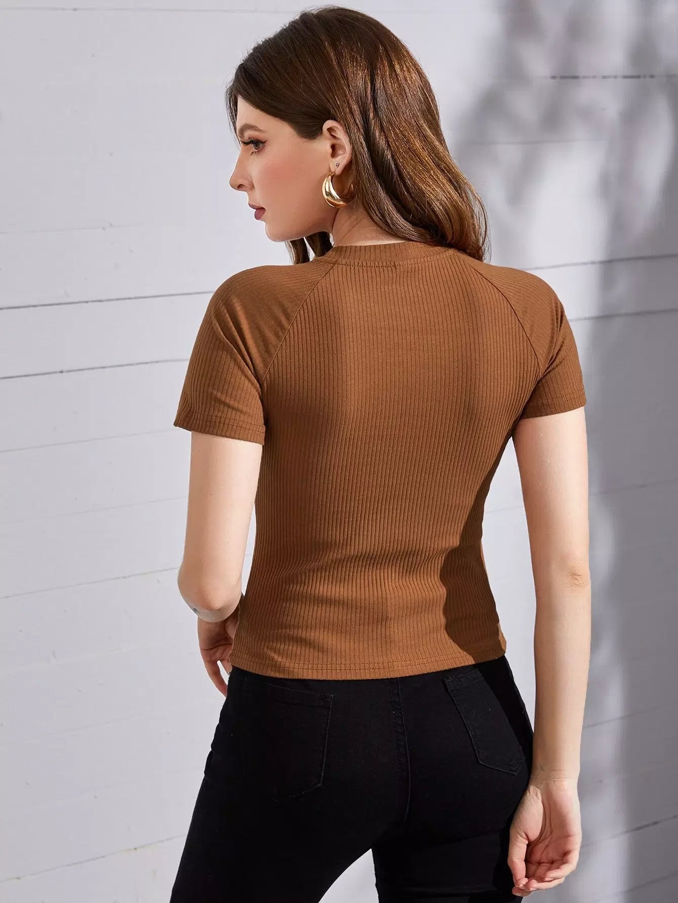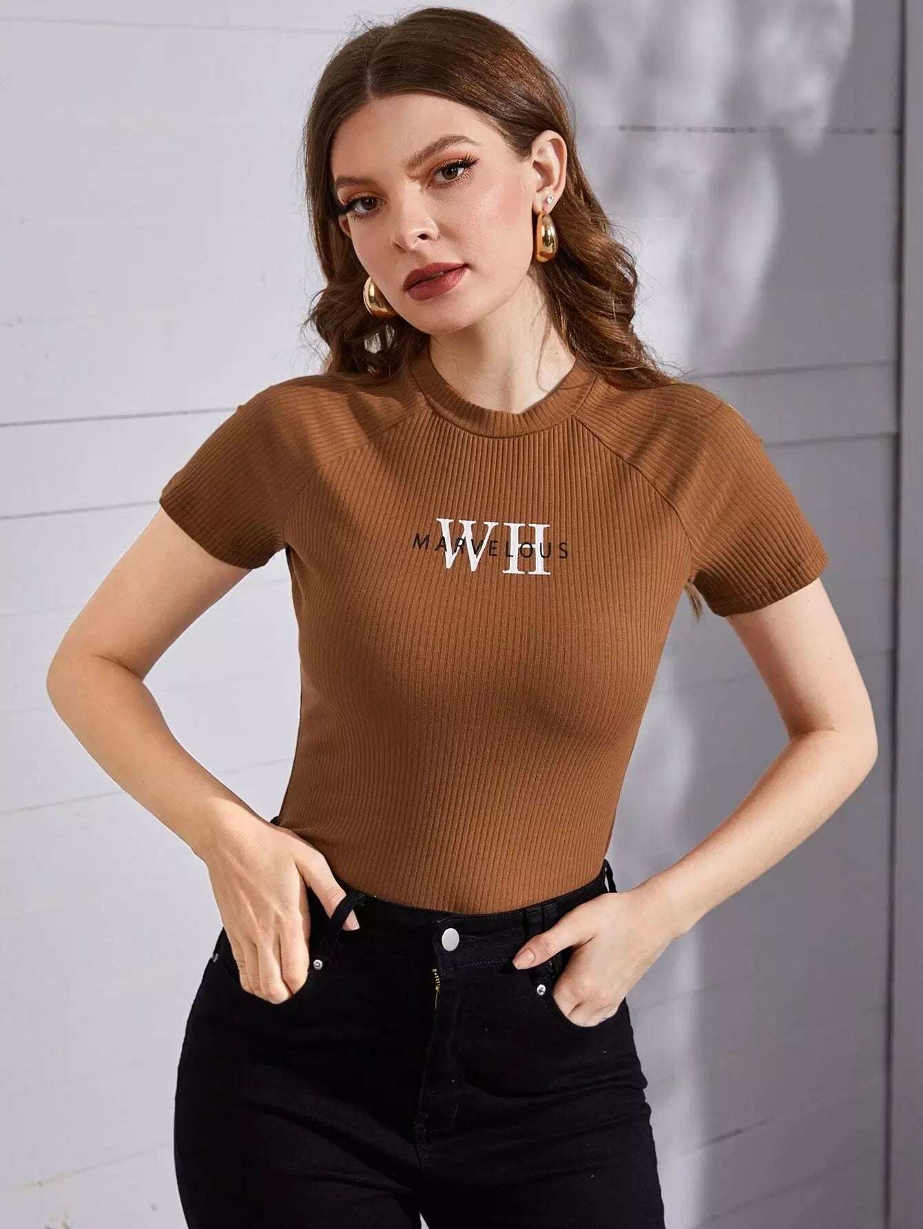 Letter Graphic Raglan Sleeve Ribbed Knit Tee